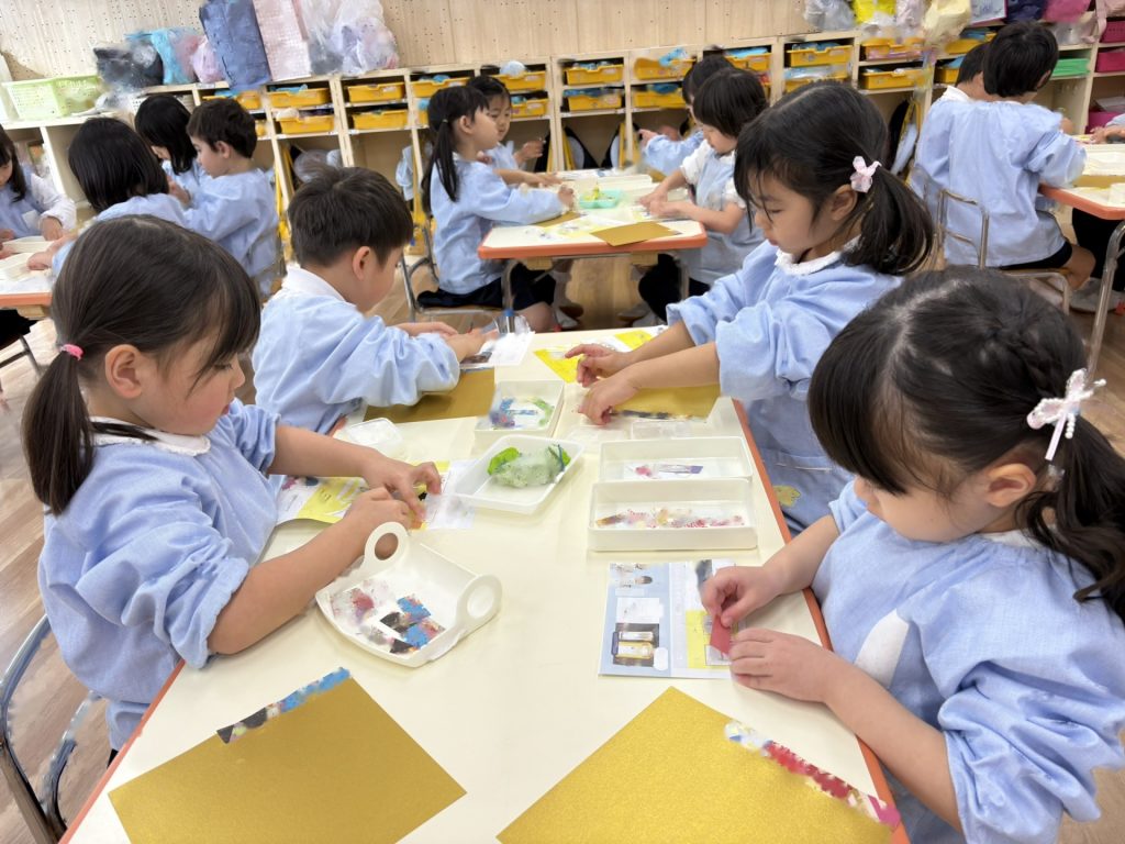プレゼントの中身は何かな??ゆり組さんは「すごろくと凧」、りんご組さんは「お寿司カードと絵合わせ」のプレゼントでした!子ども達は興味津々で大喜び☆