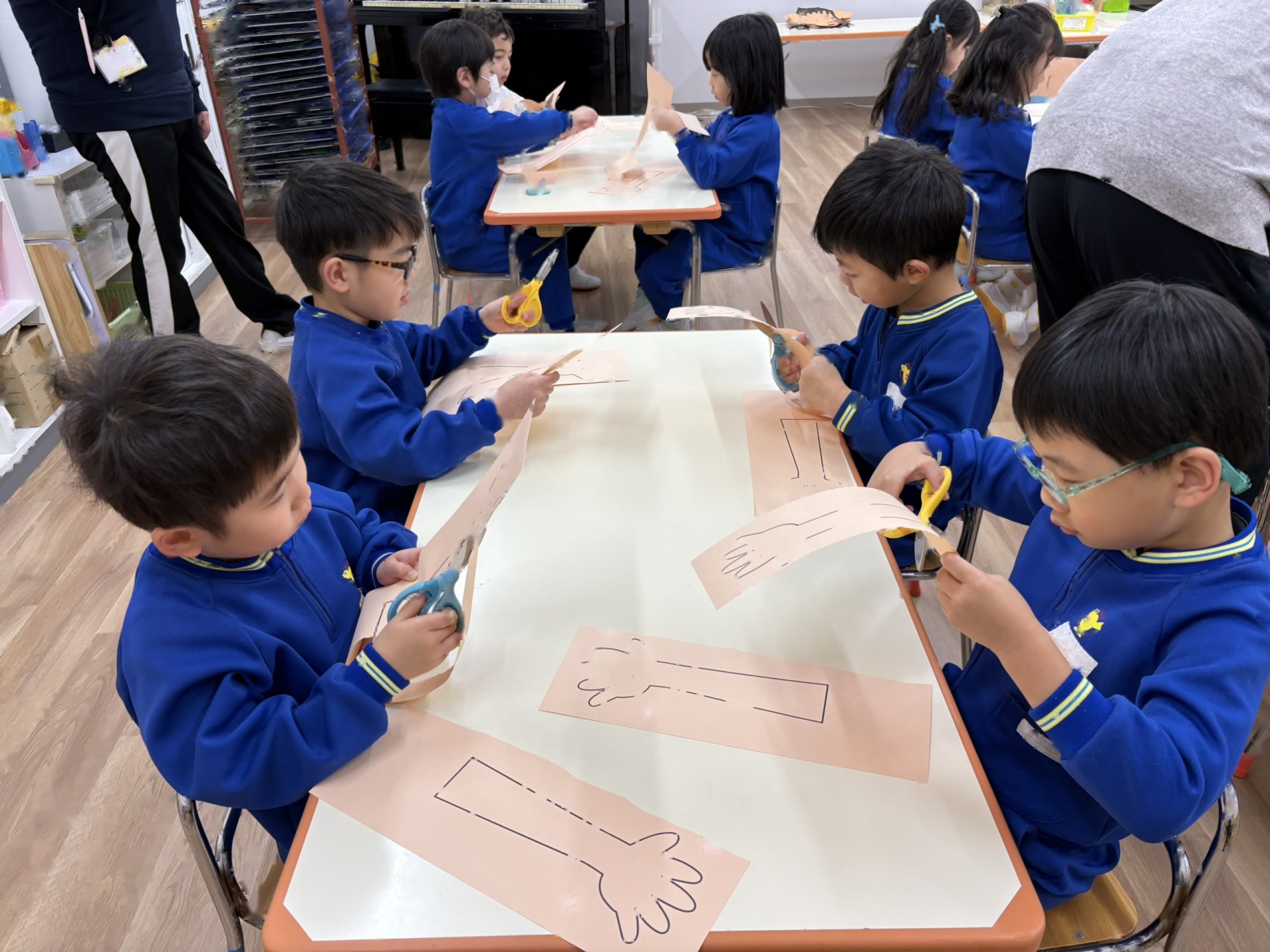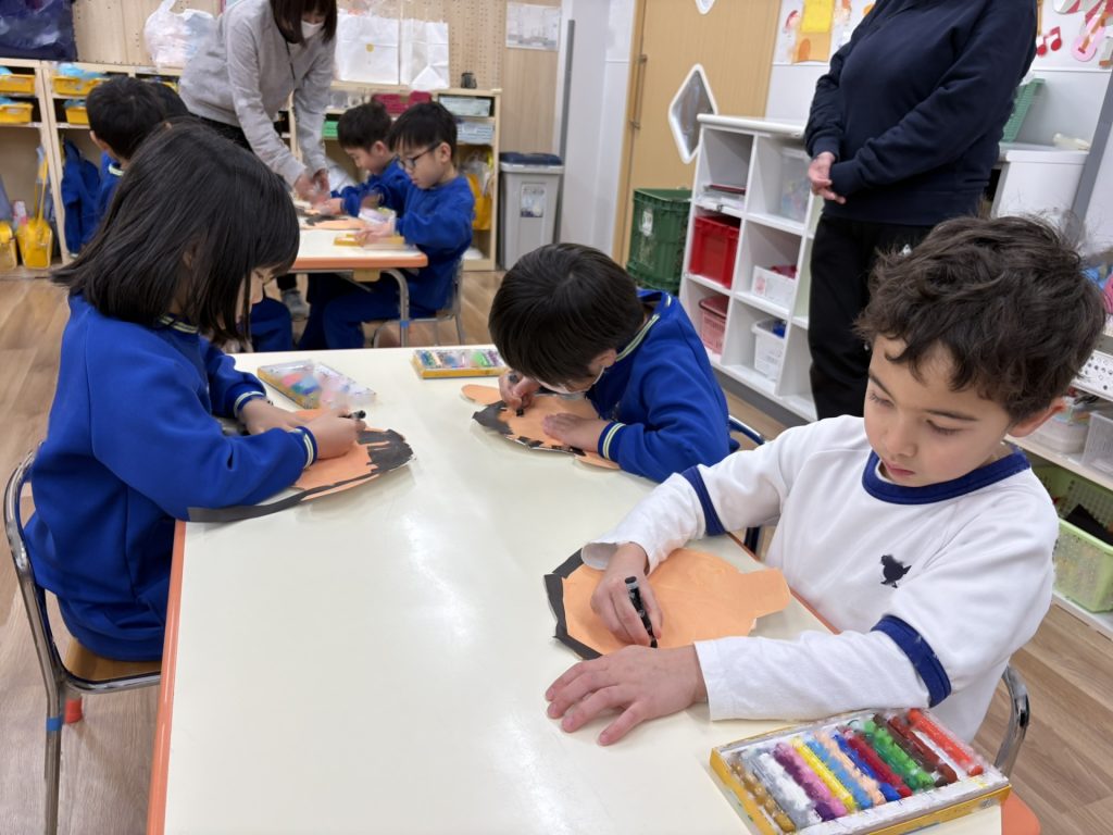 子ども達はサンタさんの登場にびっくりしていましたが、目はキラキラと輝いていました☆サンタさんが来てくれたので、質問タイム!!それぞれ考えていた質問をして答えてもらい大喜びな子ども達でした!