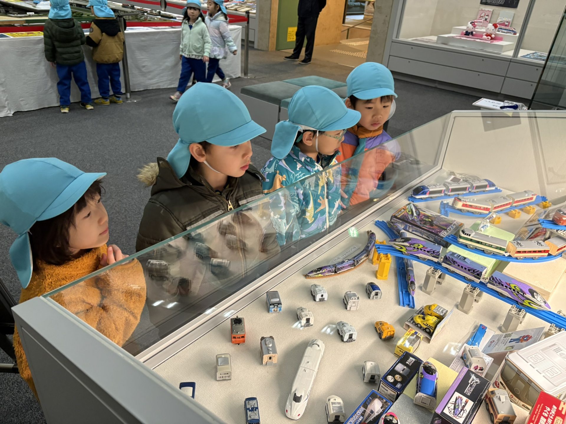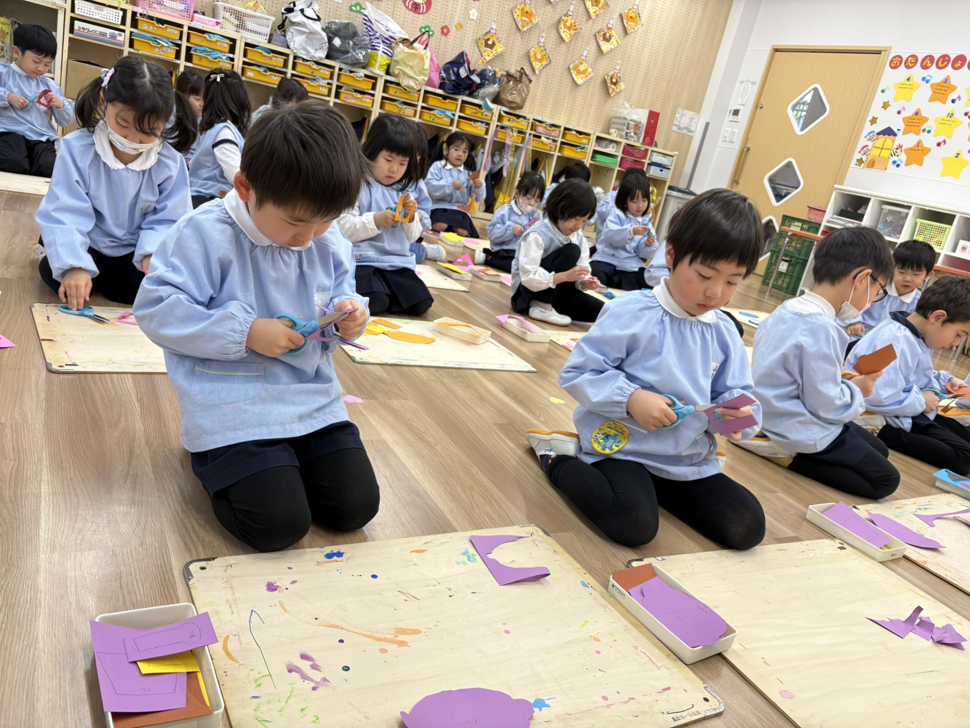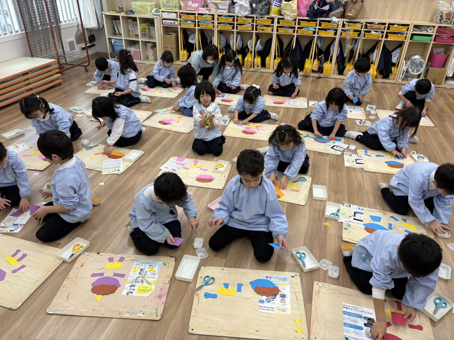 作品鑑賞をしました。自分で作った作品を紹介し合いながら、他の学年の作品もみんなで見学しました♪「上手だね~」「かわいいね~」と、認め合う姿もみられましたよ~★