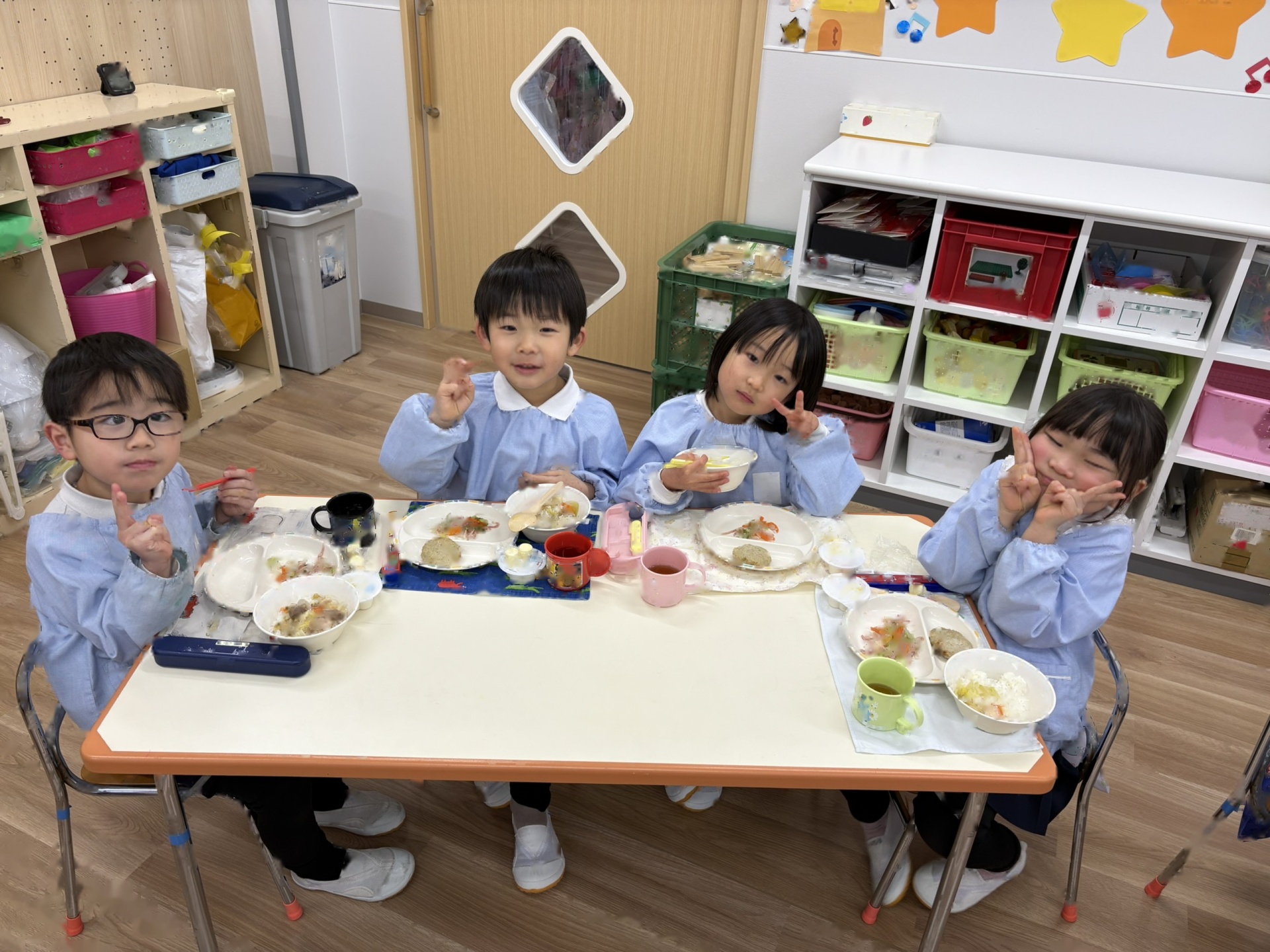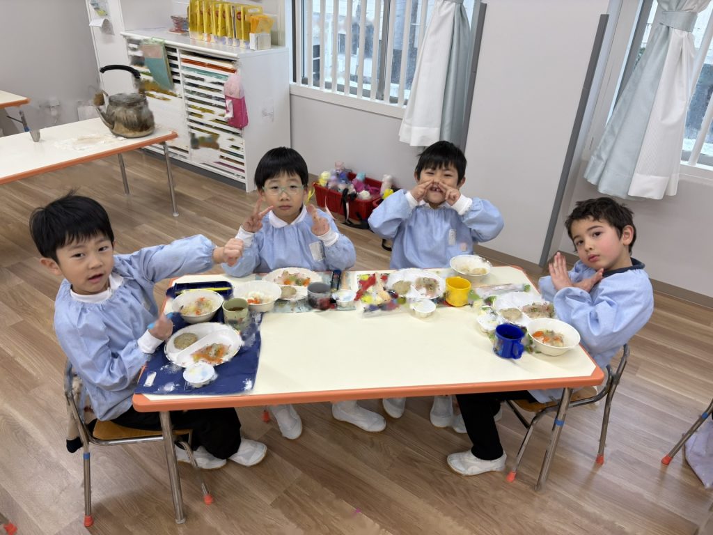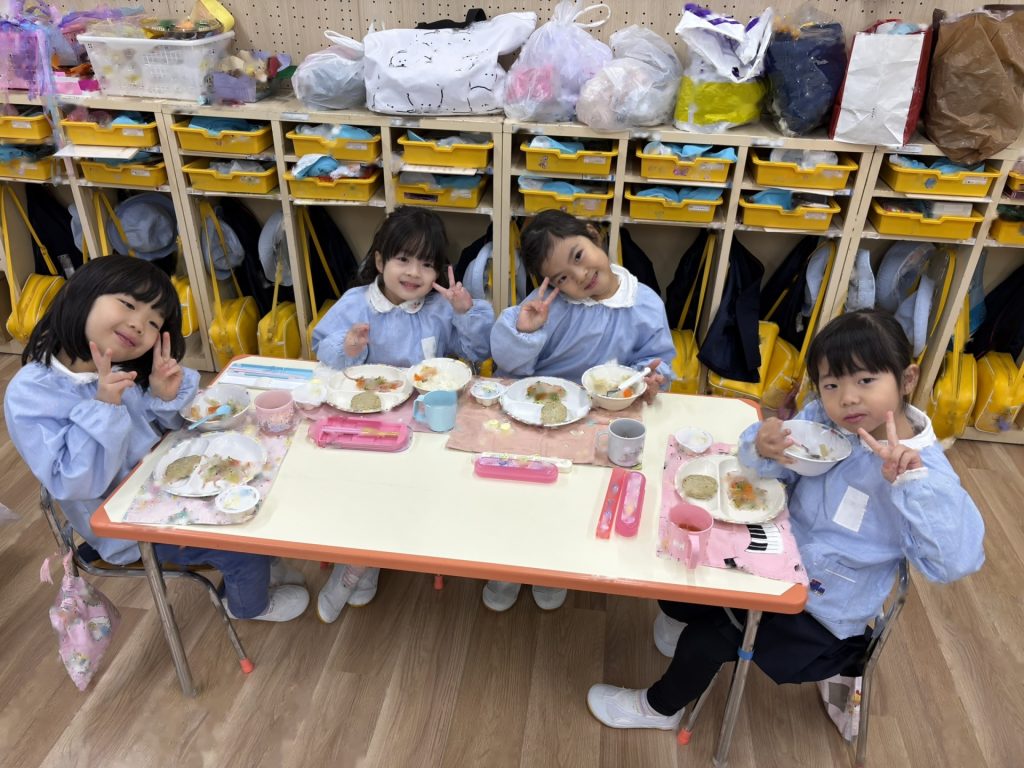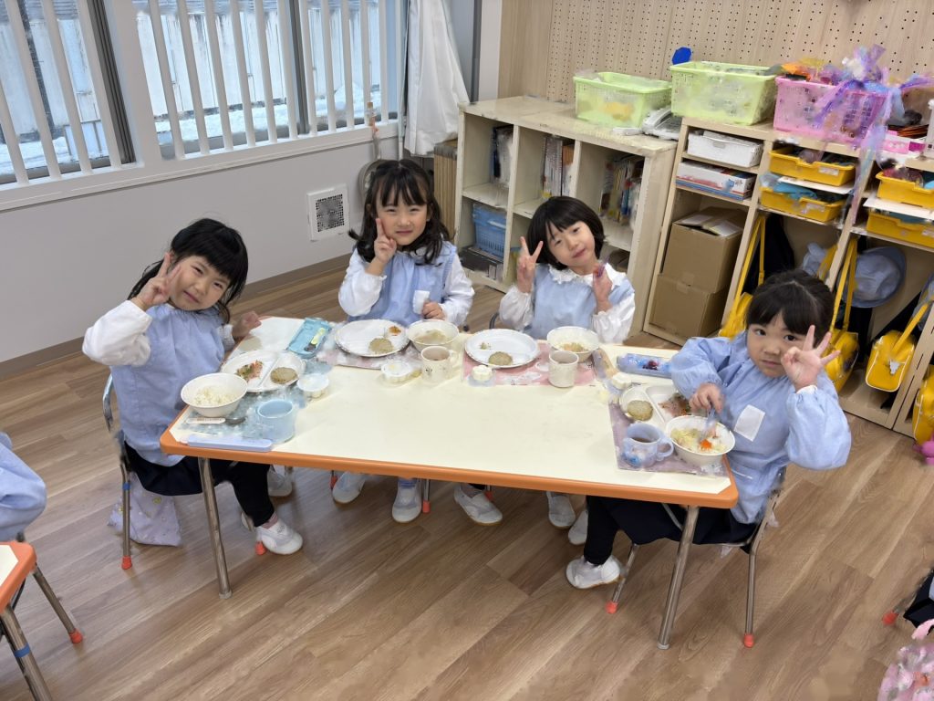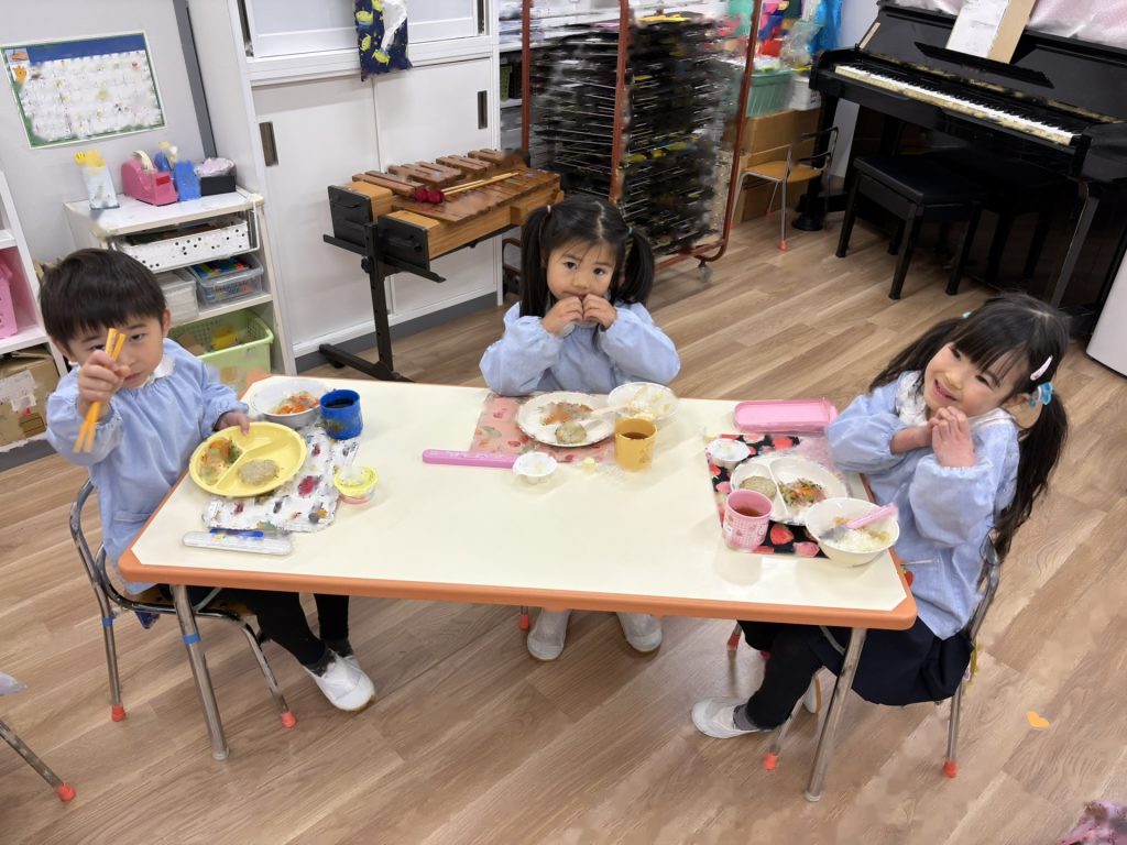 みんなで給食を食べ、楽しい時間を過ごしました♪