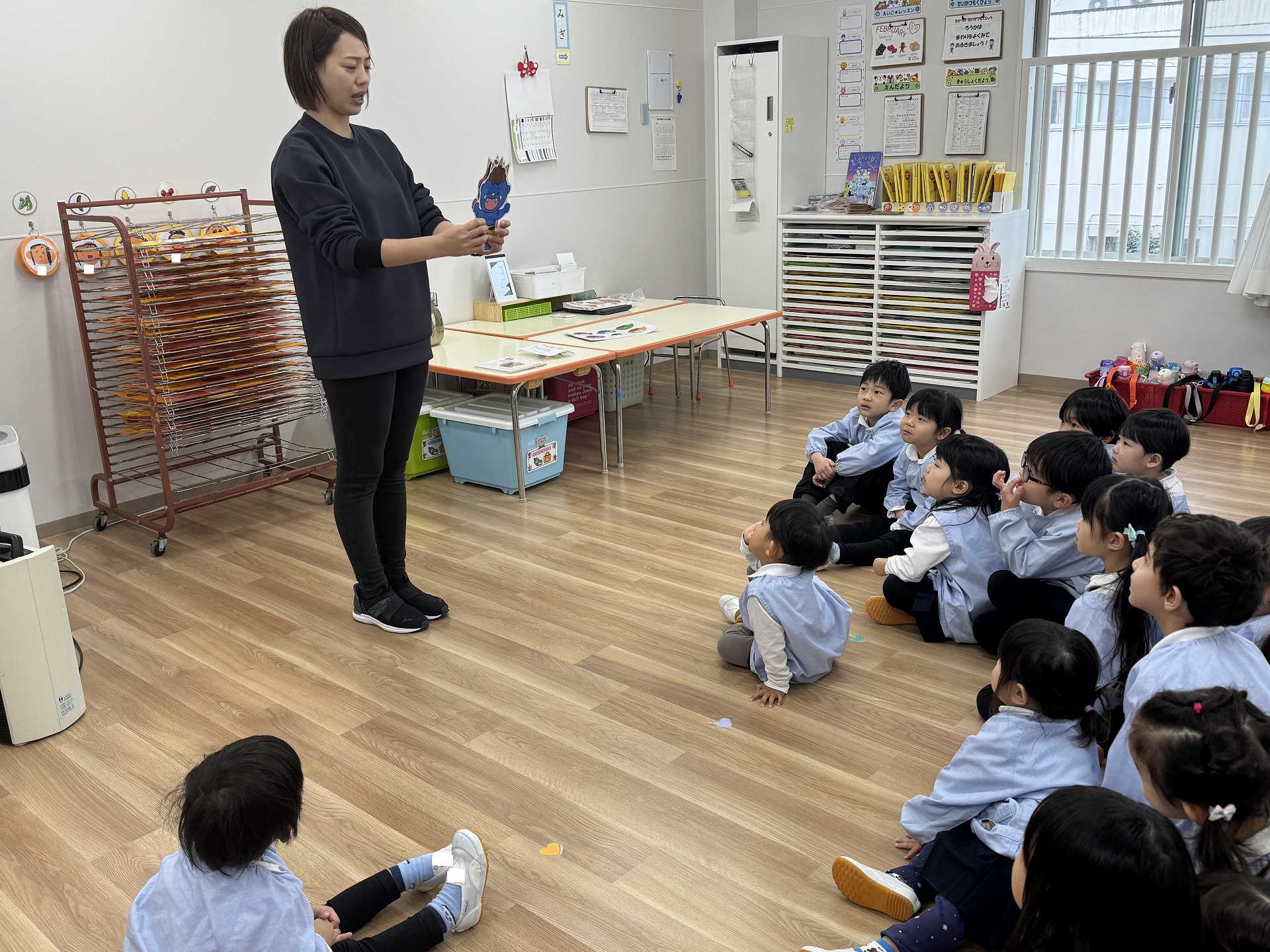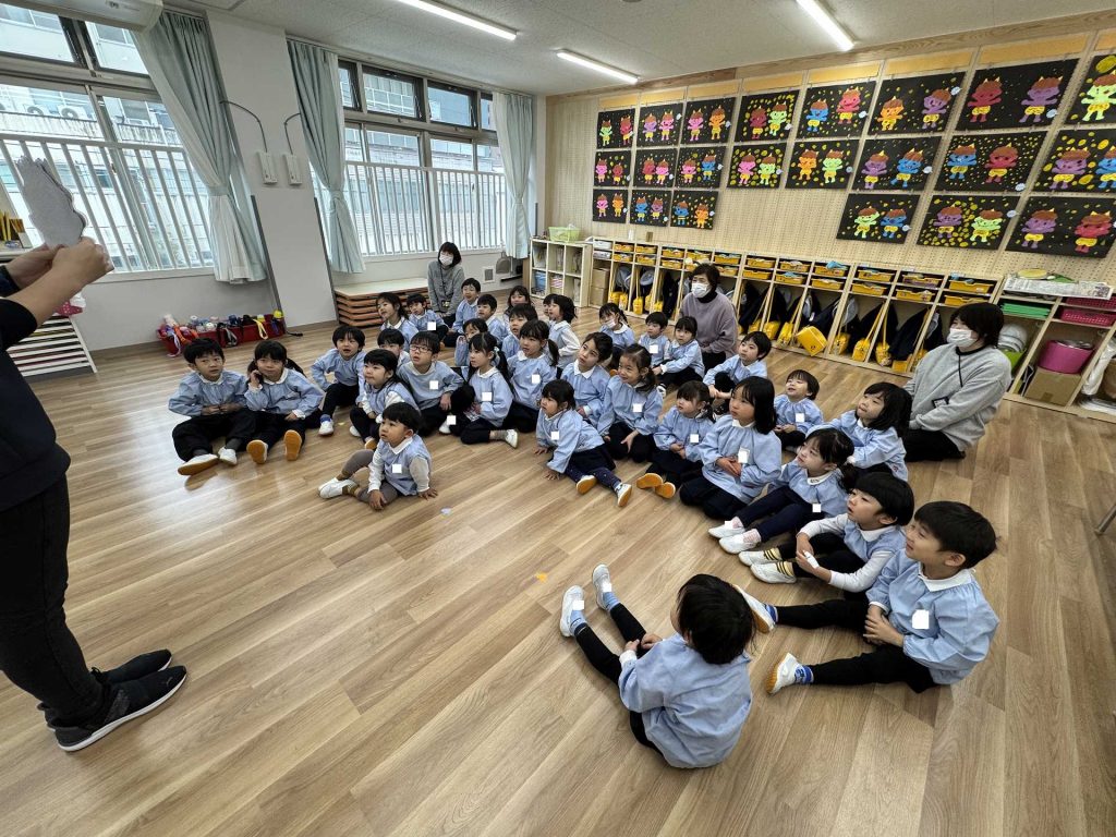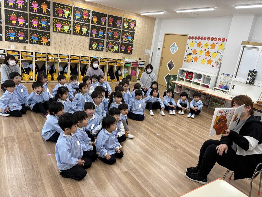 歌を歌ったあとは・・・節分の絵本を見ました!