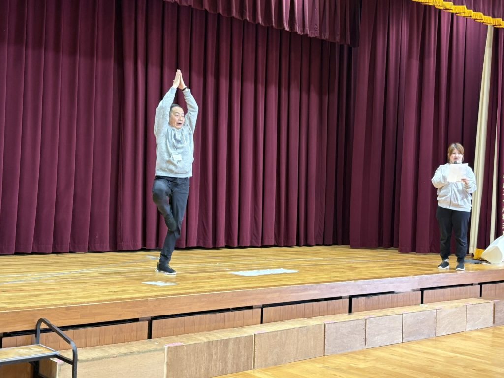 今月は、バランスゲームに挑戦!ということで、片足を床に付けずにいろんなポーズに連続で取り組みました。バランスを崩さないようにかっこいいポーズを決めてね♪