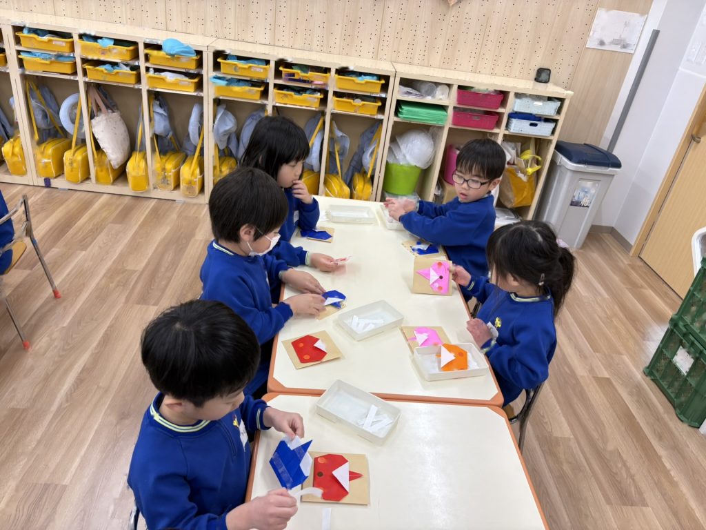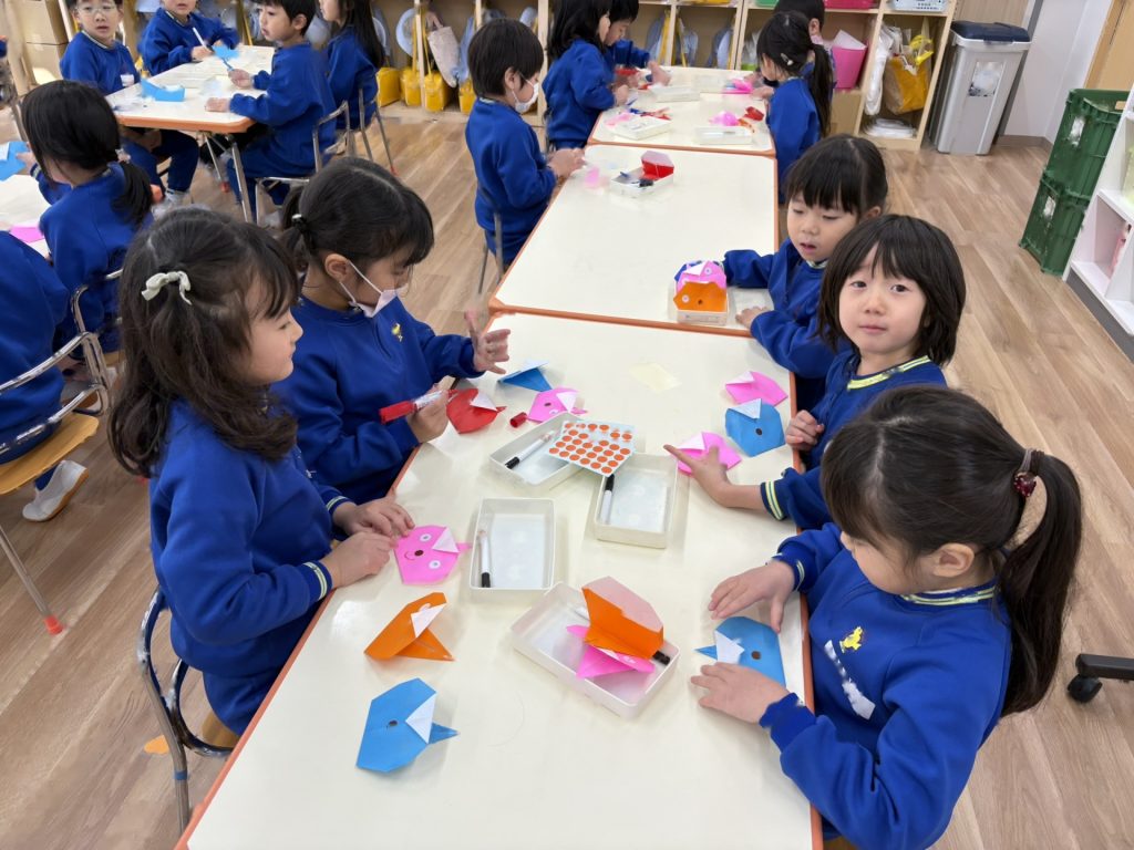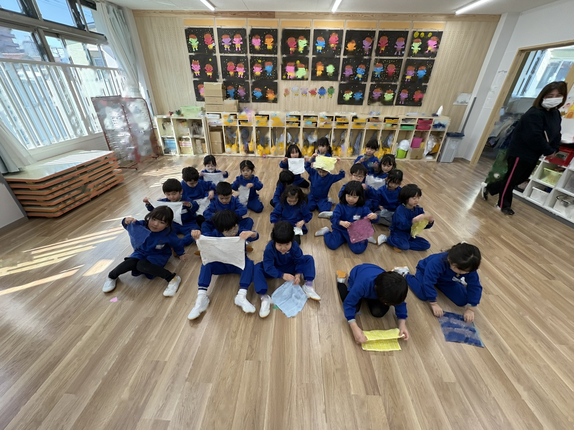 明日の節分にむけマスづくりをしました。2歳児のお友達の分も作ってあげよう!と、張り切っていた子ども達でした!!