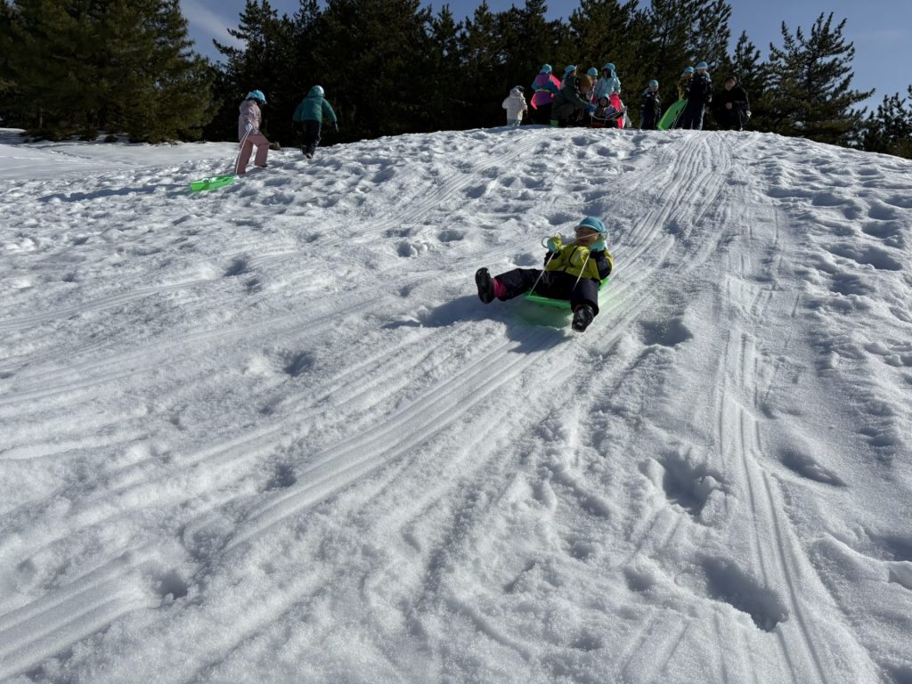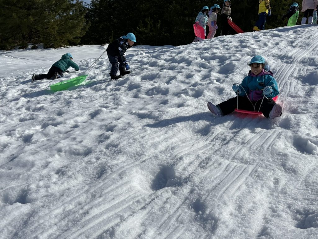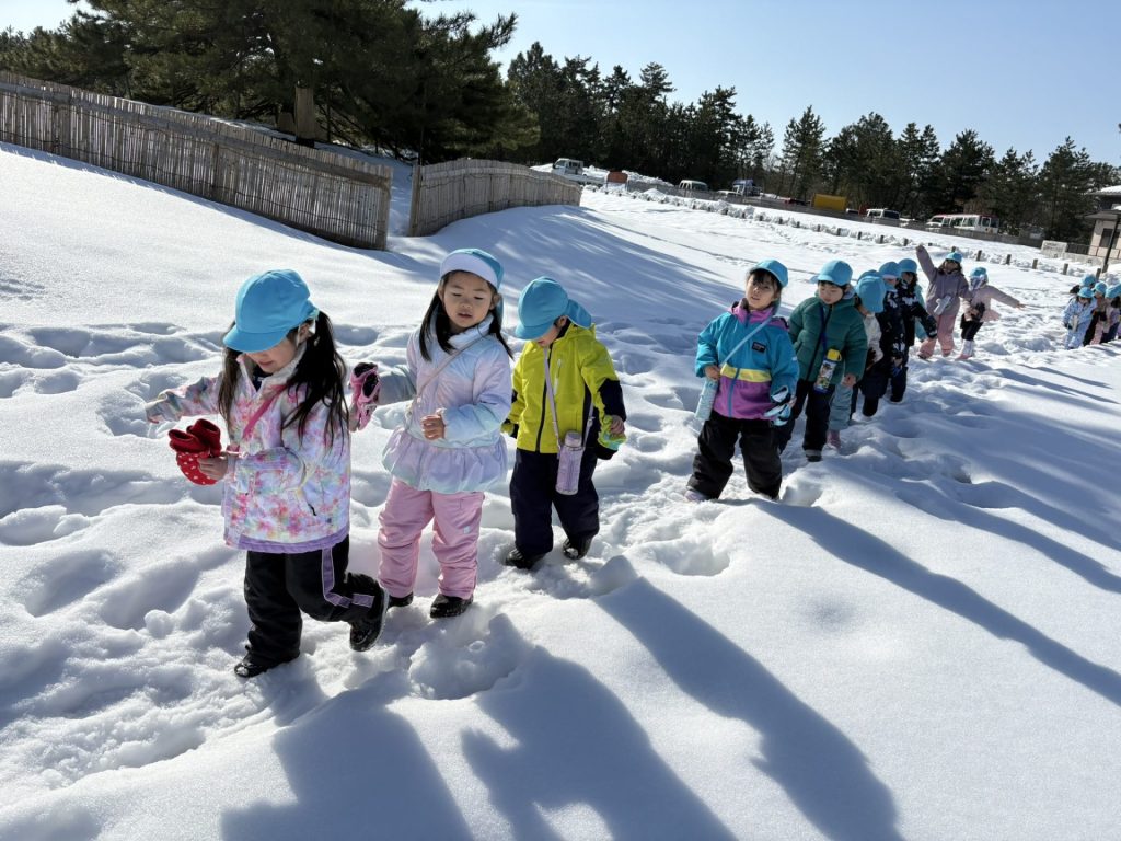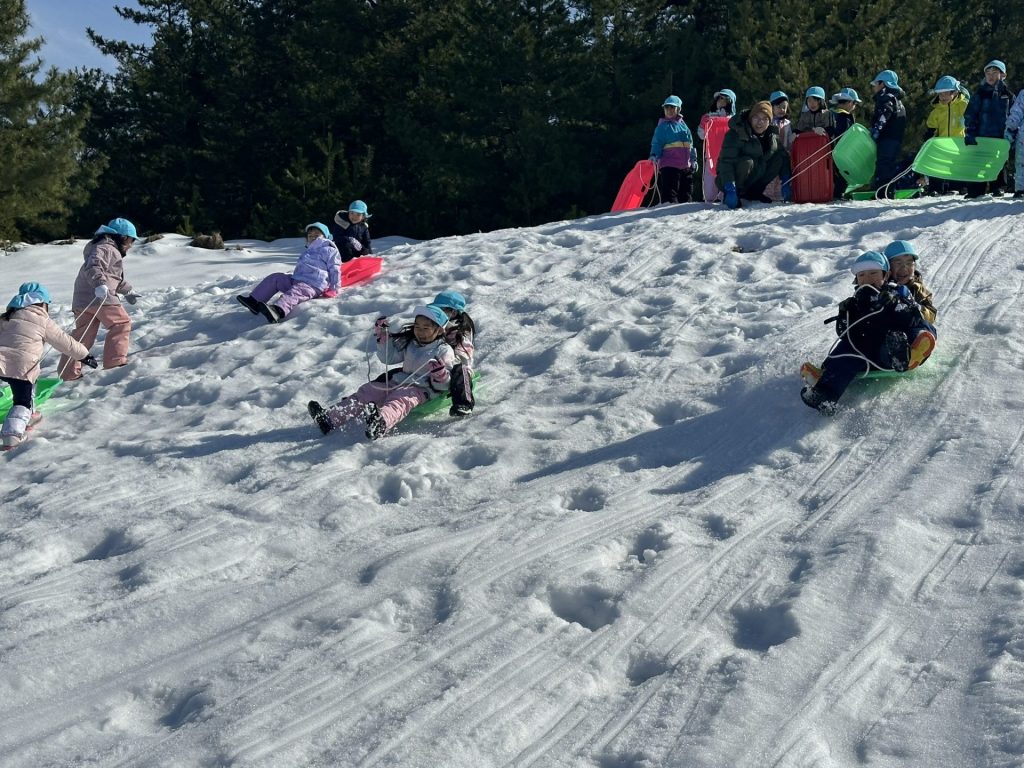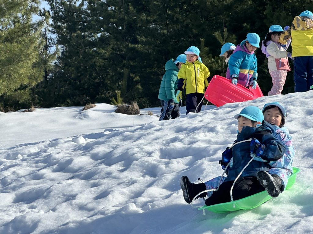 雪の上を歩いたり、ソリ遊びをしたりと大はしゃぎで楽しい時間を過ごしてきました!