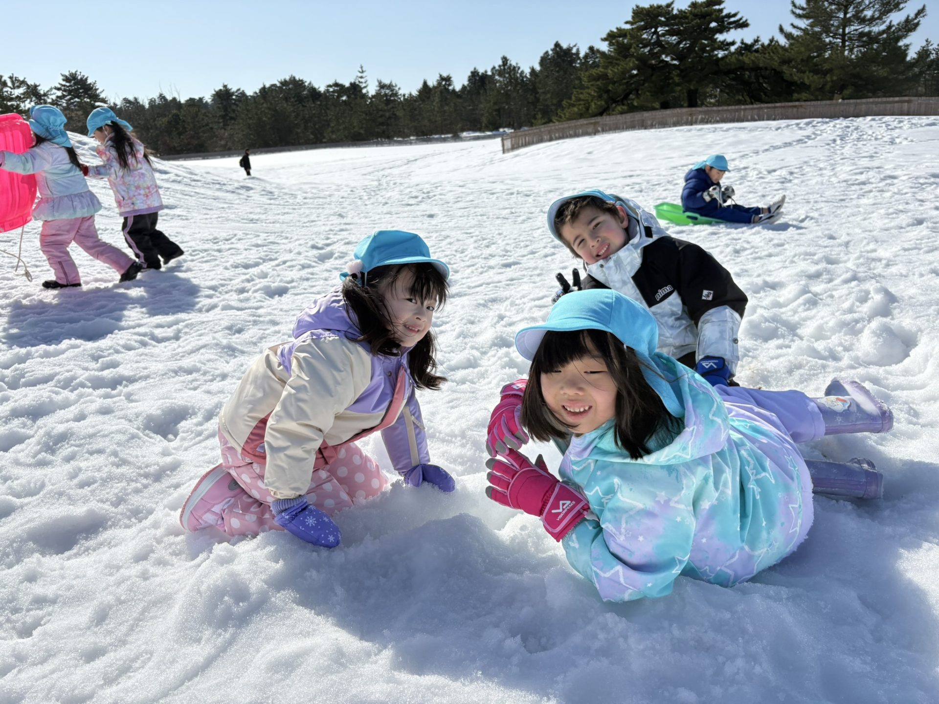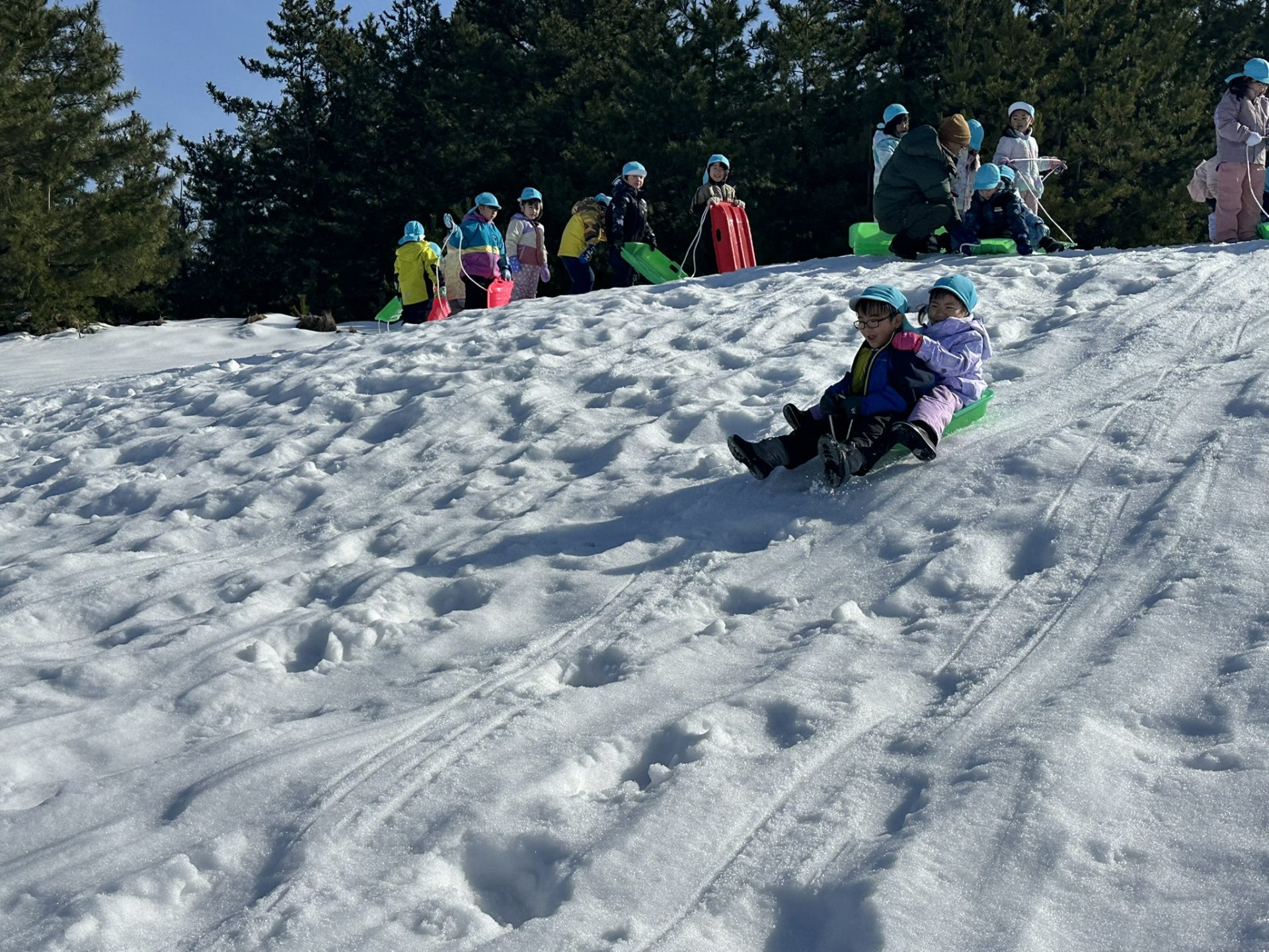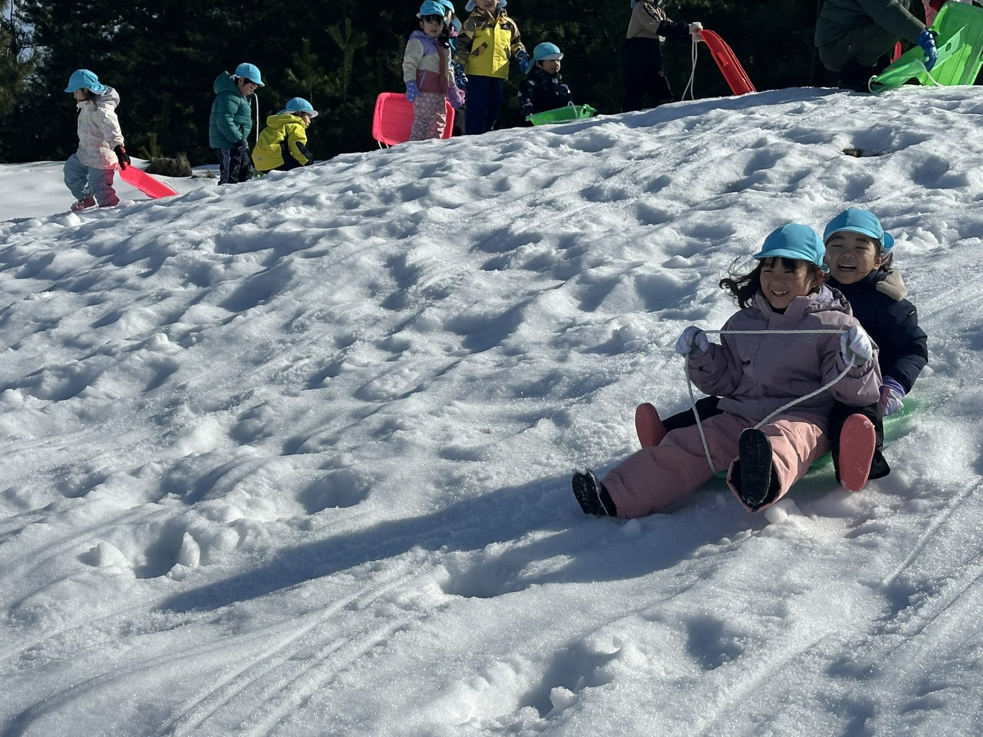 雪の上を歩いたり、ソリ遊びをしたりと大はしゃぎで楽しい時間を過ごしてきました!