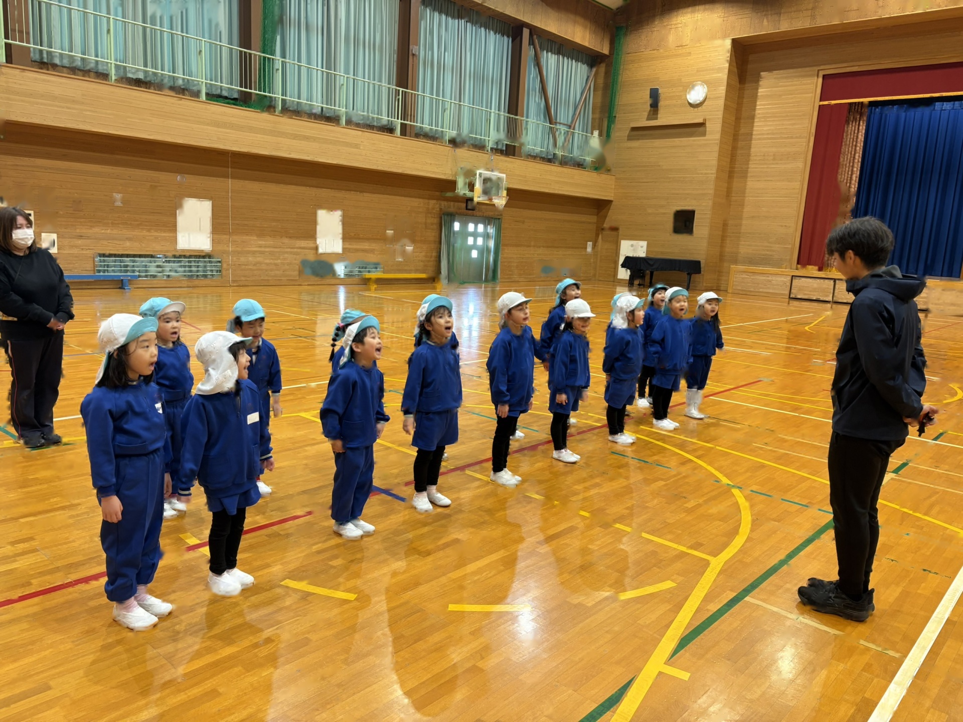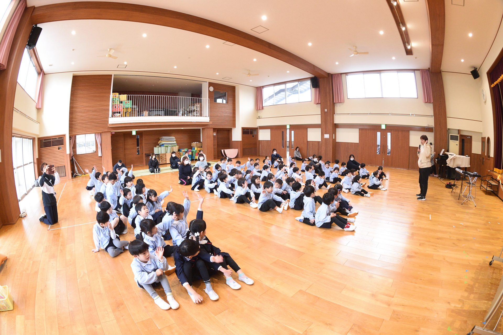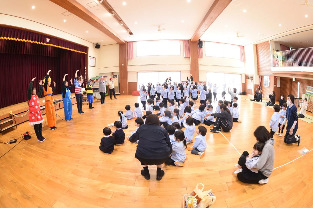 招待状をもらって大喜びで、「いつ?いつ始まる?」とそわそわしていた子ども達。時間になるとワクワクしながらホールへ!