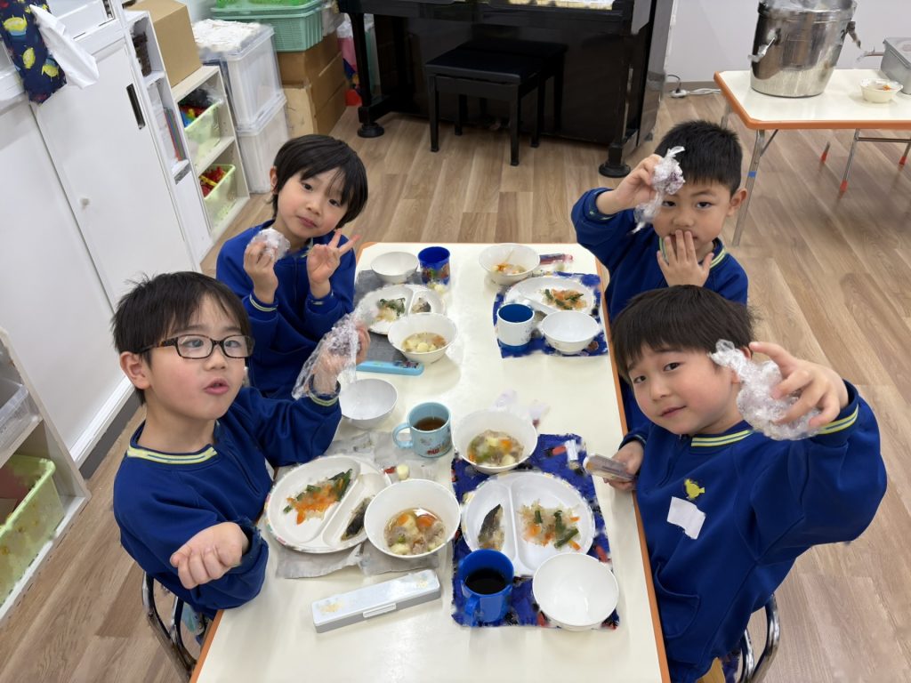 年長組さんのステキな姿に、刺激を受けた年中・年少・2歳児の子ども達でした♪