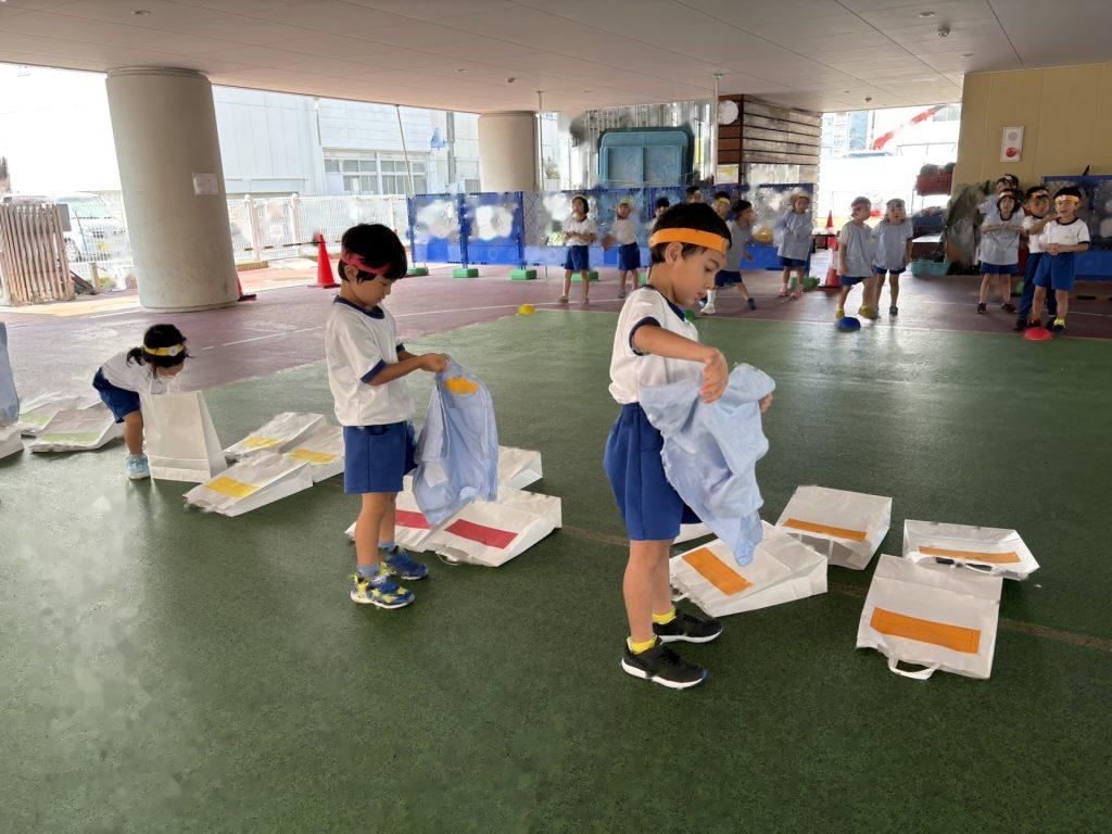 今日は親子競技「みんなで大変身!」を子ども達と一緒にやってみました。