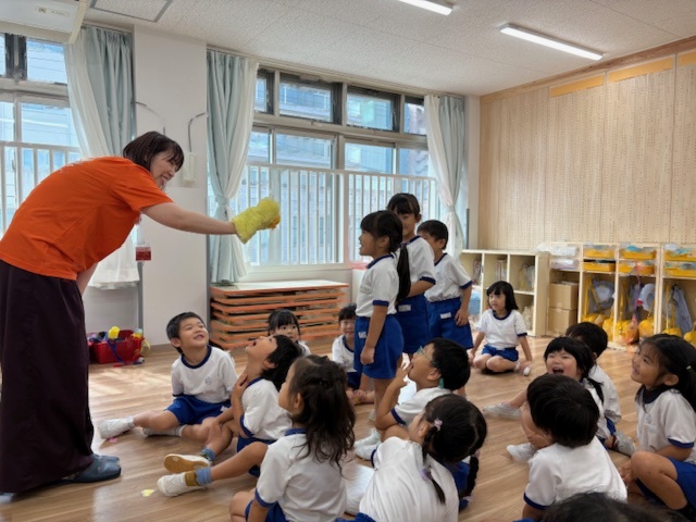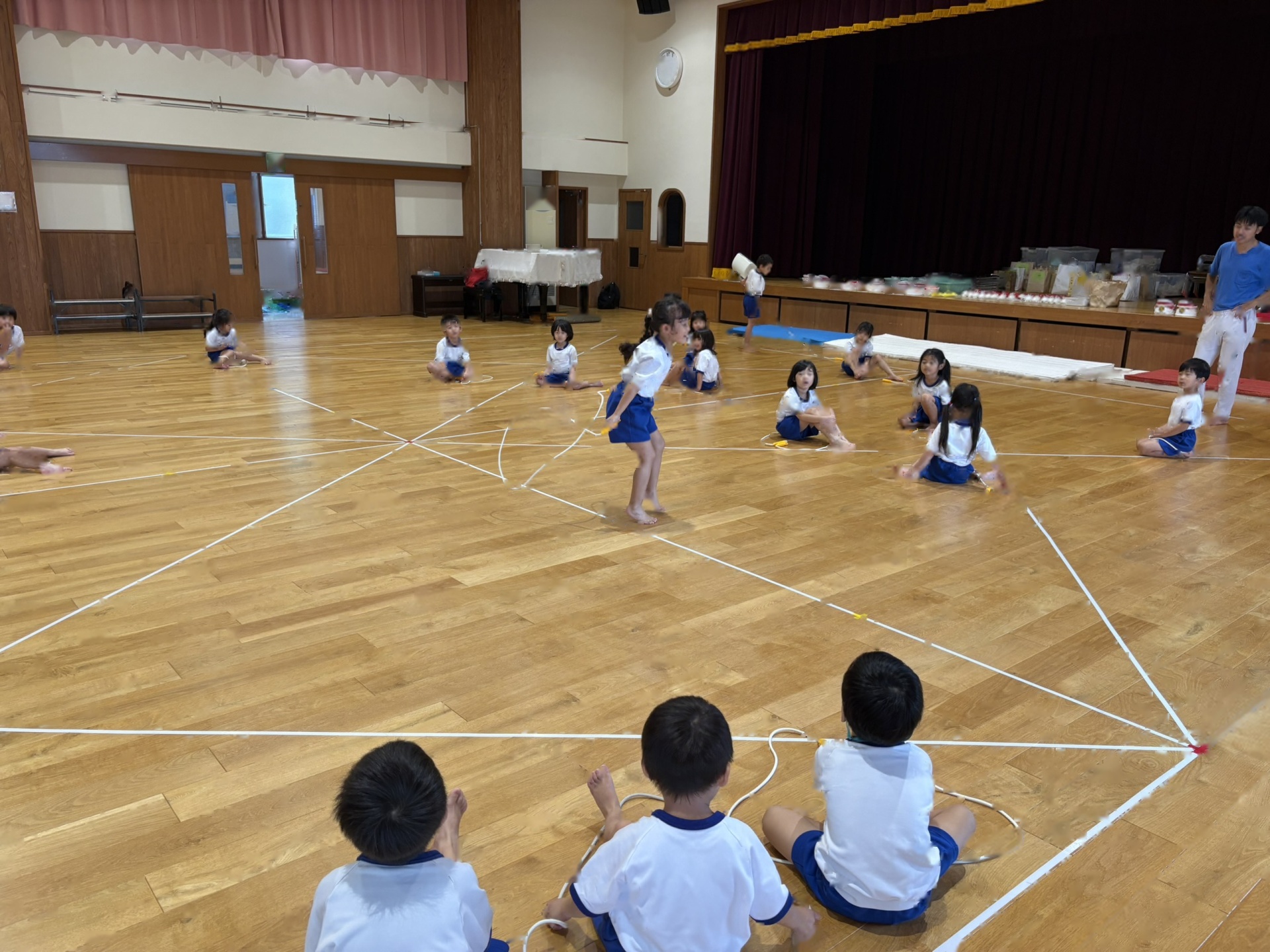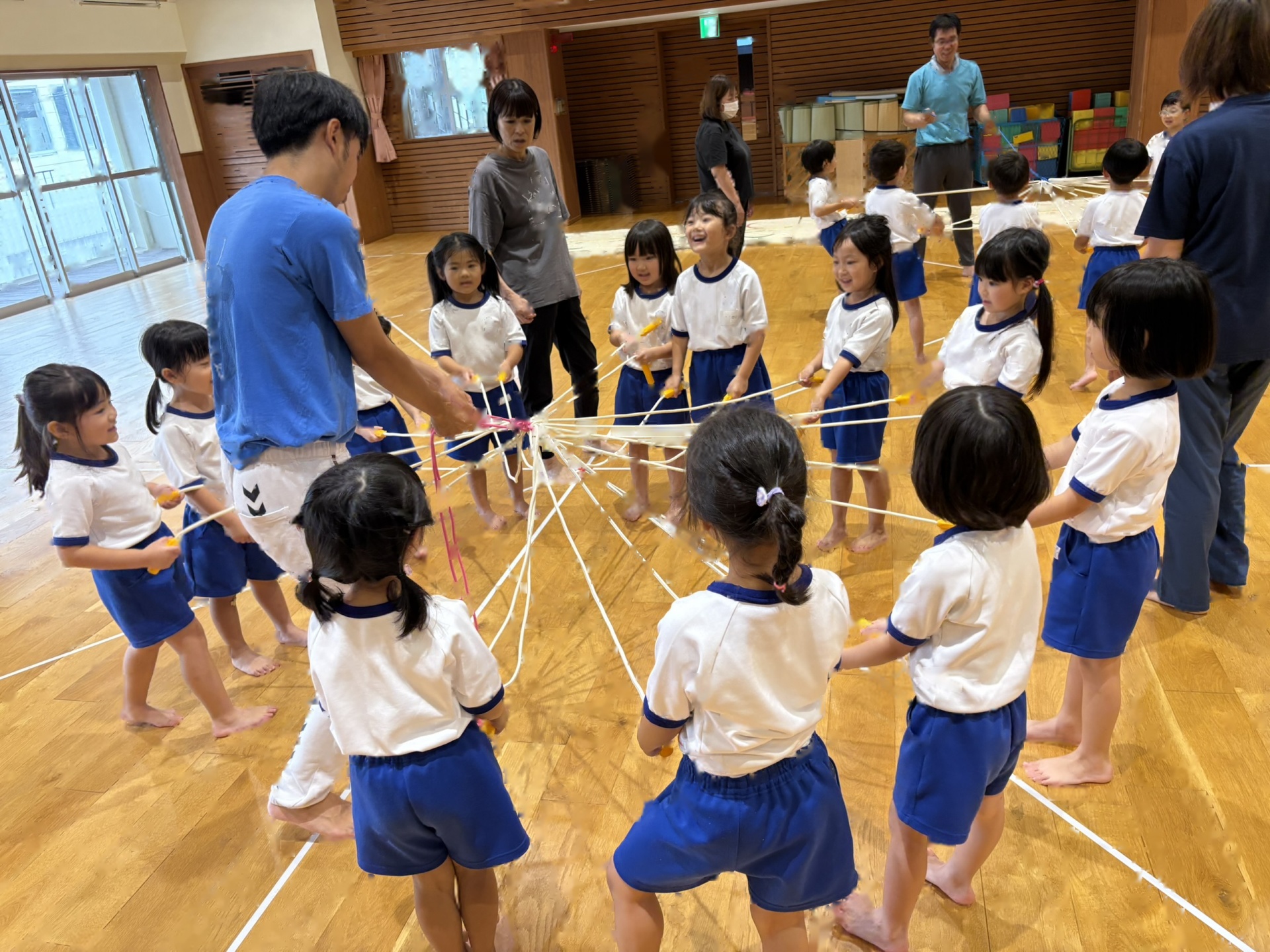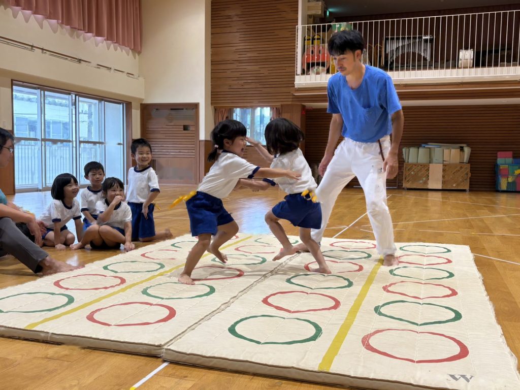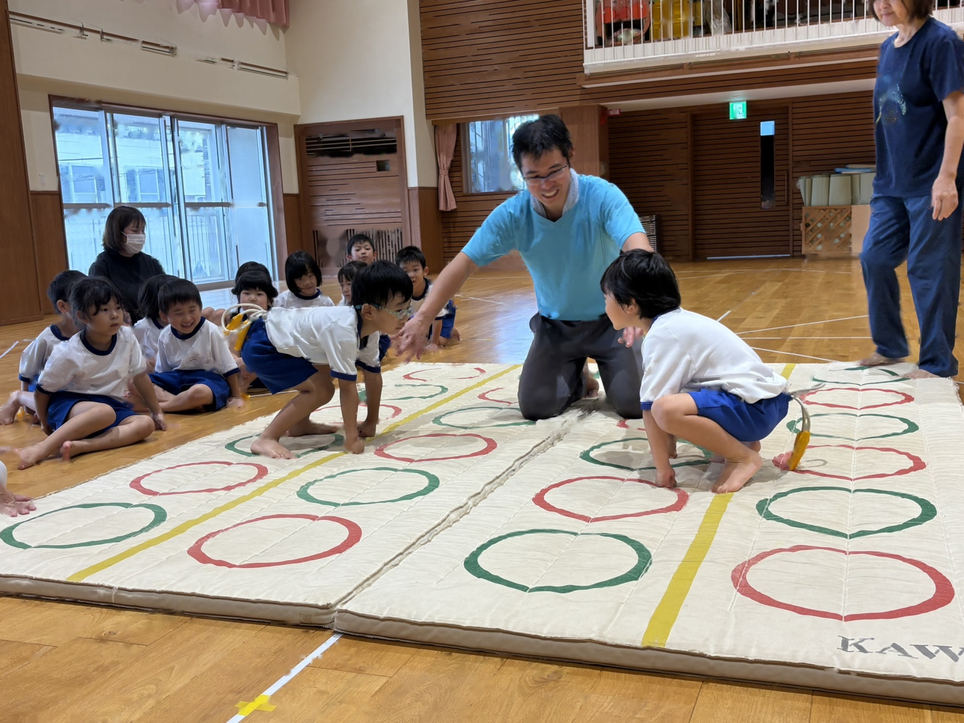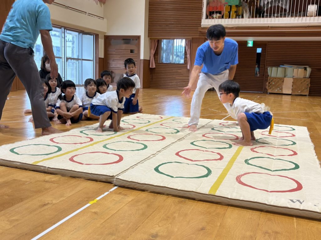 今日は親子競技「みんなで大変身!」を子ども達と一緒にやってみました。