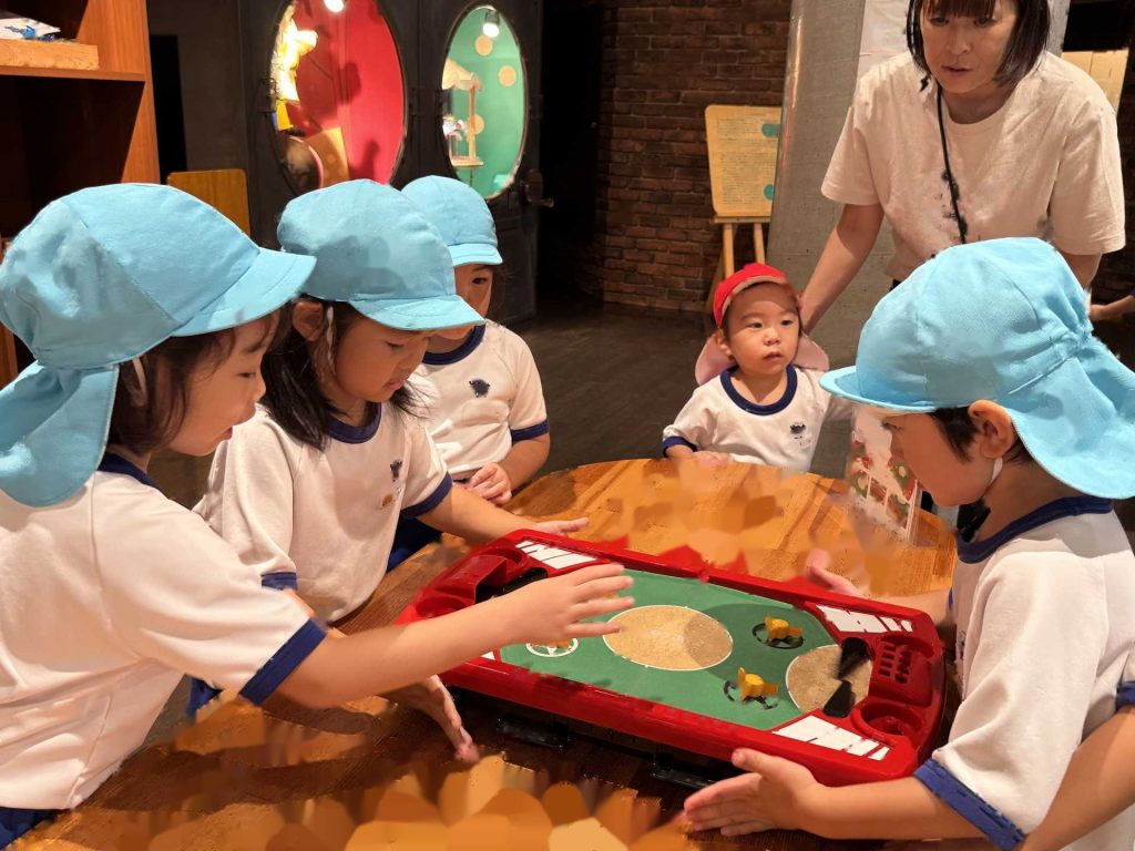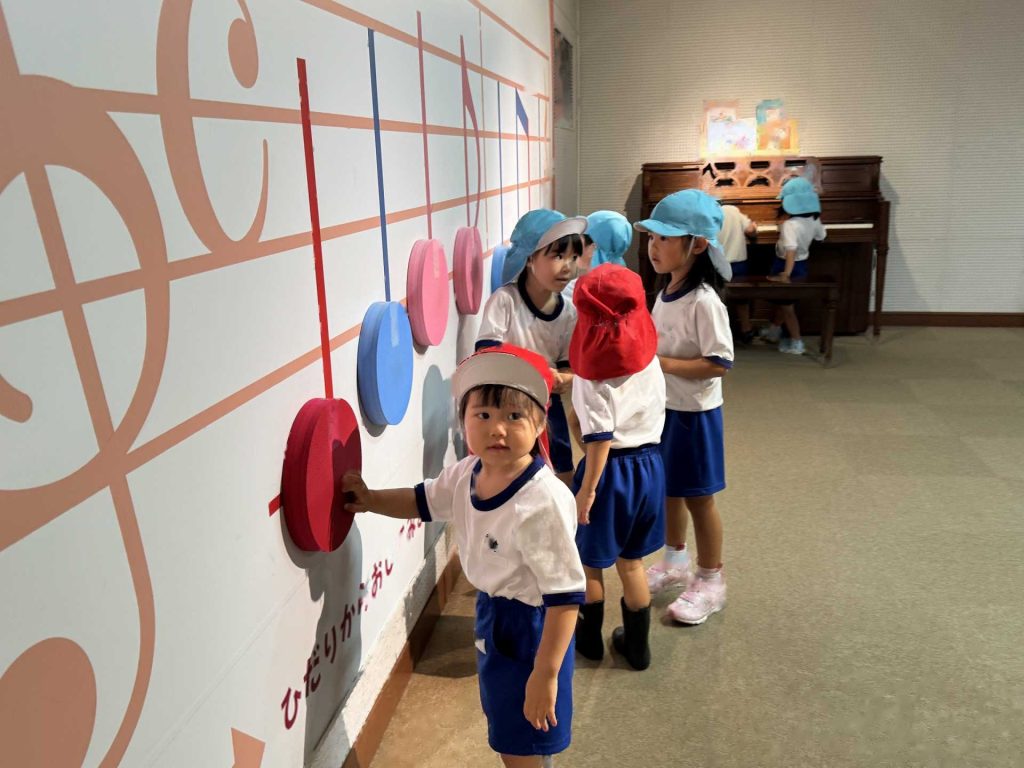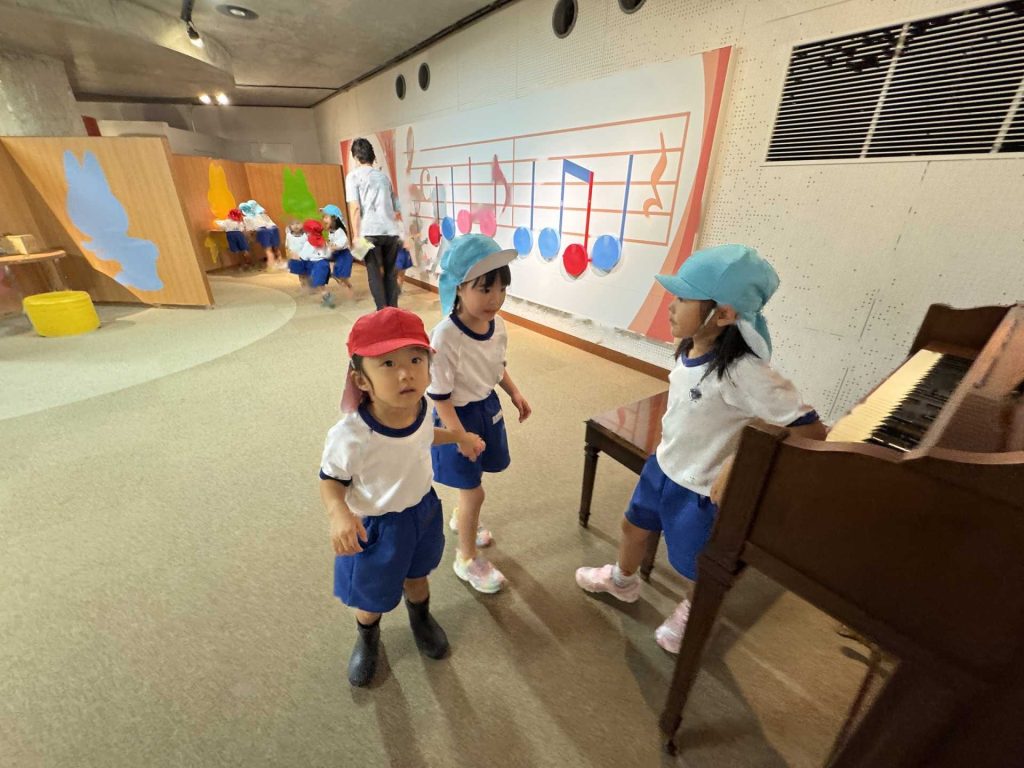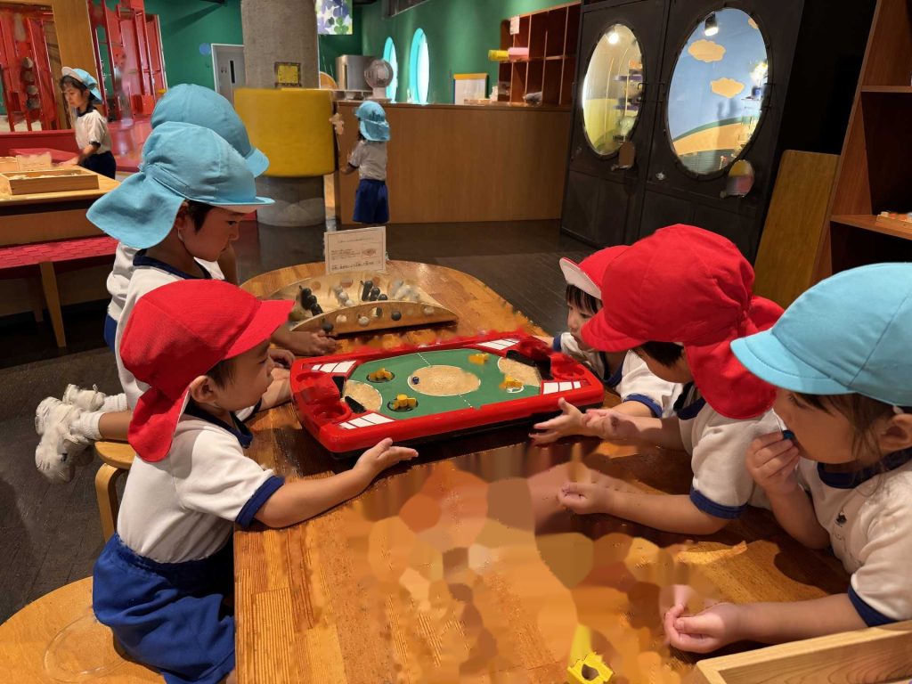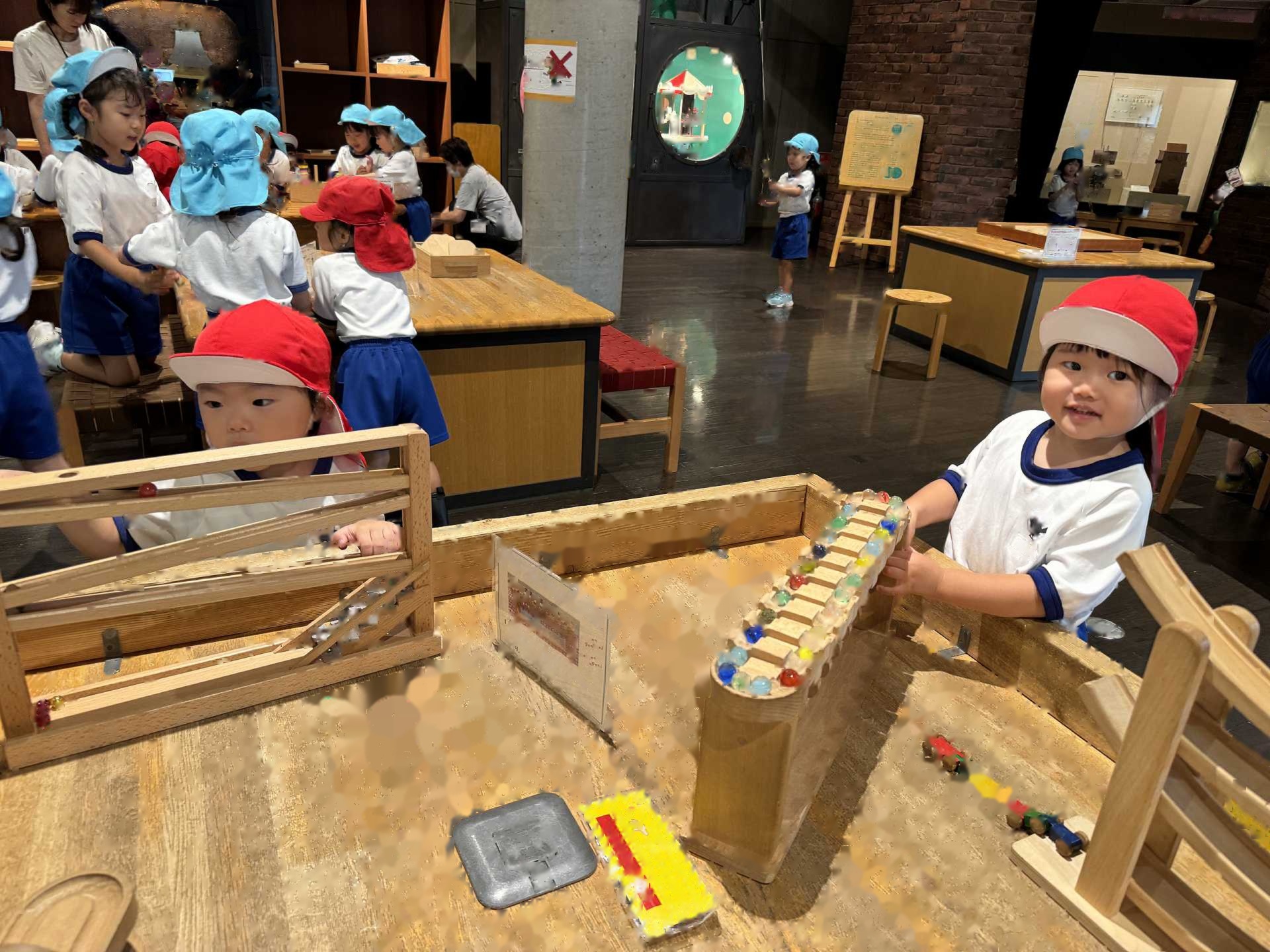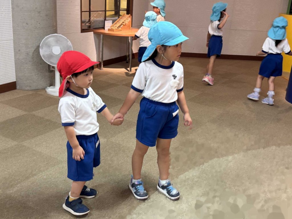 令和7年9月25日木曜日 ☆わらべ館☆ ゆり組とりんご組でわらべ館に遊びに行きました!わらべ館に行くことをとても楽しみにしていた子ども達は、館内見学をしたり、おもちゃで遊んだりとわらべ館を満喫していました♪ゆり組のお兄さん・お姉さんがりんご組のお友達の手をひいて一緒に遊んでくれる姿もあり、異年齢での園外保育を楽しんでいました!!