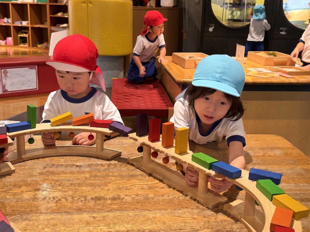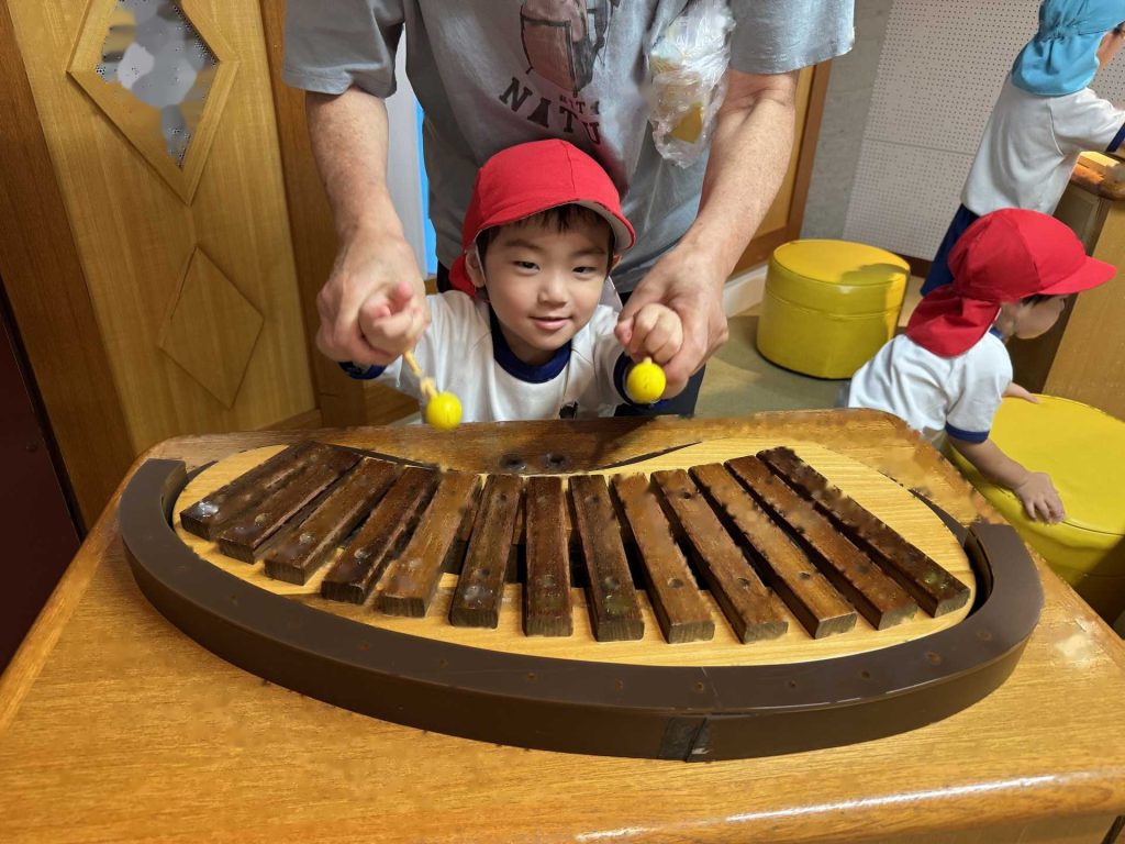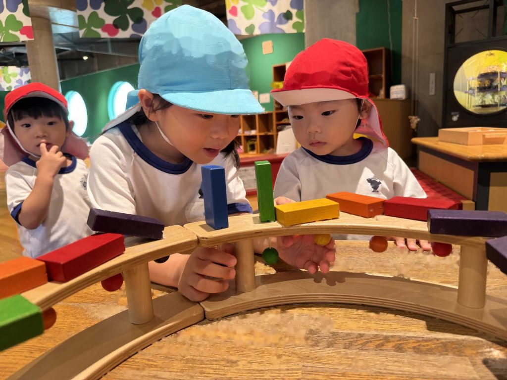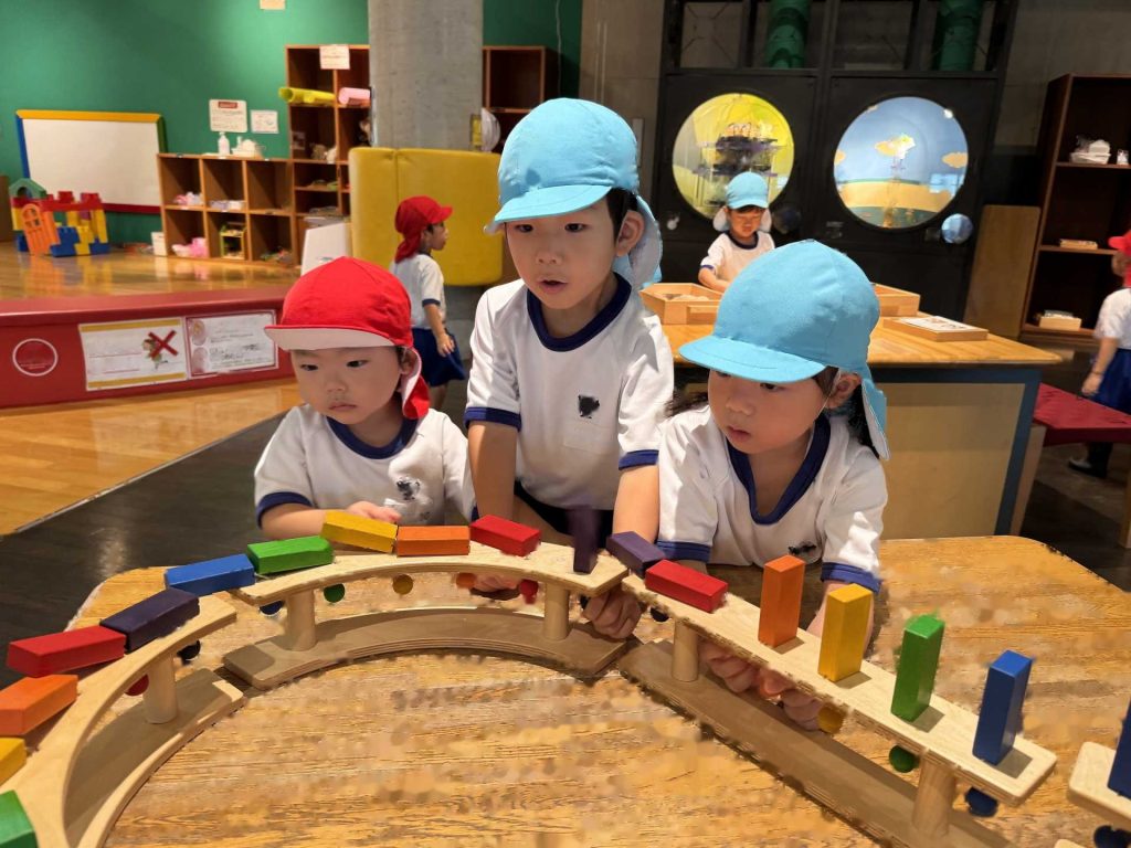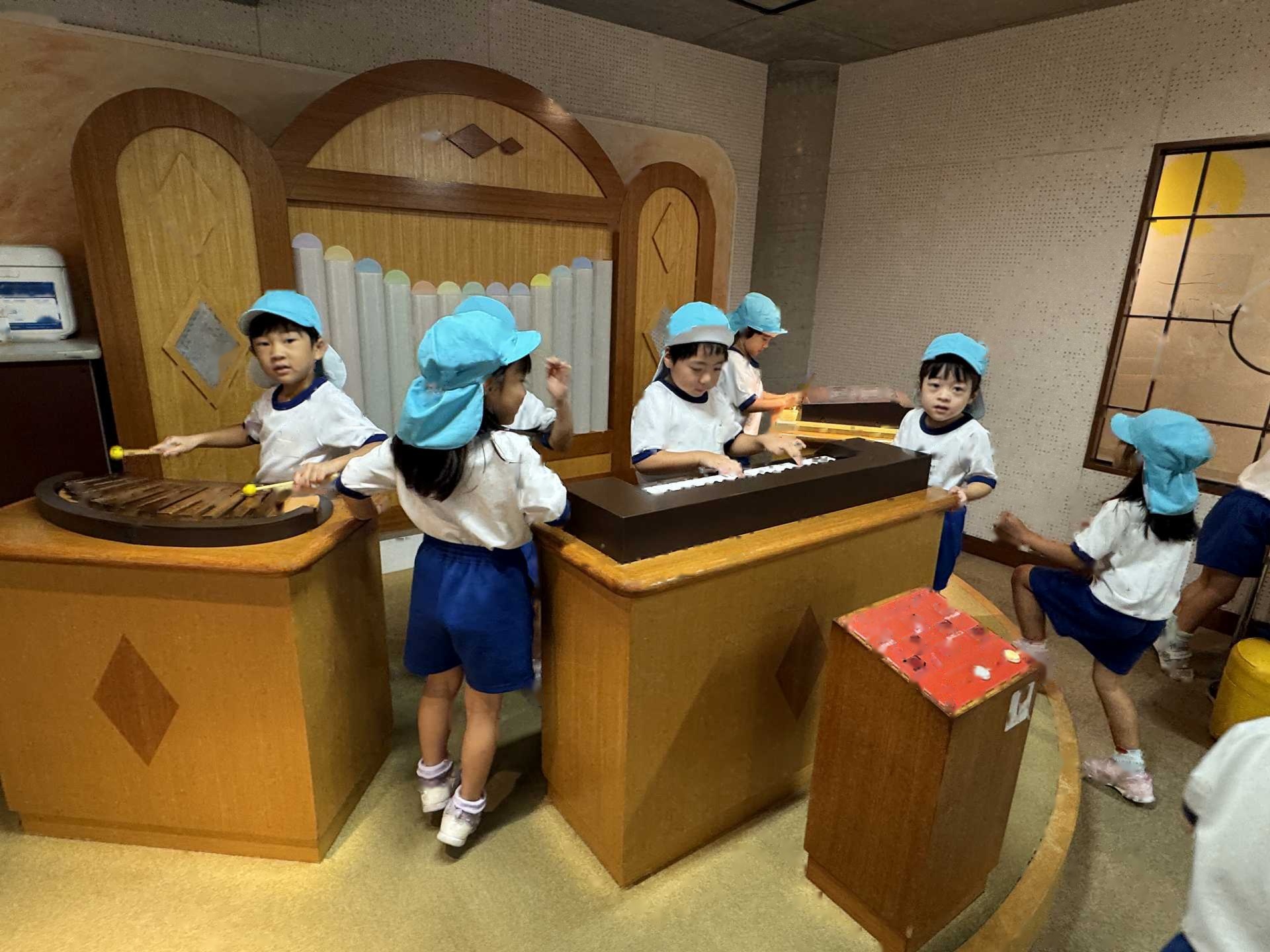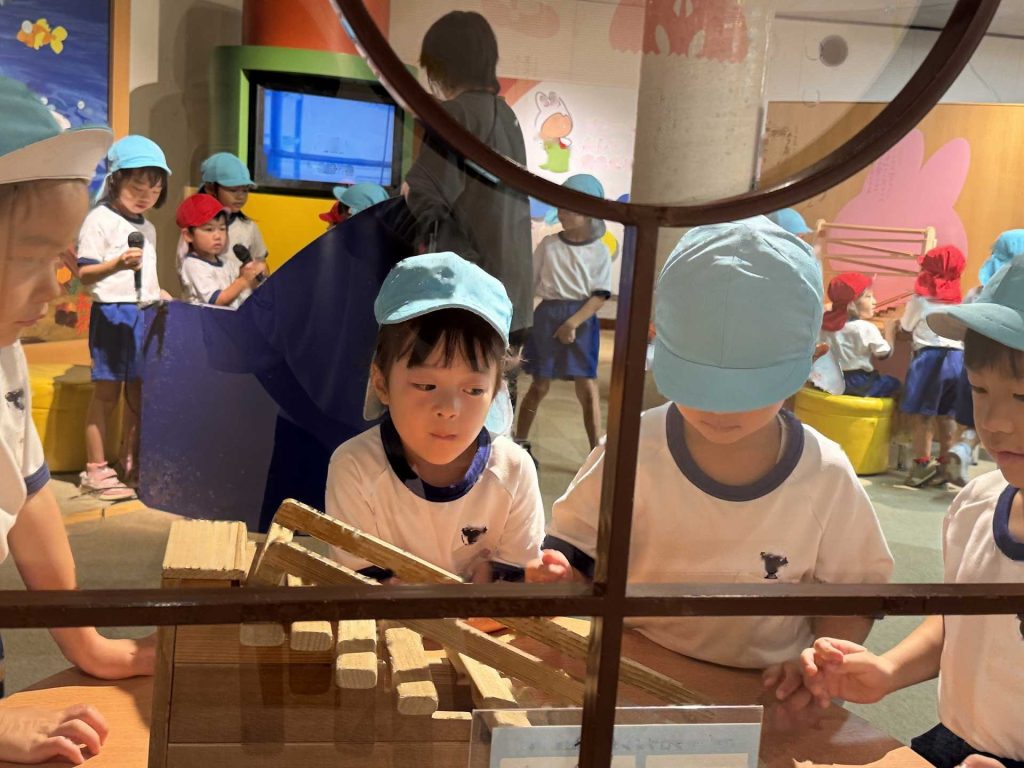 令和7年9月25日木曜日 ☆わらべ館☆ ゆり組とりんご組でわらべ館に遊びに行きました!わらべ館に行くことをとても楽しみにしていた子ども達は、館内見学をしたり、おもちゃで遊んだりとわらべ館を満喫していました♪ゆり組のお兄さん・お姉さんがりんご組のお友達の手をひいて一緒に遊んでくれる姿もあり、異年齢での園外保育を楽しんでいました!!