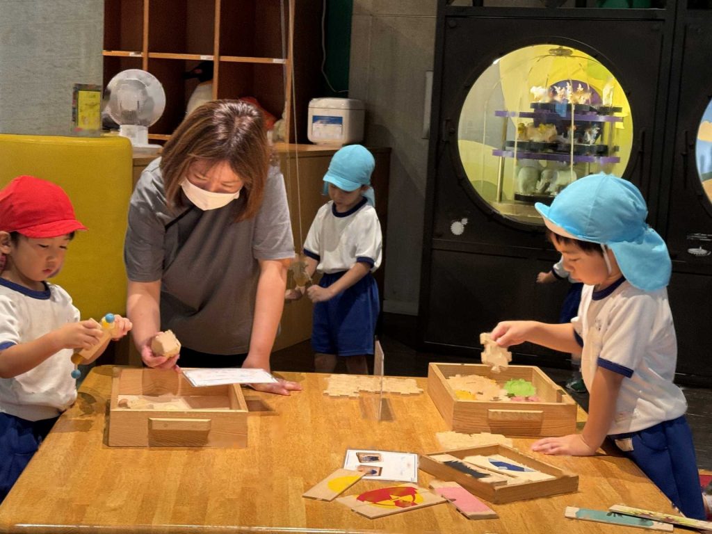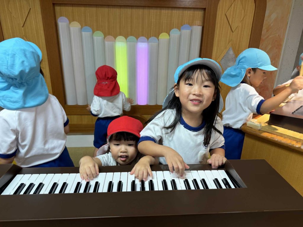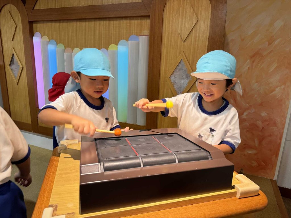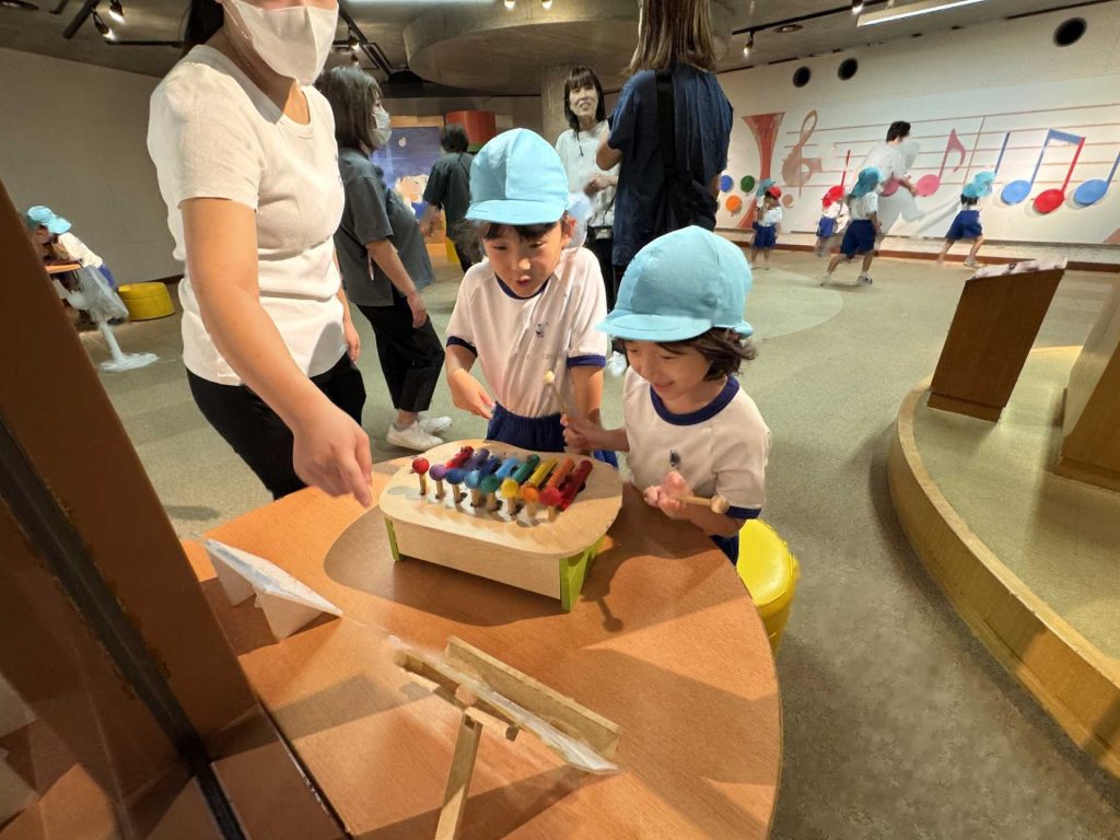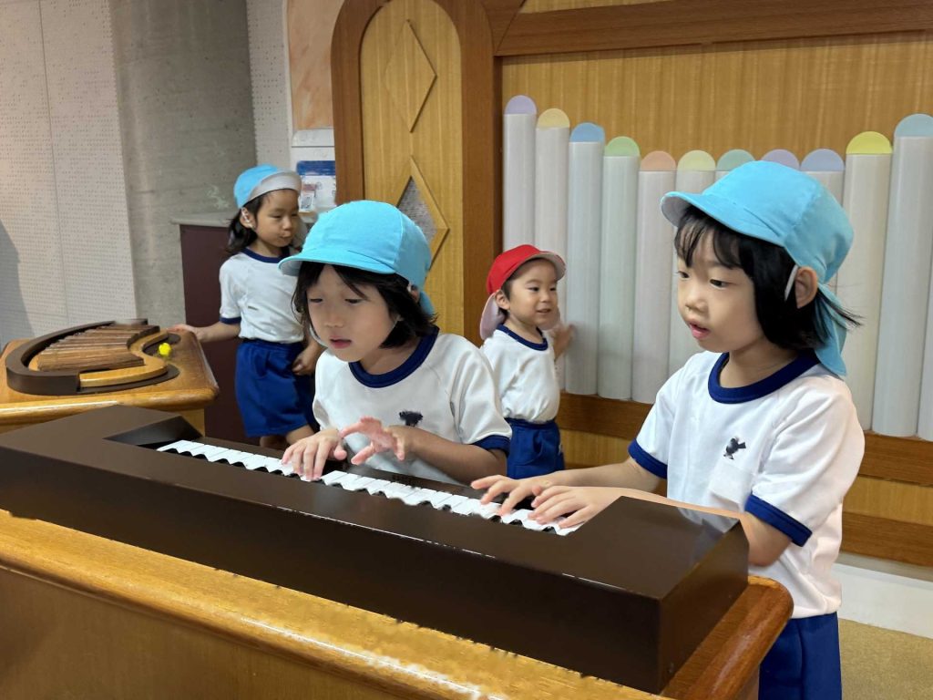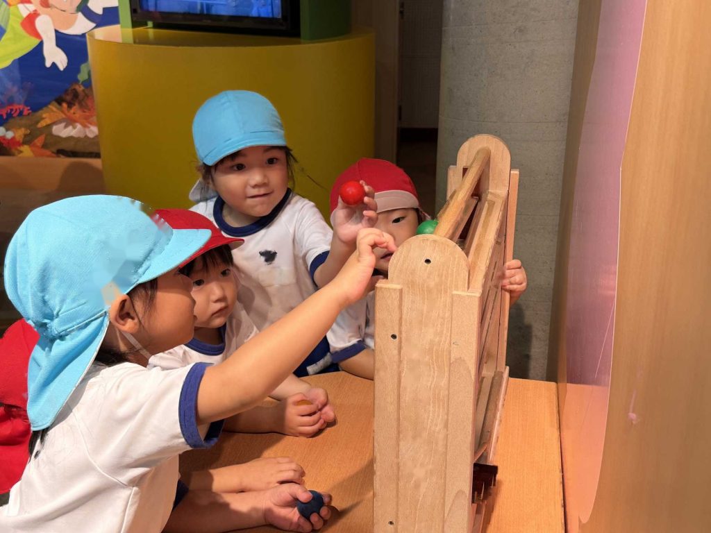 令和7年9月25日木曜日 ☆わらべ館☆ ゆり組とりんご組でわらべ館に遊びに行きました!わらべ館に行くことをとても楽しみにしていた子ども達は、館内見学をしたり、おもちゃで遊んだりとわらべ館を満喫していました♪ゆり組のお兄さん・お姉さんがりんご組のお友達の手をひいて一緒に遊んでくれる姿もあり、異年齢での園外保育を楽しんでいました!!