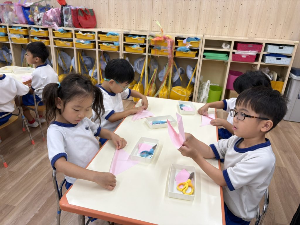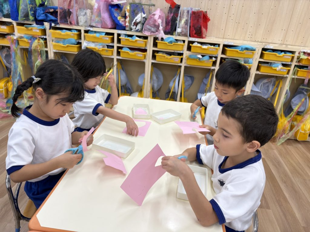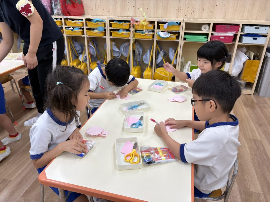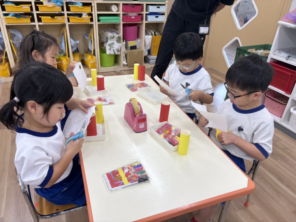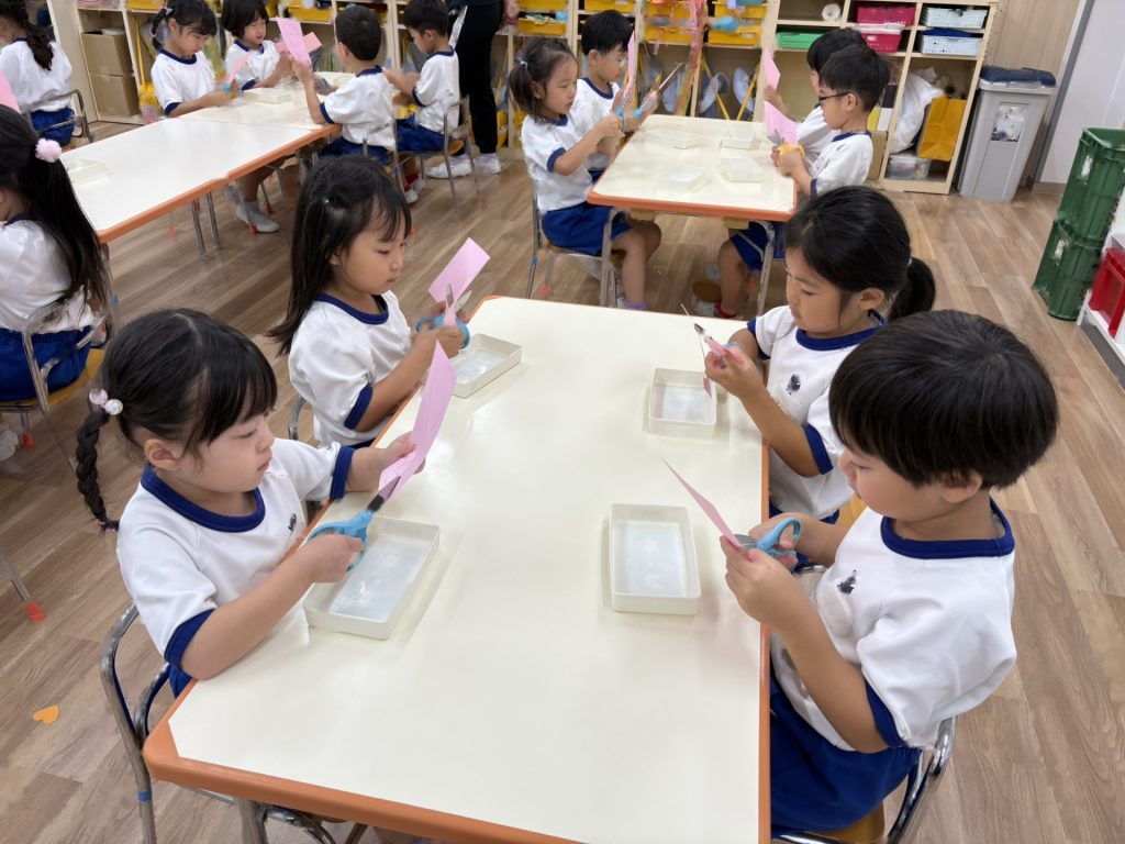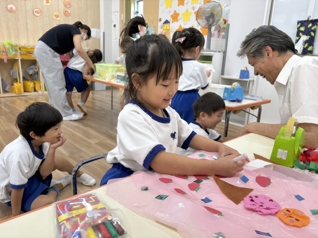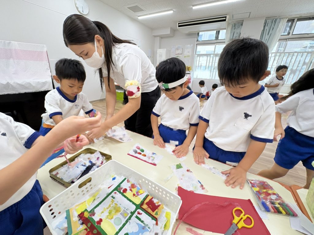 令和7年9月19日金曜日 お部屋遊び お部屋での遊びを楽しんでいる子ども達です。試行錯誤を繰り返しながら、お友達と一緒に好きな遊びを満喫中です♪ ★制作コーナー 作った作品でかわいく変身! 手裏剣づくり! ★つみきコーナー 高く積めるかな? 続きはまた来週♪
