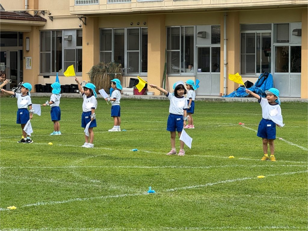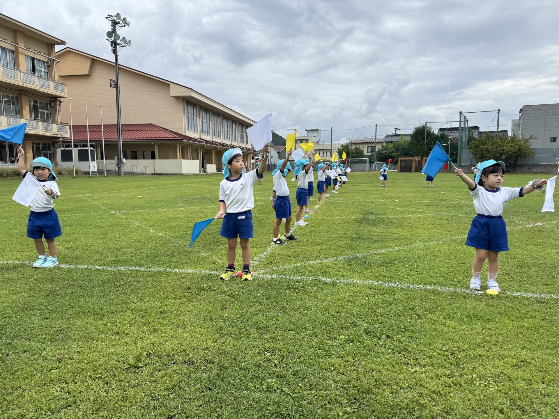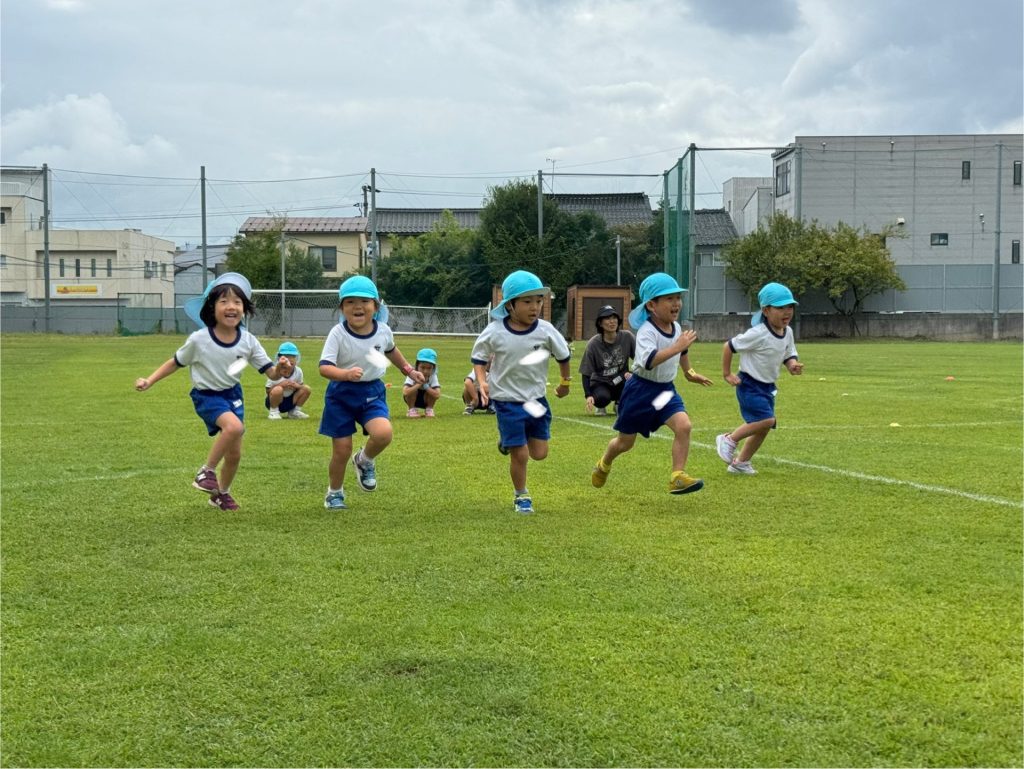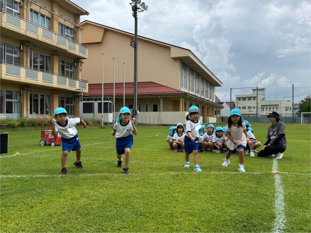 令和7年9月30日火曜日 運動会練習 今日は校庭でかけっこ&ダンスを楽しんできました!日に日にかっこよさが増している年中組さん✨あと数日の練習も頑張りながら、当日を楽しみに迎えたいと思います! その①かけっこ!やる気満々で、ちょっぴりフライングになりそうなときもありますが…力強い走りになってきました(^ ^) その②ダンス!チームのお友達と気持ちを合わせて頑張ってます〜元気なかけ声もそろうとますますかっこよくなりそうです(^^) 〜おまけ〜教育実習にこられていた先生が、今日最終日でした。たくさん遊んでもらい、みんなが大好きな先生になりました(^^)先生より手裏剣のプレゼントをもらいました。