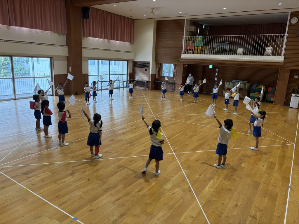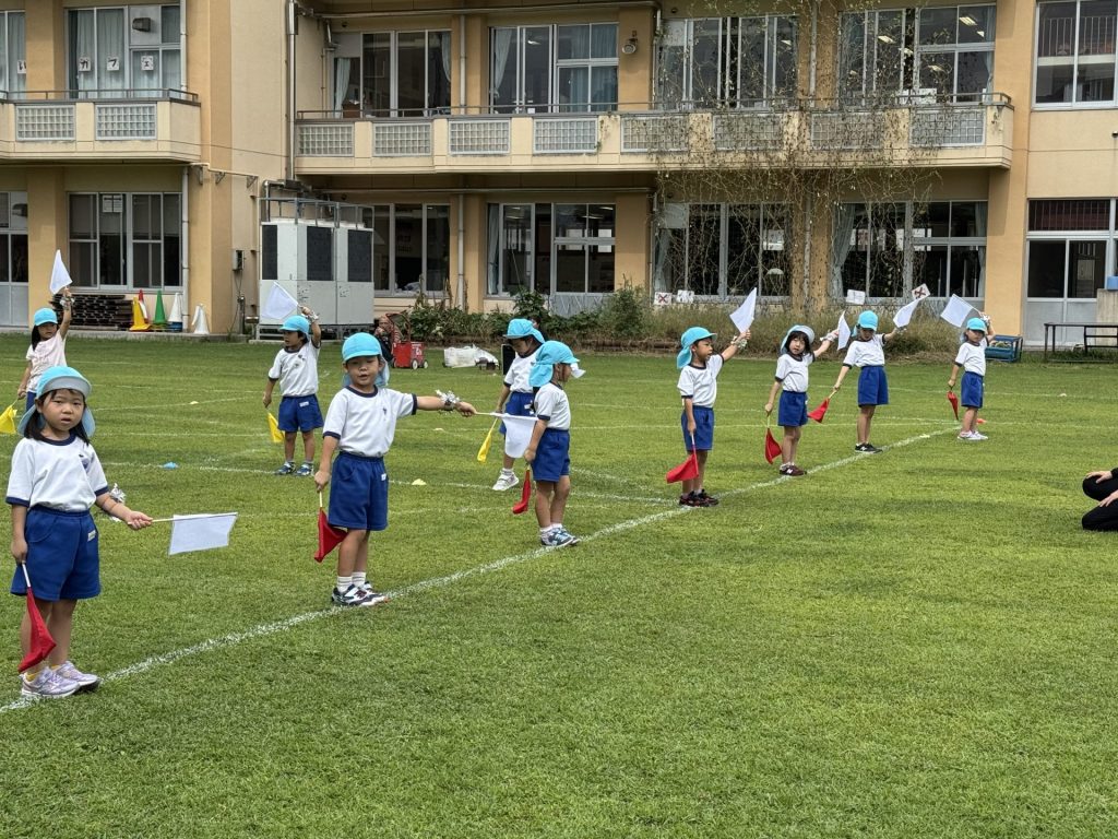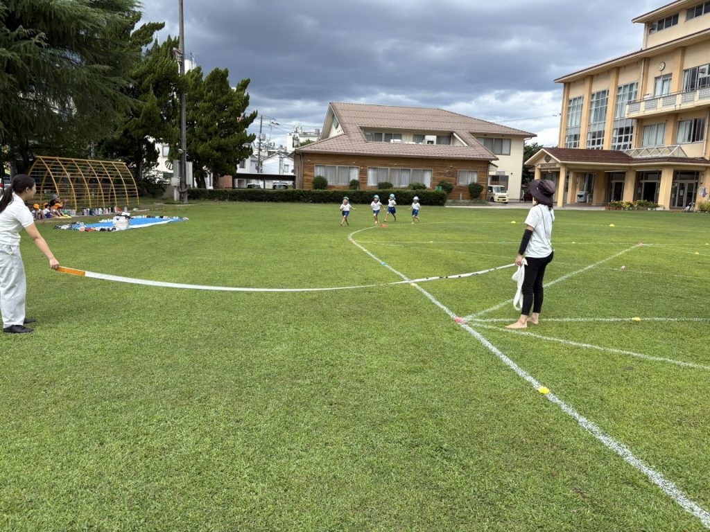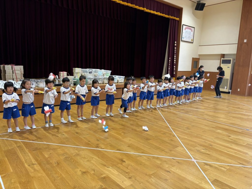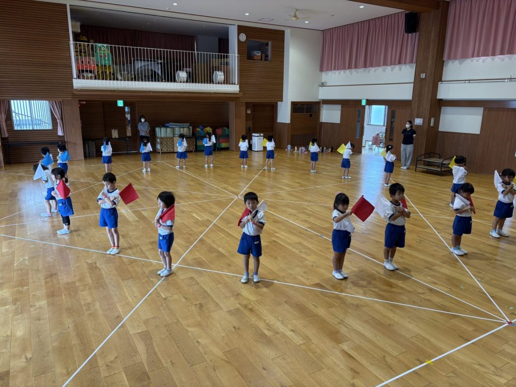 令和7年9月30日火曜日 運動会練習 今日は校庭でかけっこ&ダンスを楽しんできました!日に日にかっこよさが増している年中組さん✨あと数日の練習も頑張りながら、当日を楽しみに迎えたいと思います! その①かけっこ!やる気満々で、ちょっぴりフライングになりそうなときもありますが…力強い走りになってきました(^ ^) その②ダンス!チームのお友達と気持ちを合わせて頑張ってます〜元気なかけ声もそろうとますますかっこよくなりそうです(^^) 〜おまけ〜教育実習にこられていた先生が、今日最終日でした。たくさん遊んでもらい、みんなが大好きな先生になりました(^^)先生より手裏剣のプレゼントをもらいました。