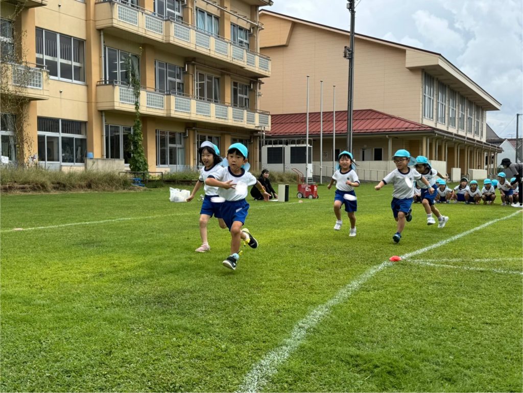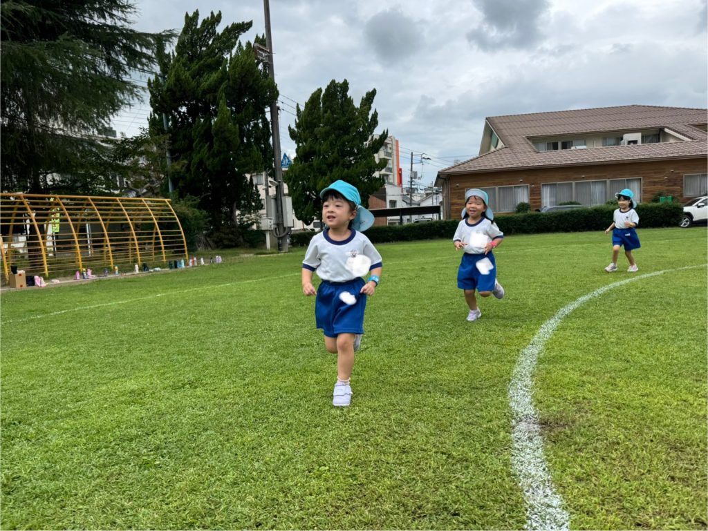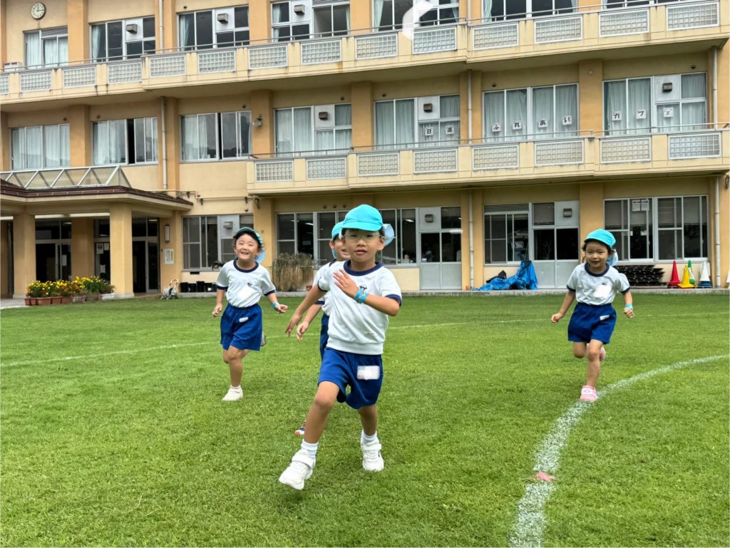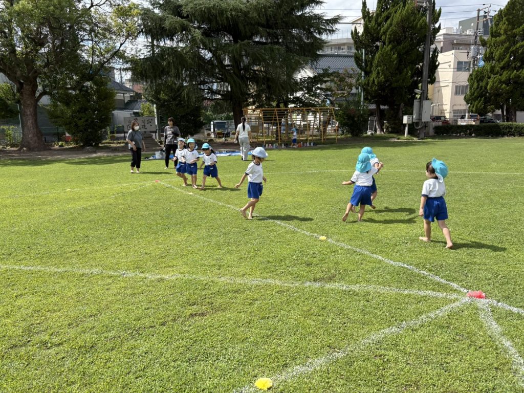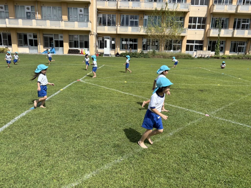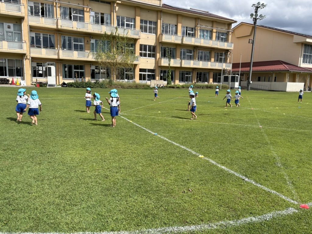 令和7年9月22日月曜日 かけっこ 小学校でかけっこをしてきました!ひろ~いグランドを楽しそうに走っていた子ども達です! かけっこのあとは、自由タイム♪とんぼを追いかけたり、友達と追いかけっこをして遊びました!