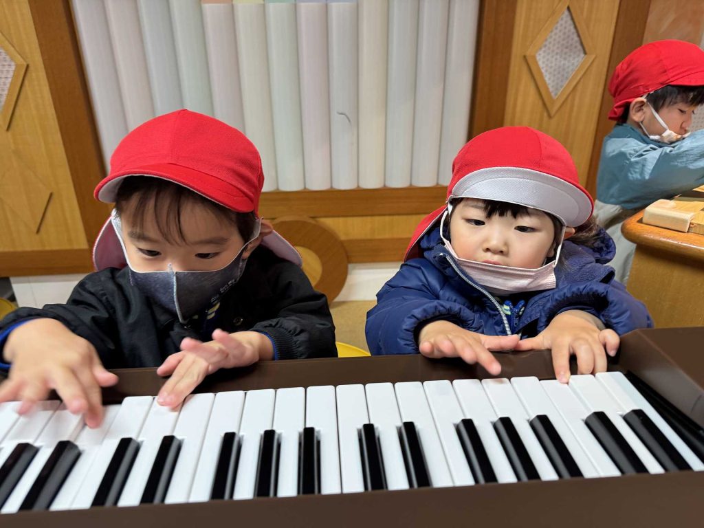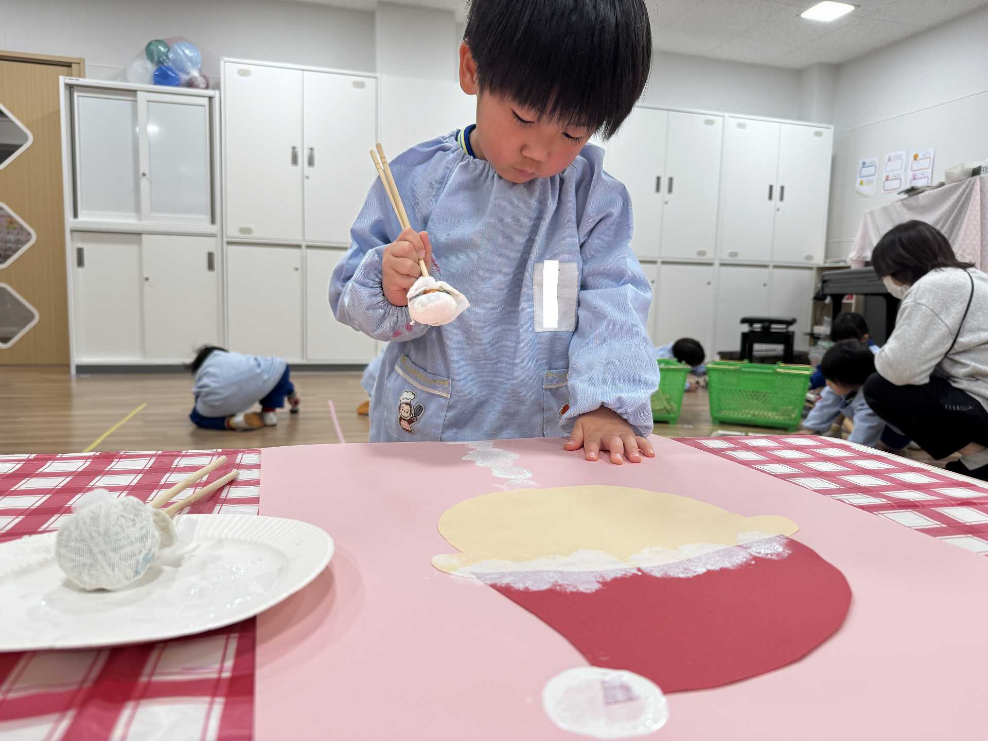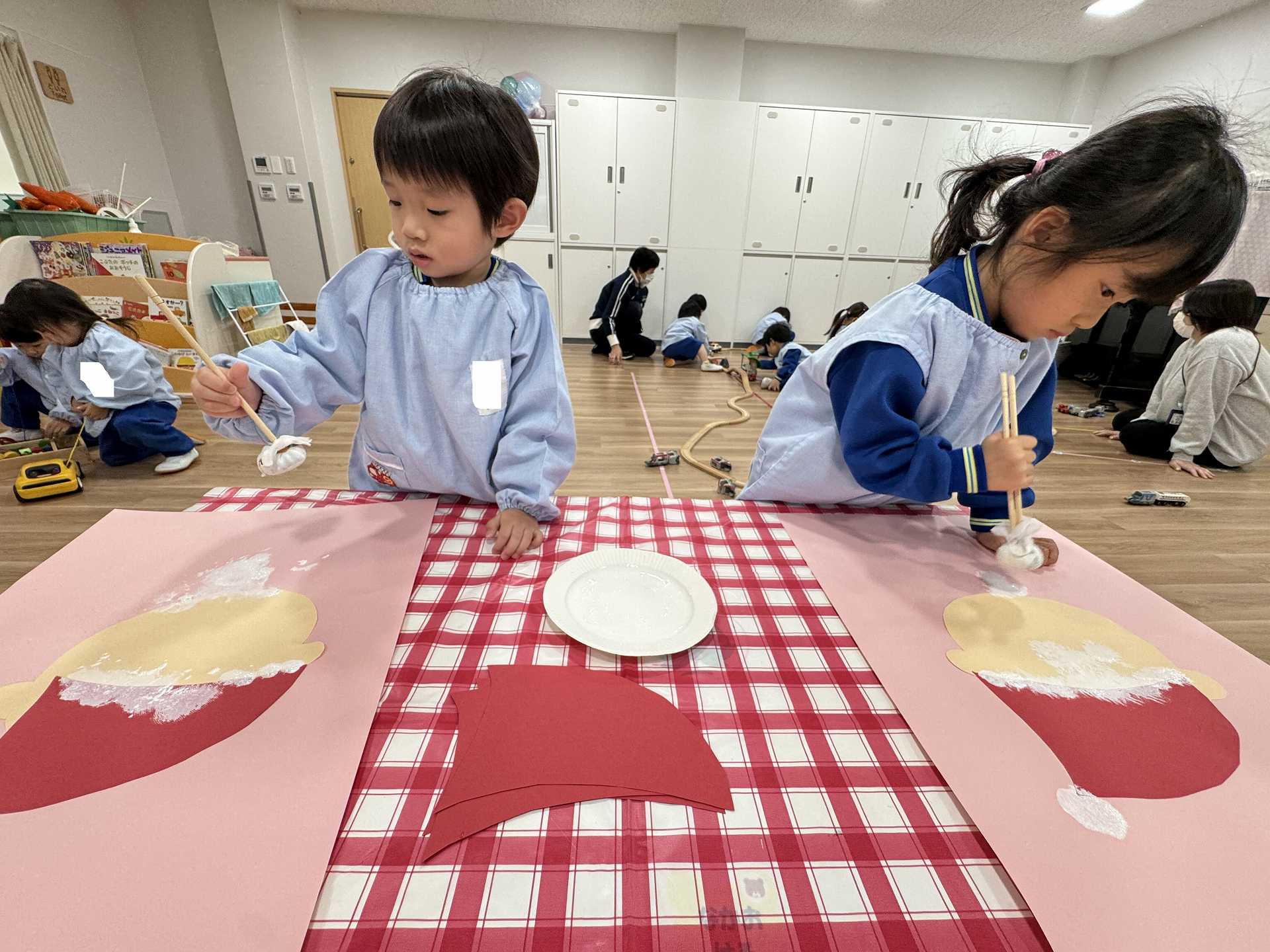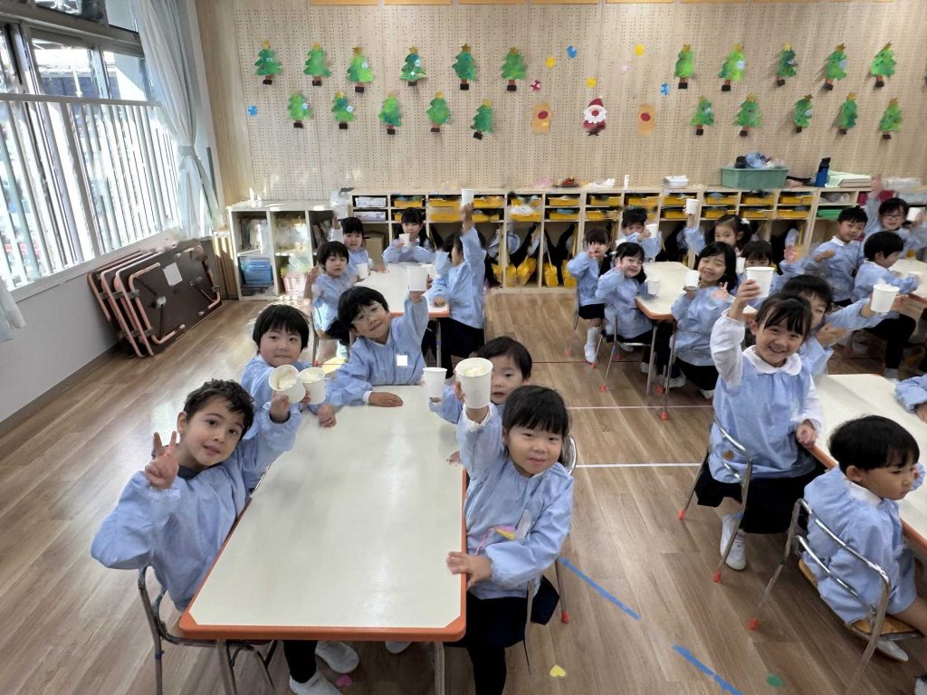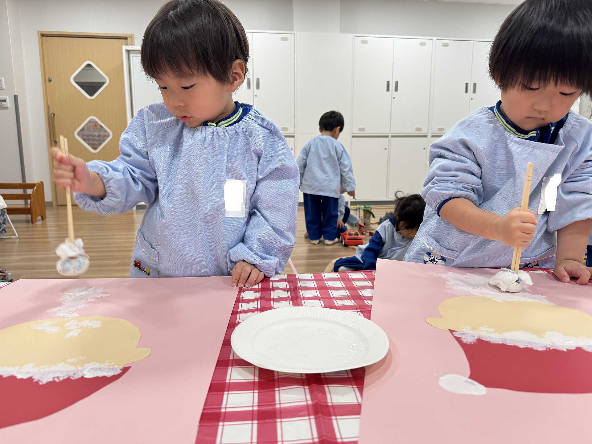 発表会では大勢のお客さまの前で素敵な姿を見せてくれた子ども達!ゆり組・りんご組一緒に発表会頑張りましたご褒美クッキングでポップコーンを食べました!ポップコーンは何からできるの?と聞かれると「コーン!!」「かたいやつ!」と何からポップコーンができるのかよく知っていました