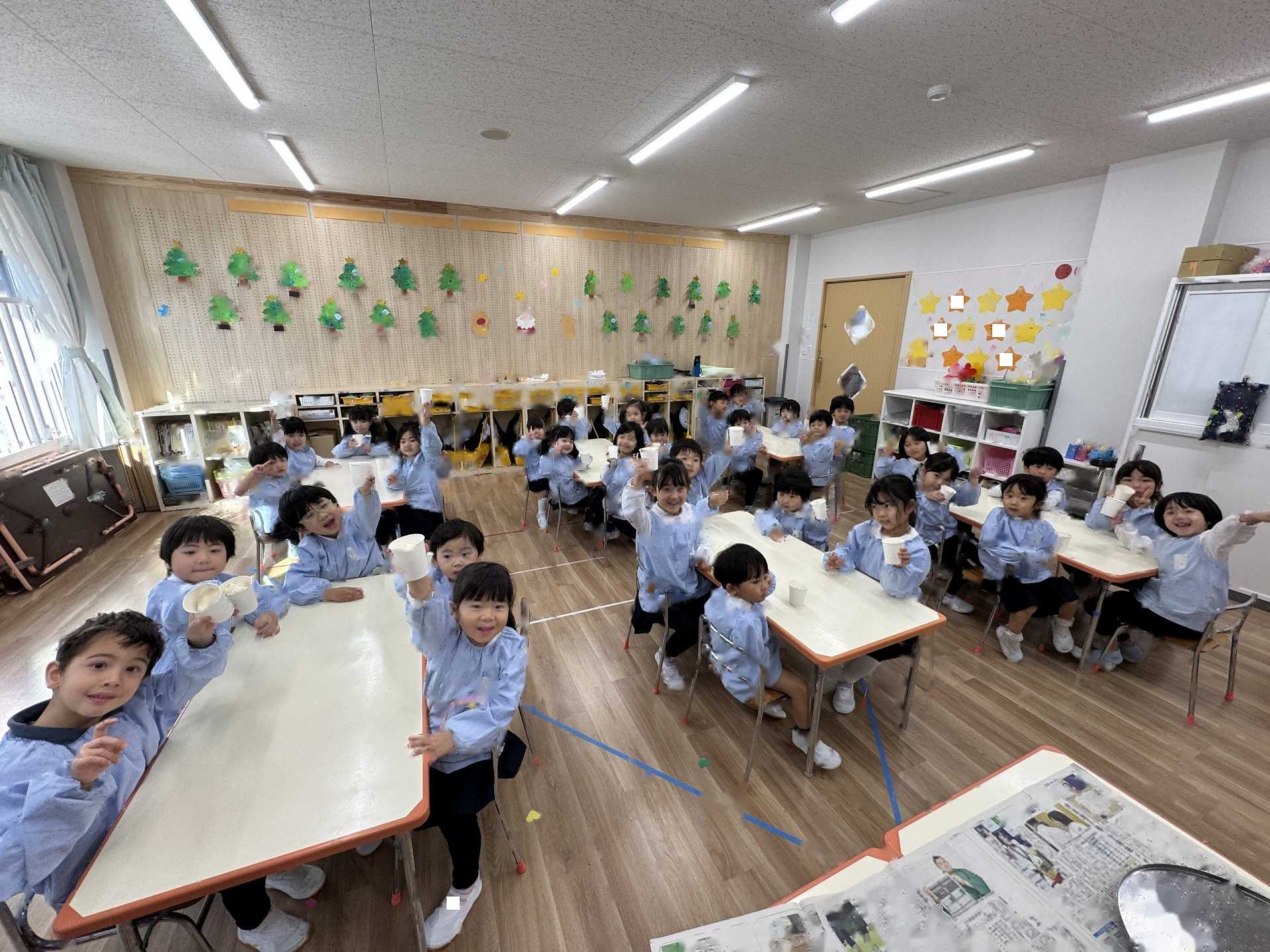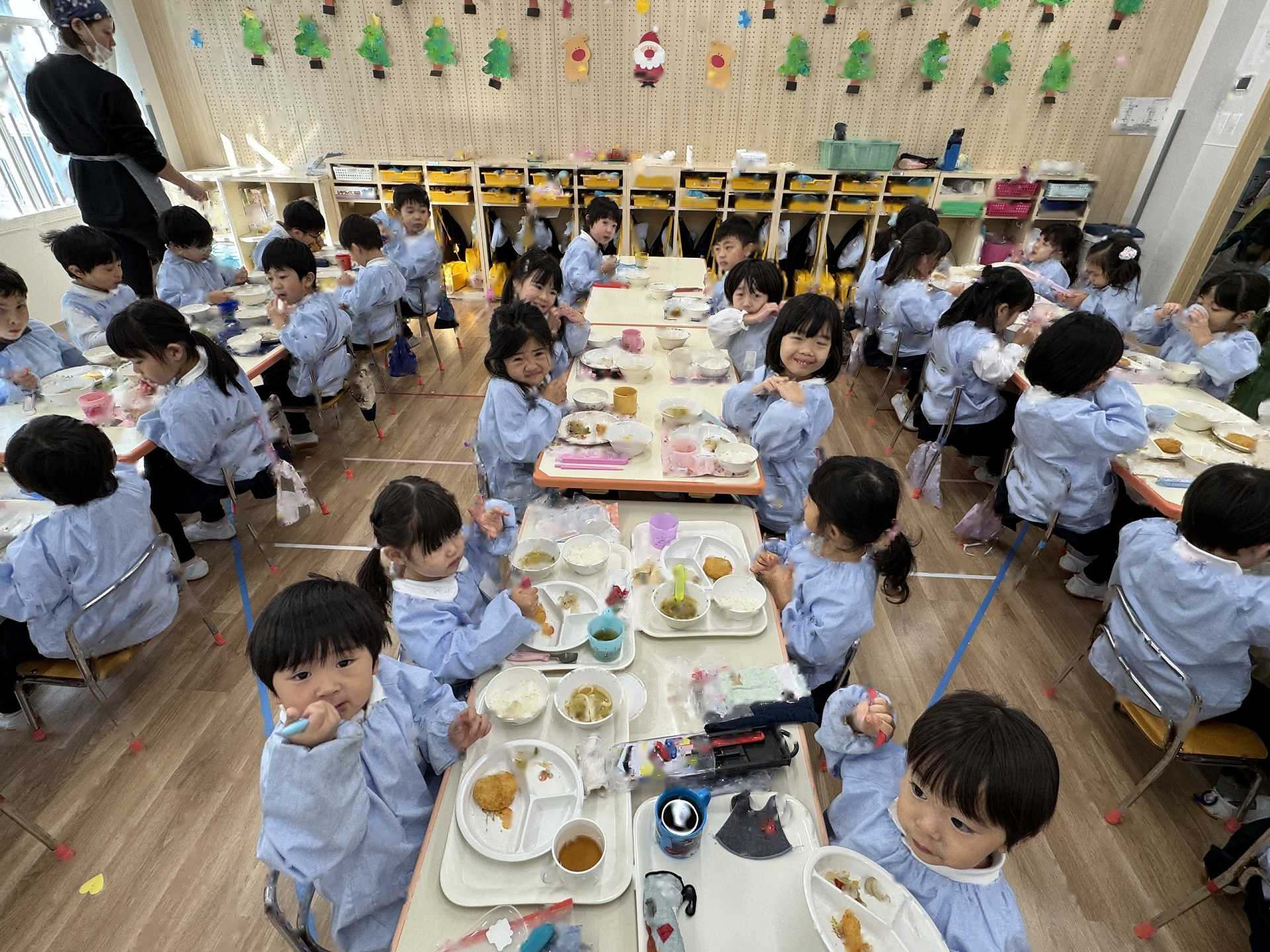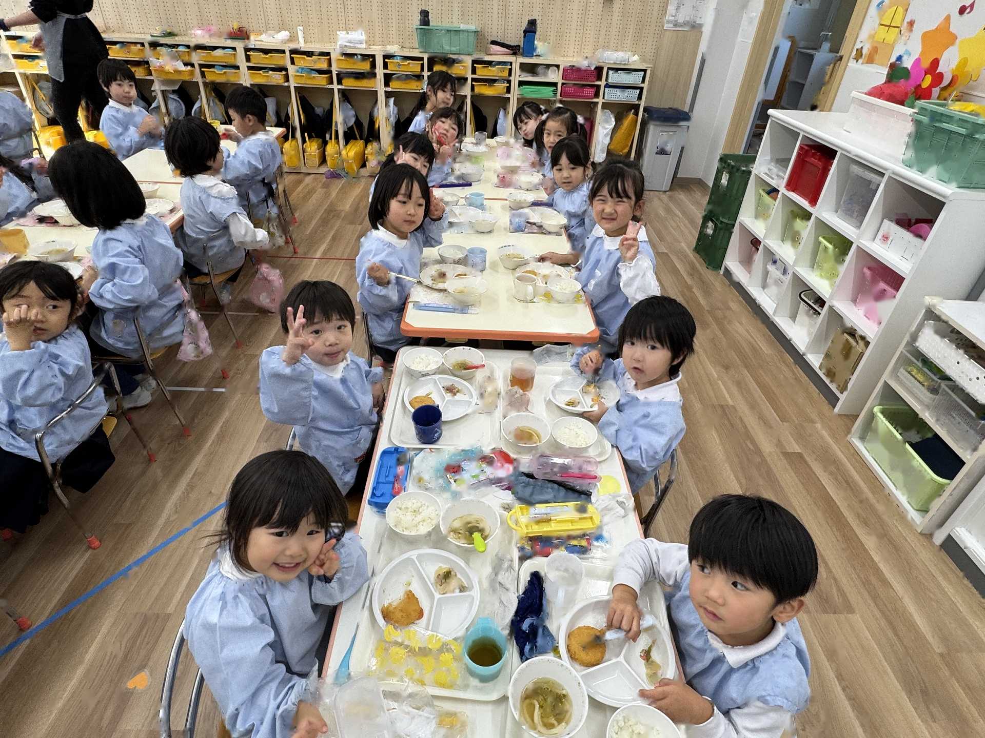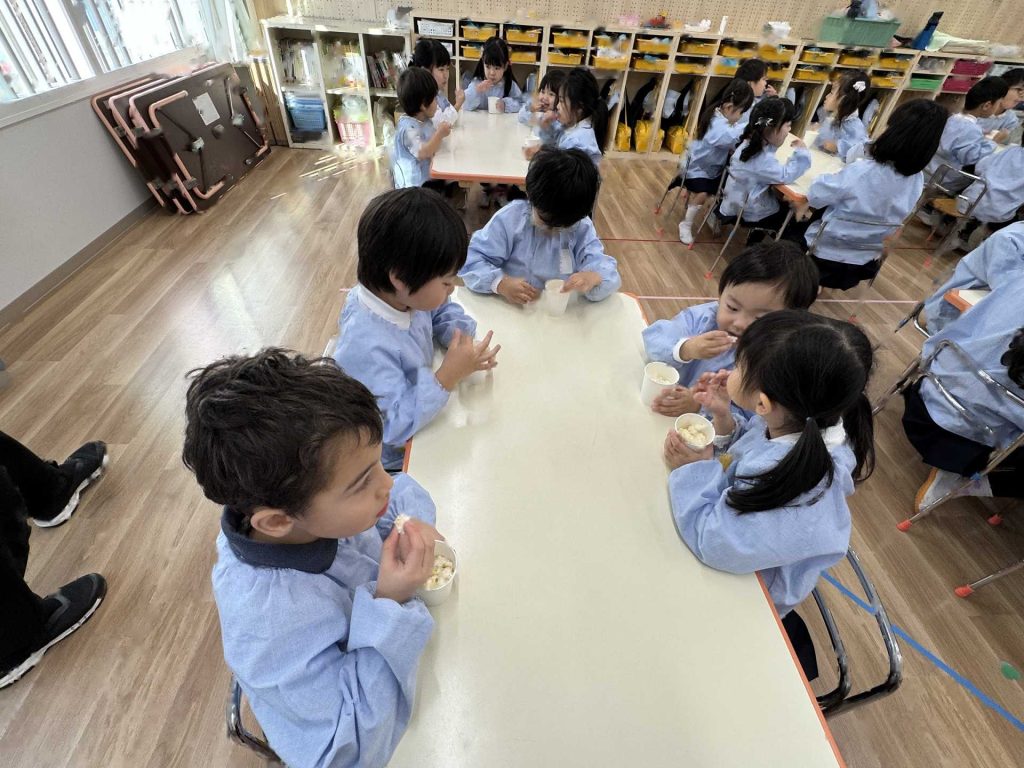 ポップコーンを食べたあとは、一緒に給食を食べていつもとちがう雰囲気に少しドキドキしている様子でしたが、嬉しそうな子ども達でした♪