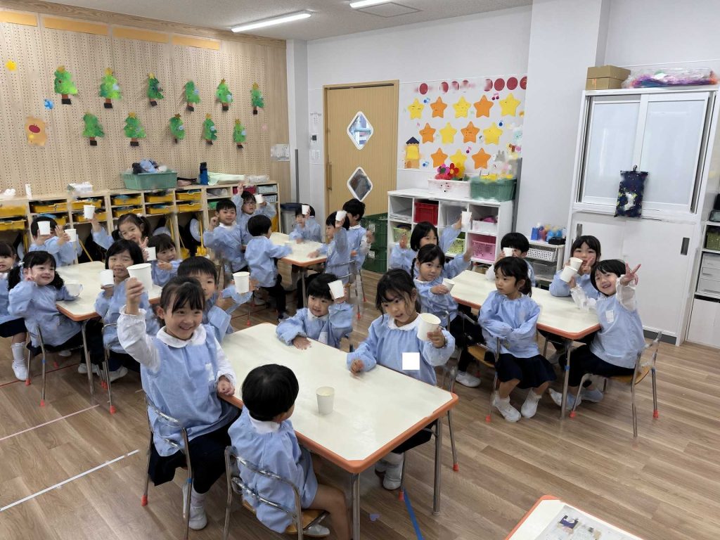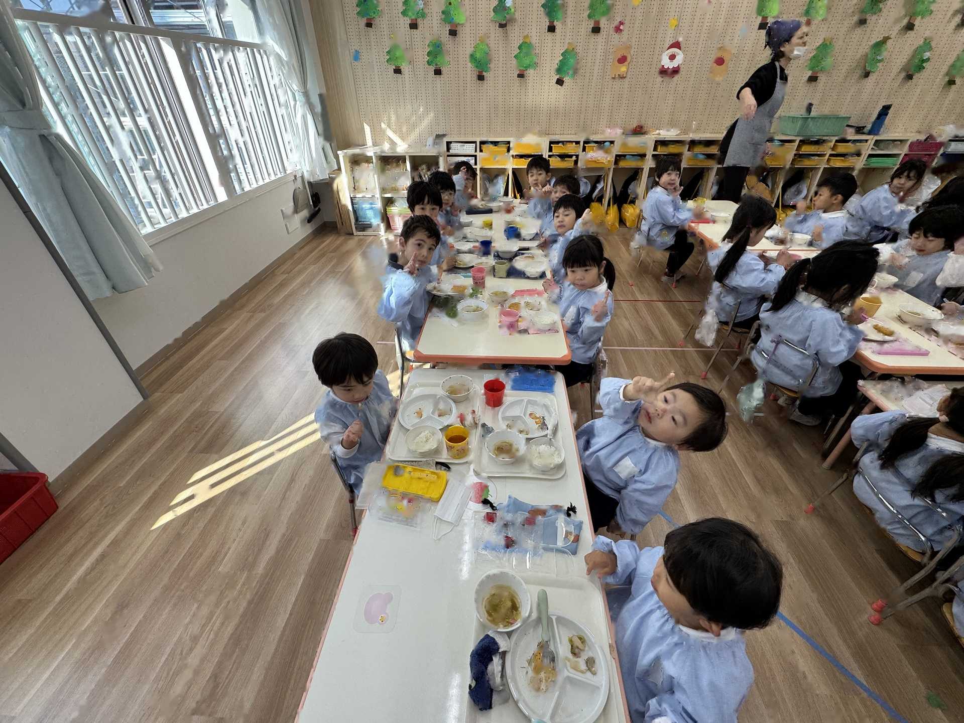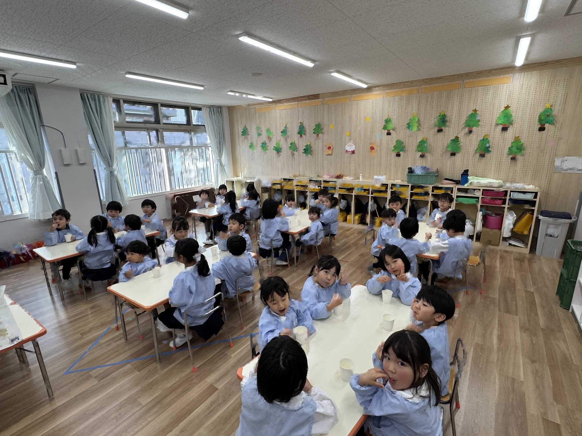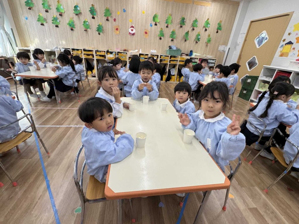 ポップコーンを食べたあとは、一緒に給食を食べていつもとちがう雰囲気に少しドキドキしている様子でしたが、嬉しそうな子ども達でした♪