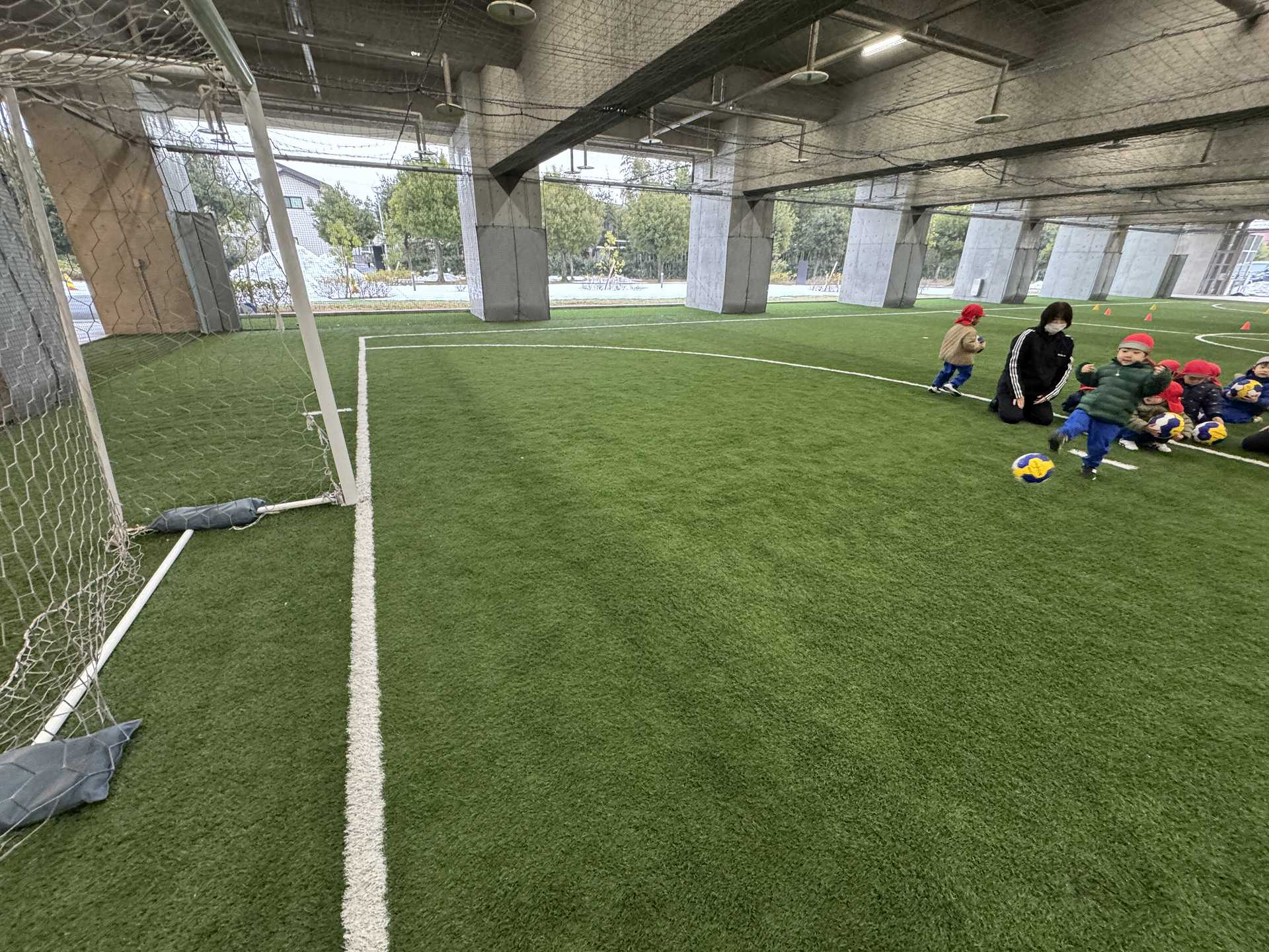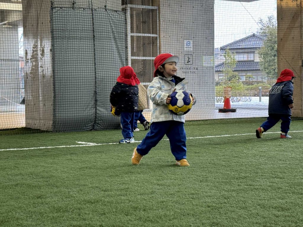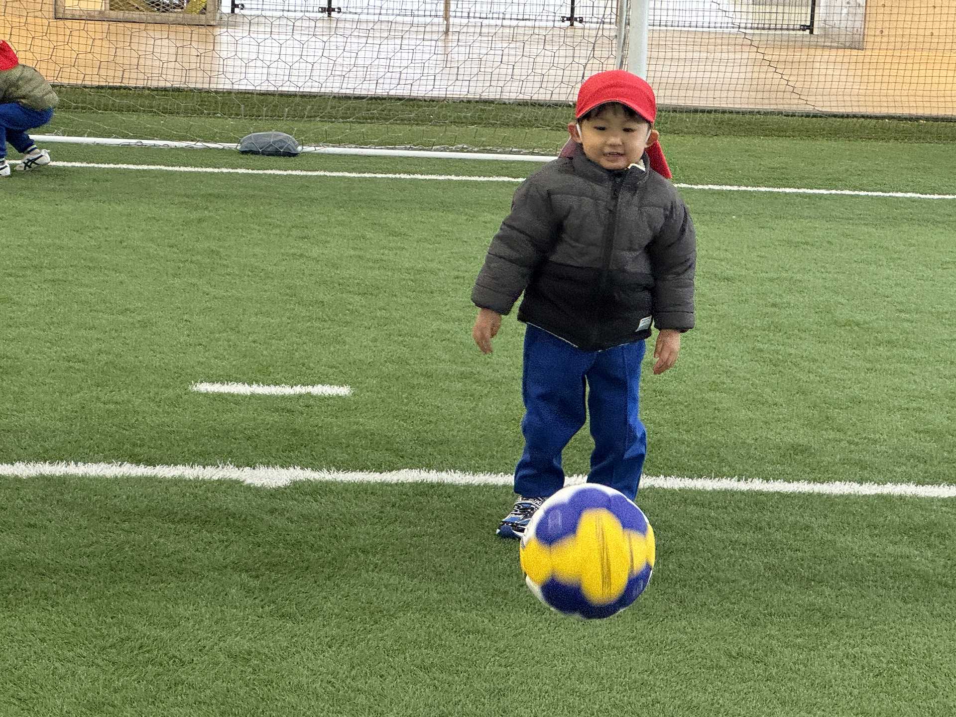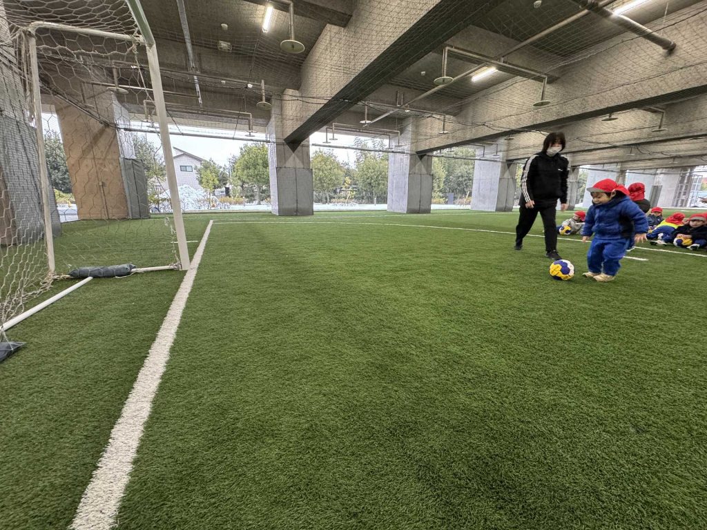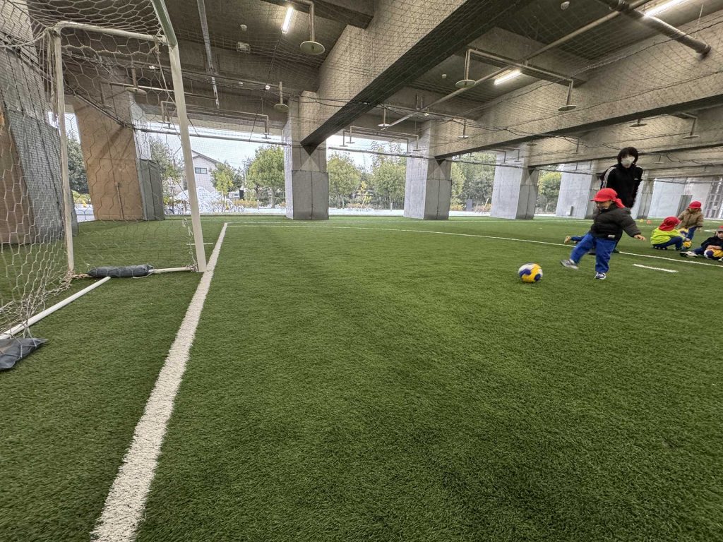 サッカーゴールにシュート!も挑戦しました!ゴールできると「やったー!」と嬉しそうな子ども達でした♪またフットサル場やいろいろなところにお出掛けしたいと思います!