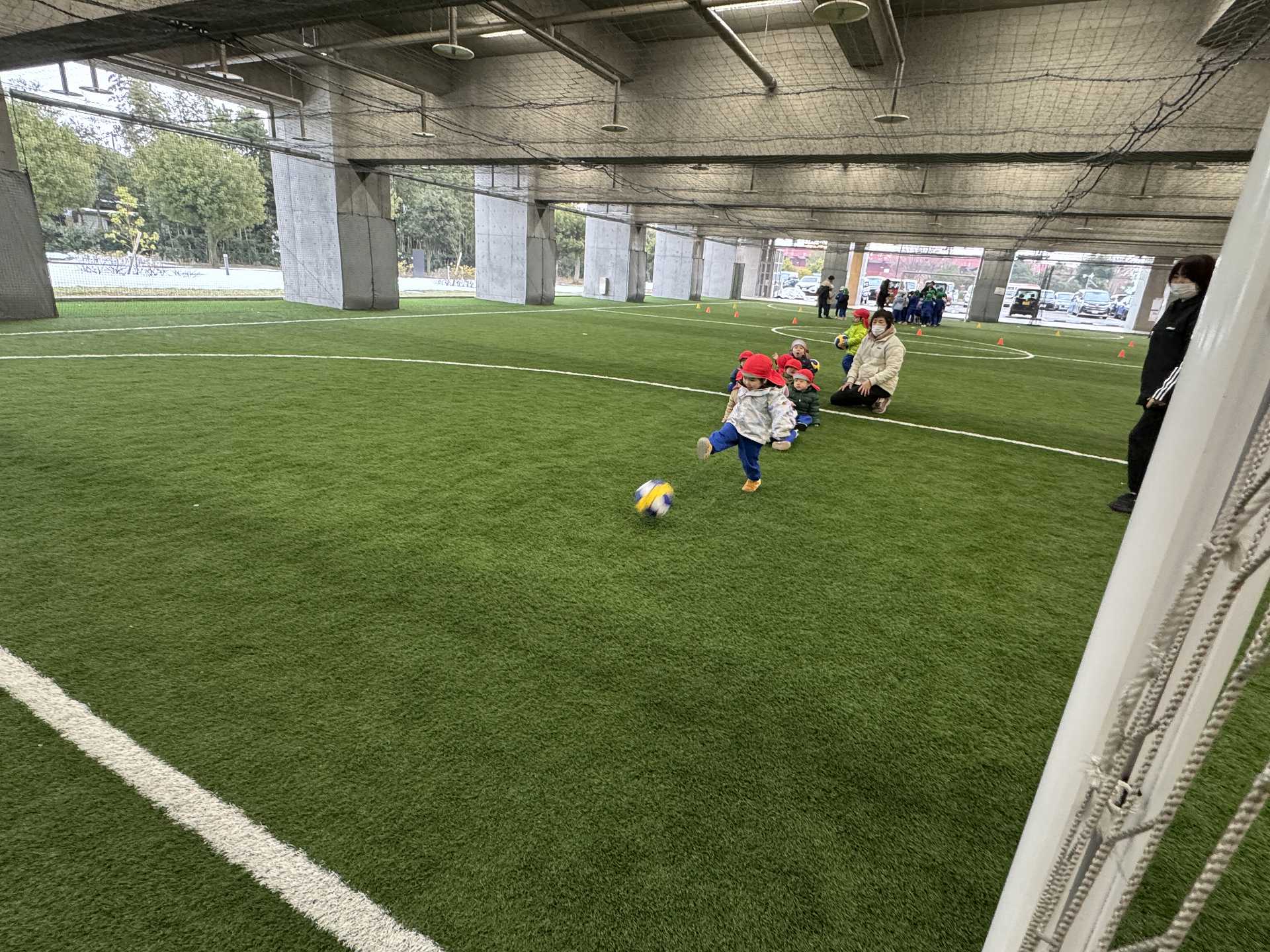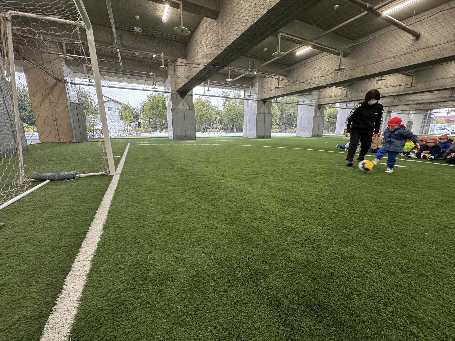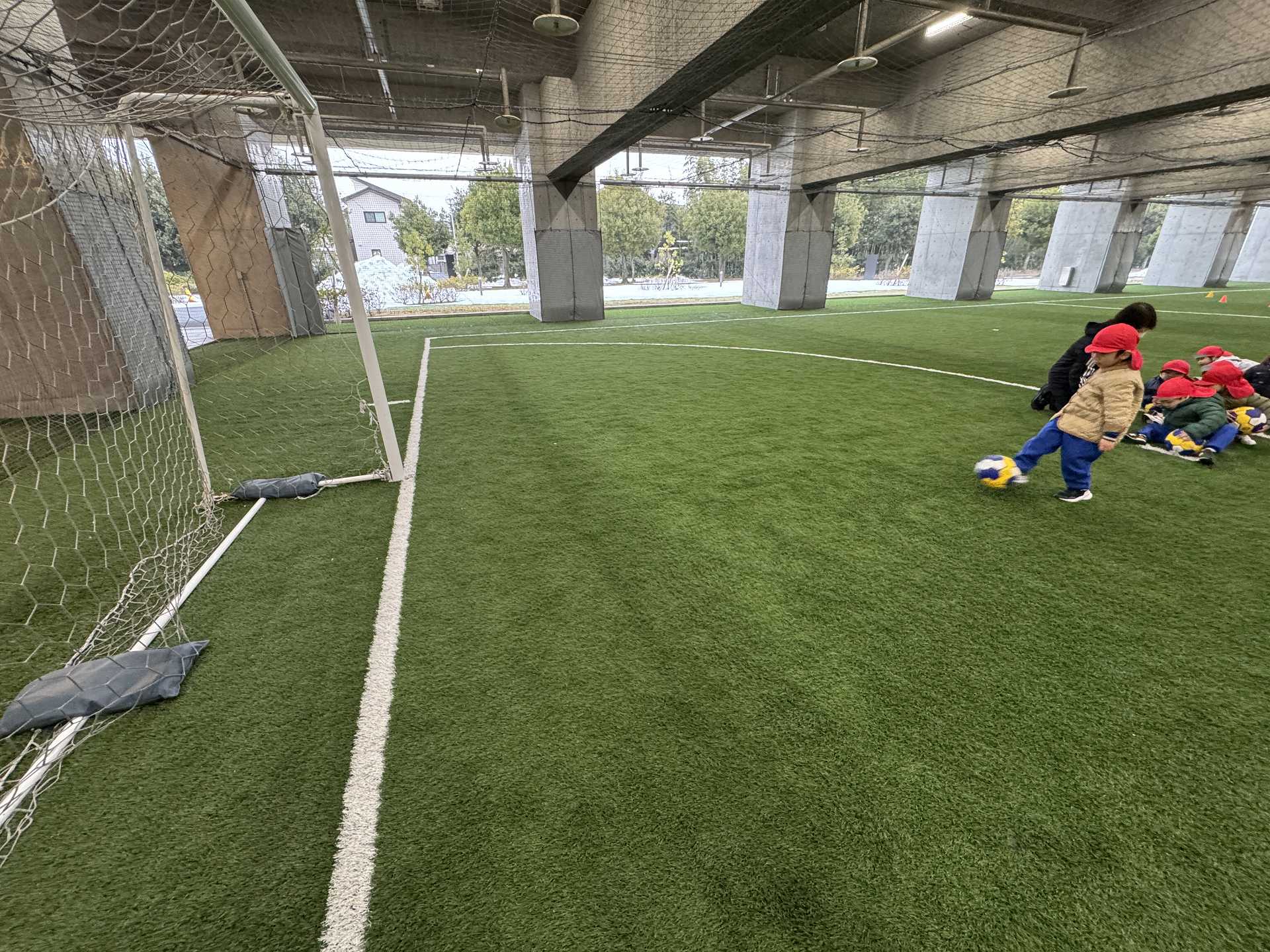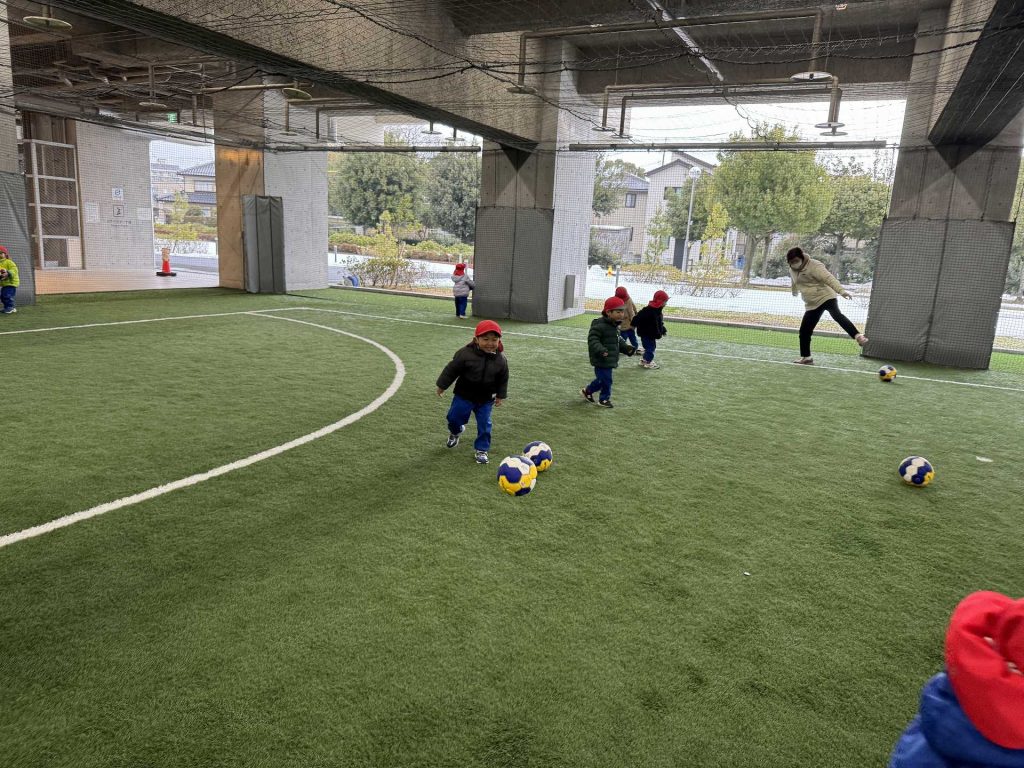 サッカーゴールにシュート!も挑戦しました!ゴールできると「やったー!」と嬉しそうな子ども達でした♪またフットサル場やいろいろなところにお出掛けしたいと思います!