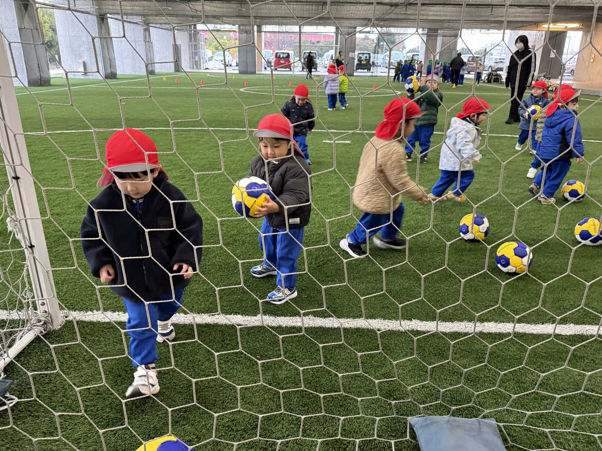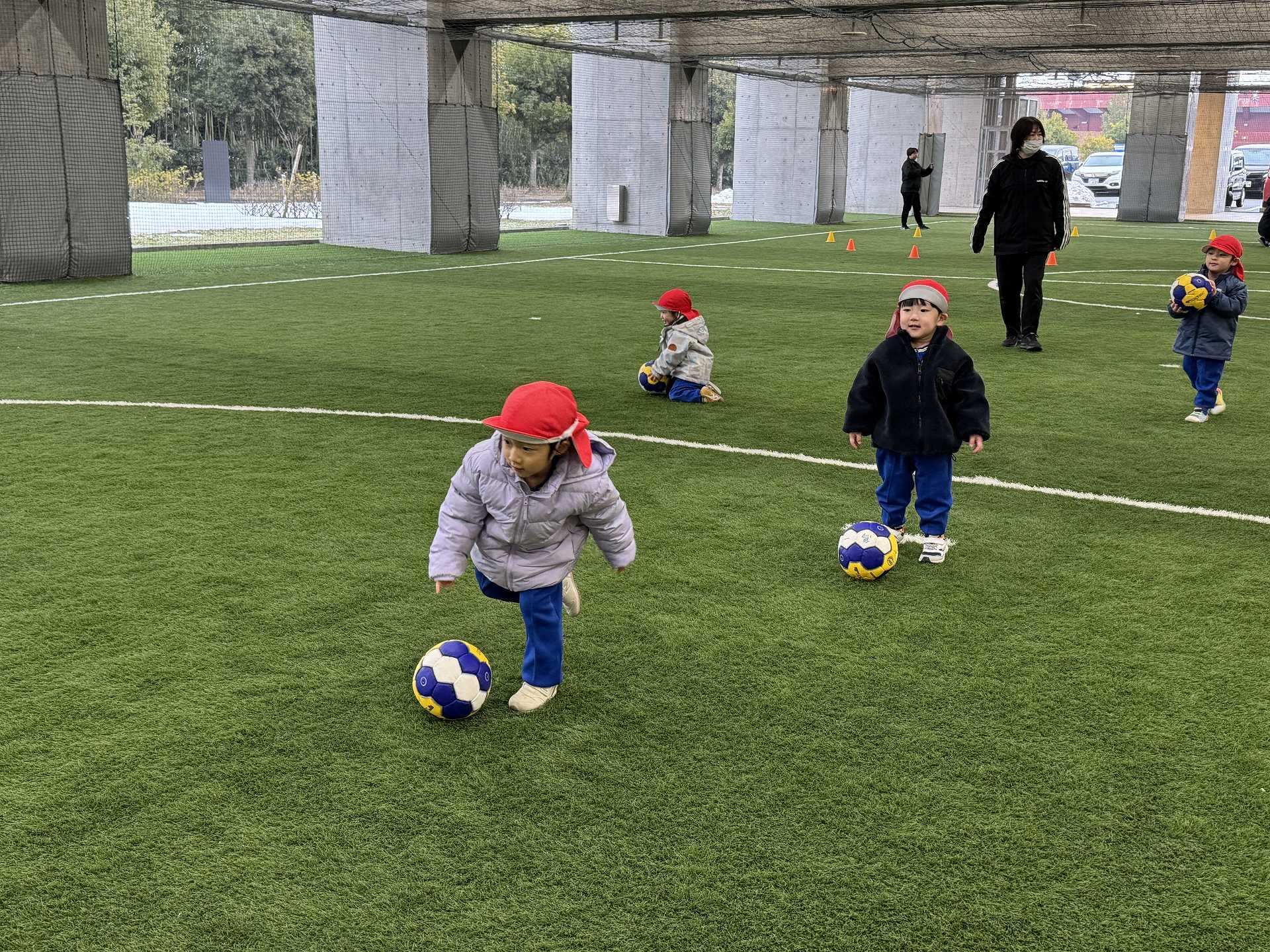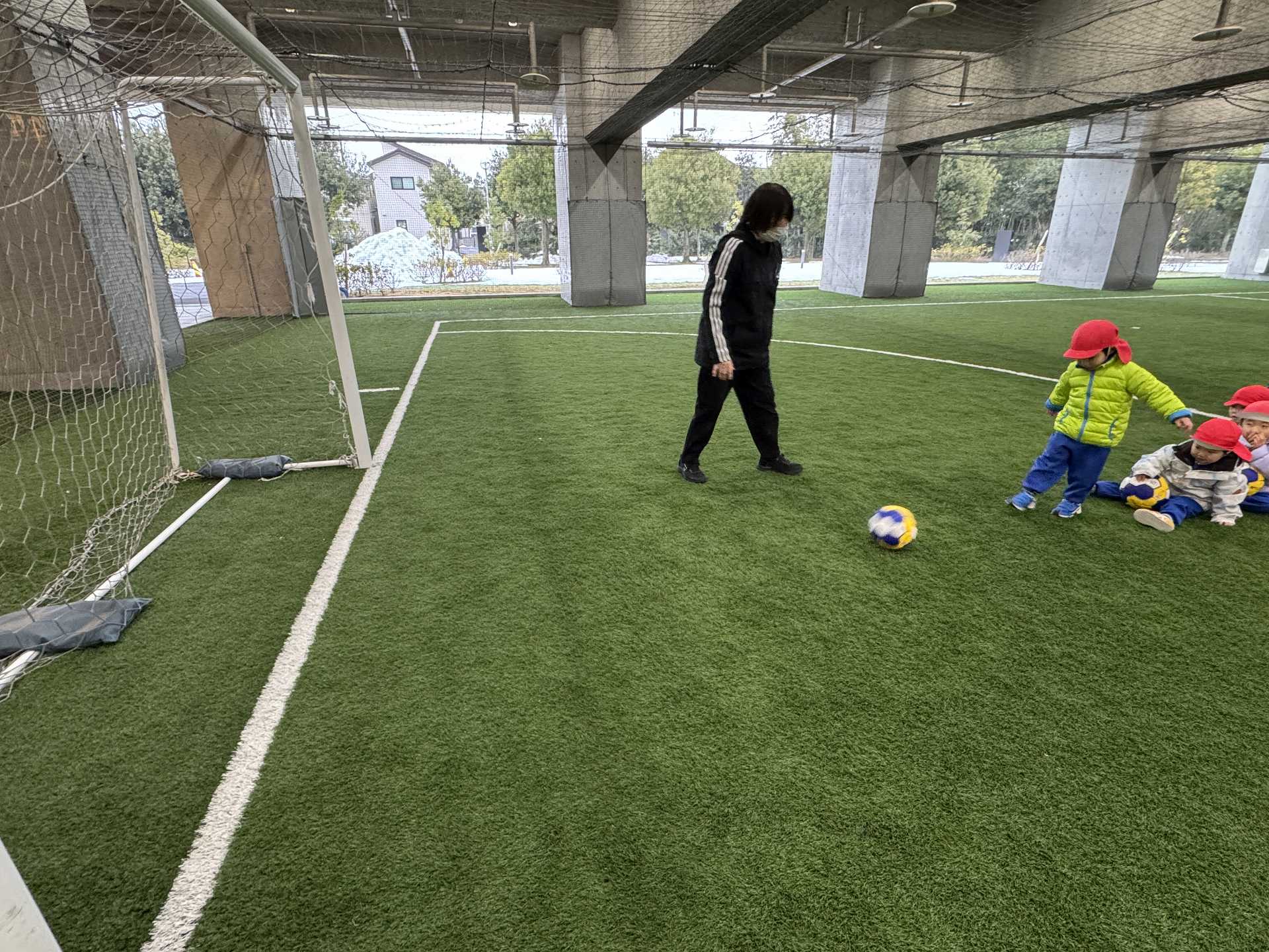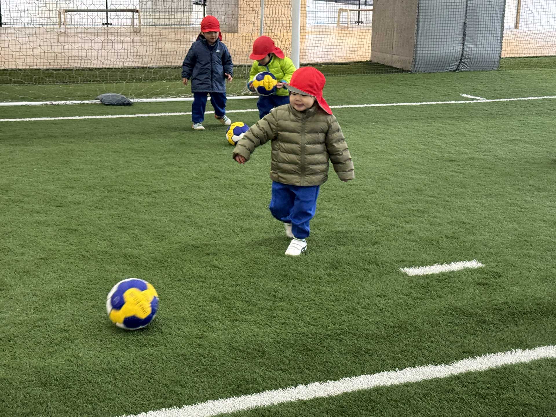 サッカーゴールにシュート!も挑戦しました!ゴールできると「やったー!」と嬉しそうな子ども達でした♪またフットサル場やいろいろなところにお出掛けしたいと思います!