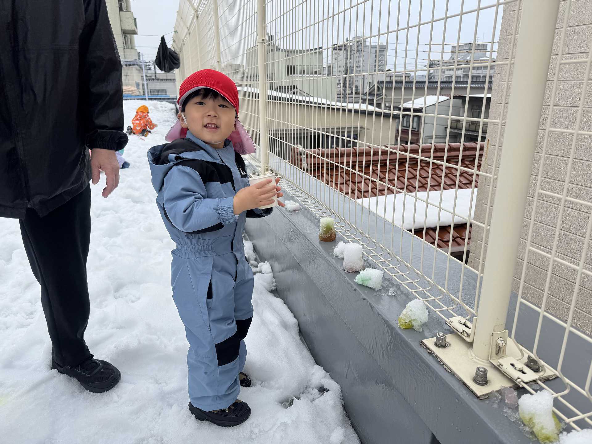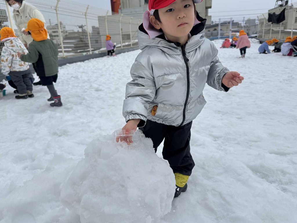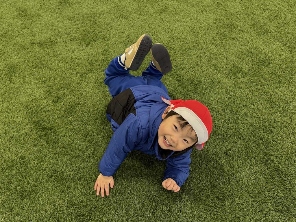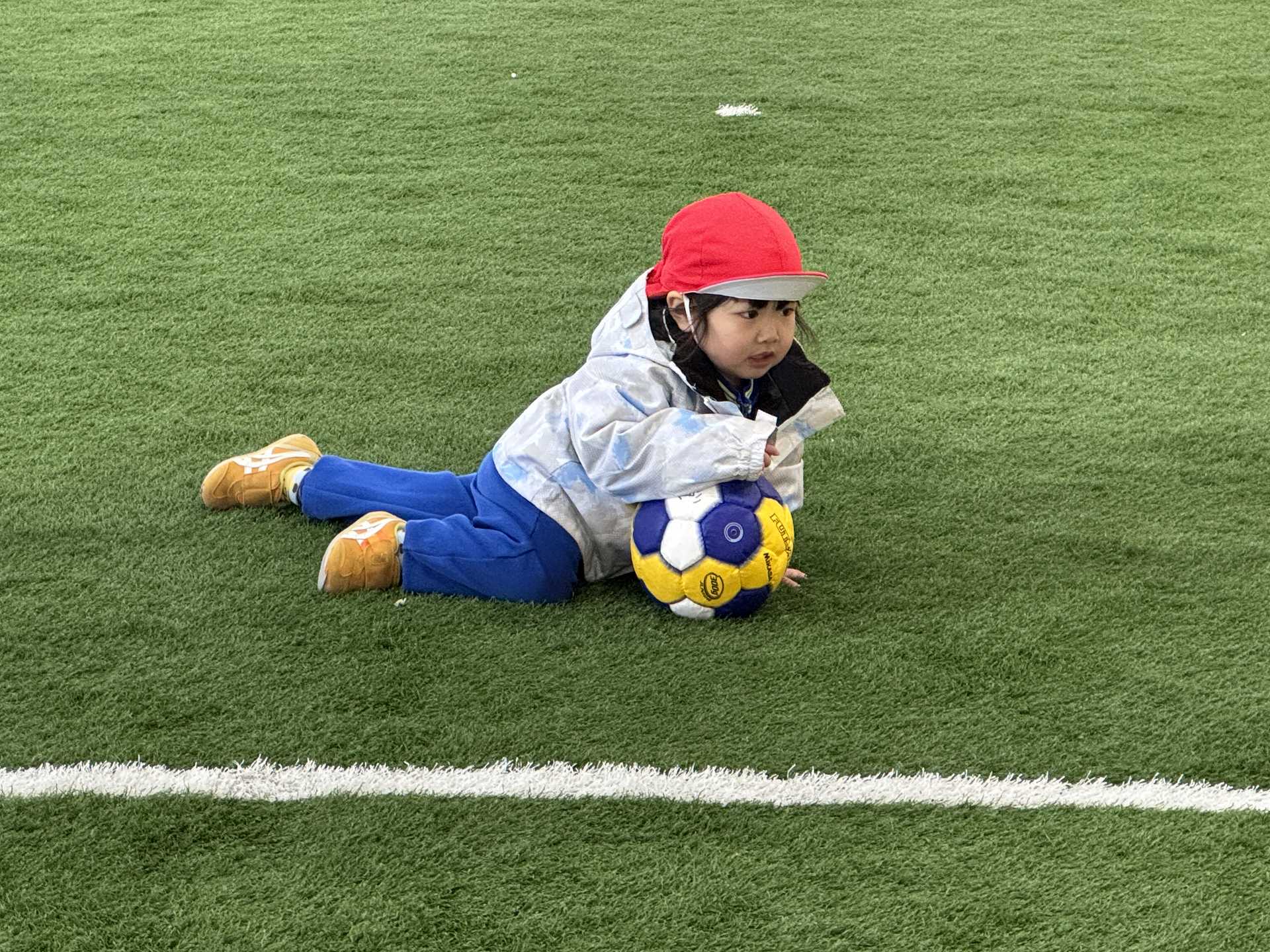 子ども達の楽しみにしていたボールを使って遊びました。ボールを蹴って追いかけて、投げて、ボールに座ってみたりと思い思いに遊びを楽しんでいました!