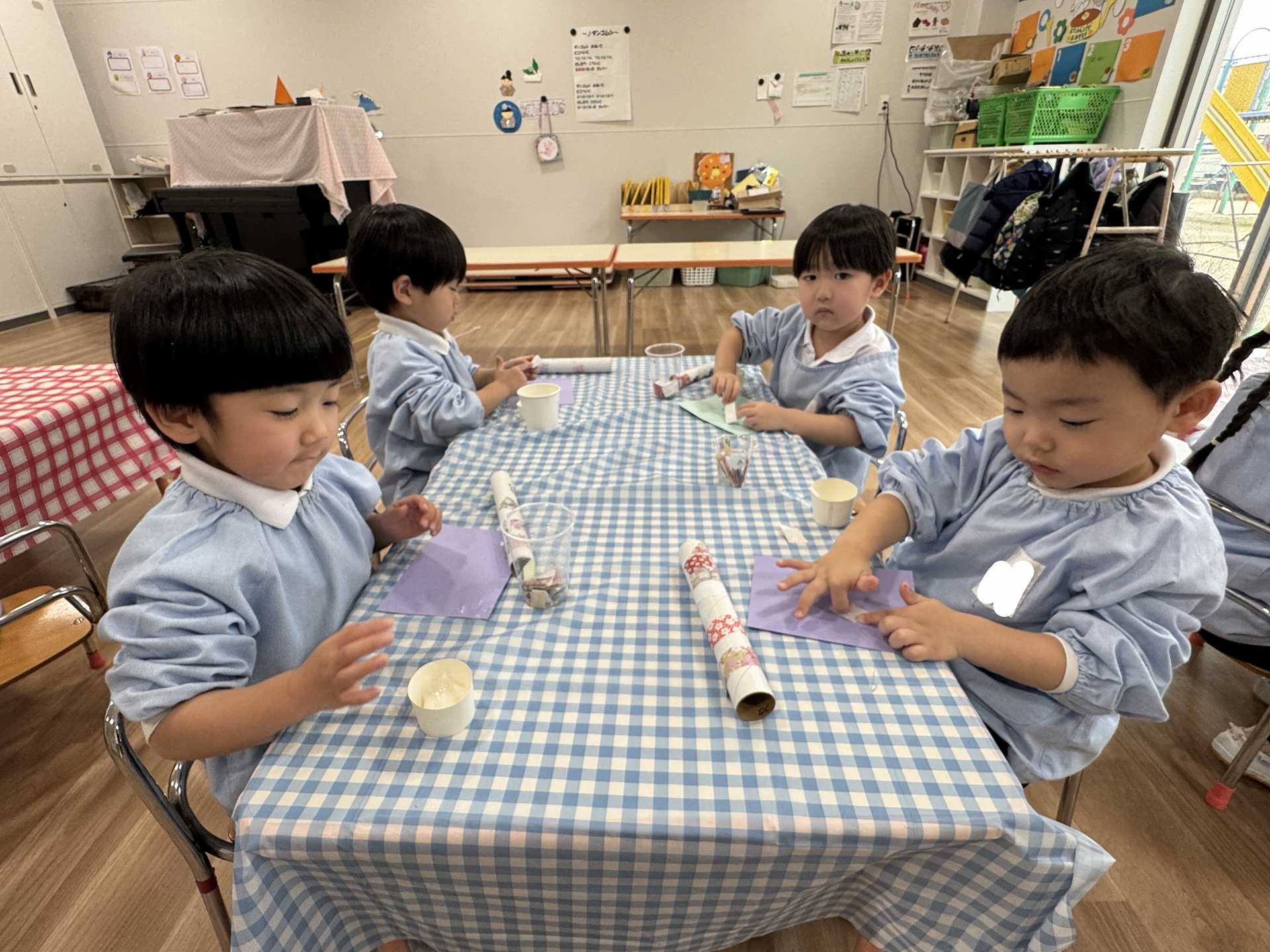 年長組さんがリレーする様子も気になり、かっこいい姿をジーっと見つめていました☆