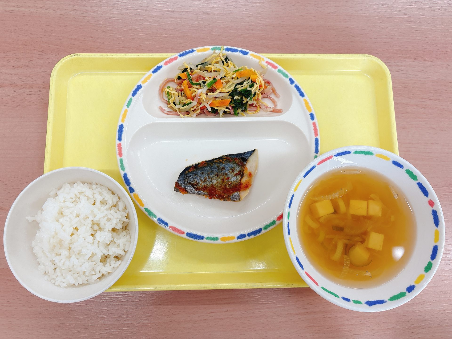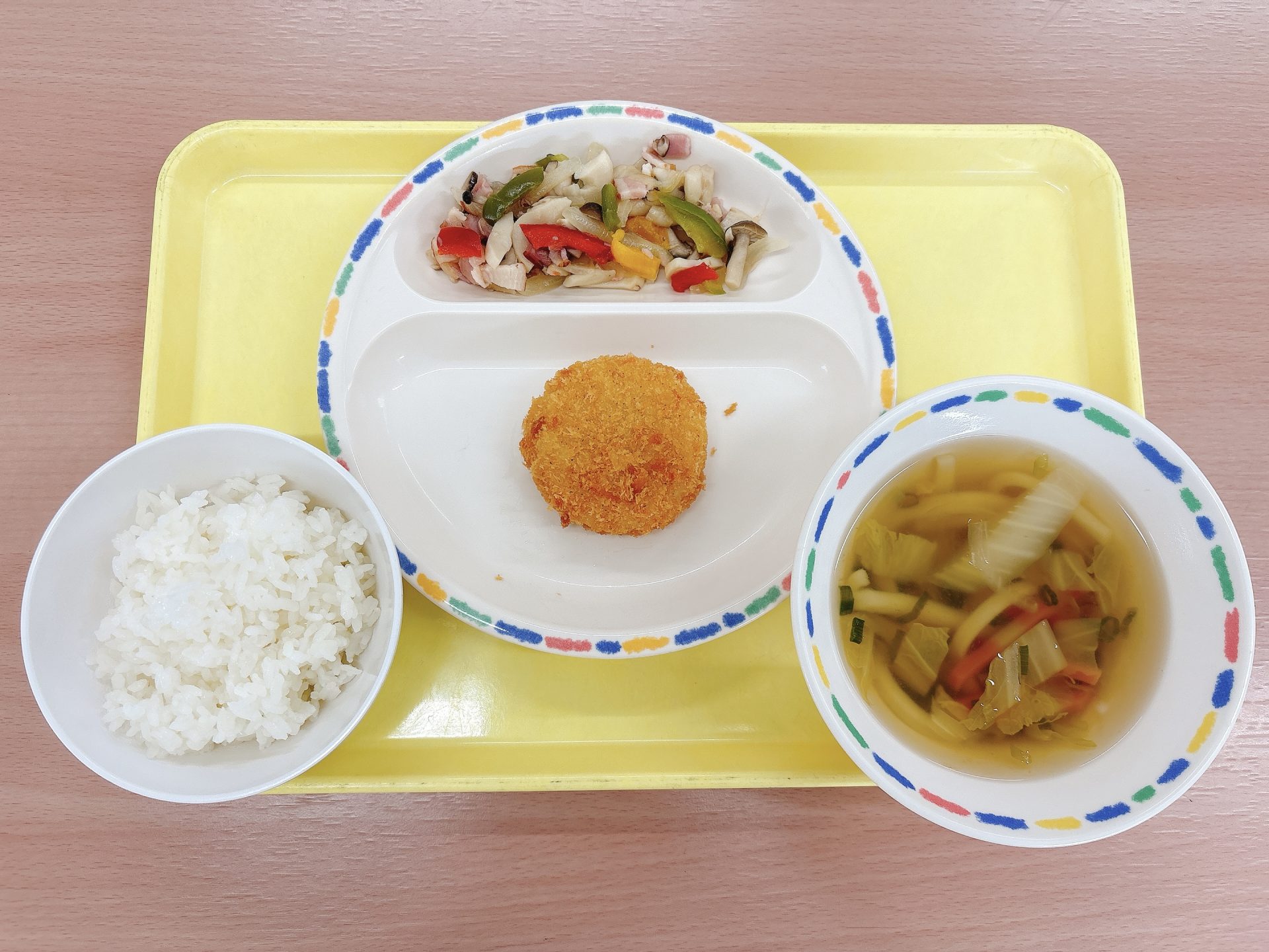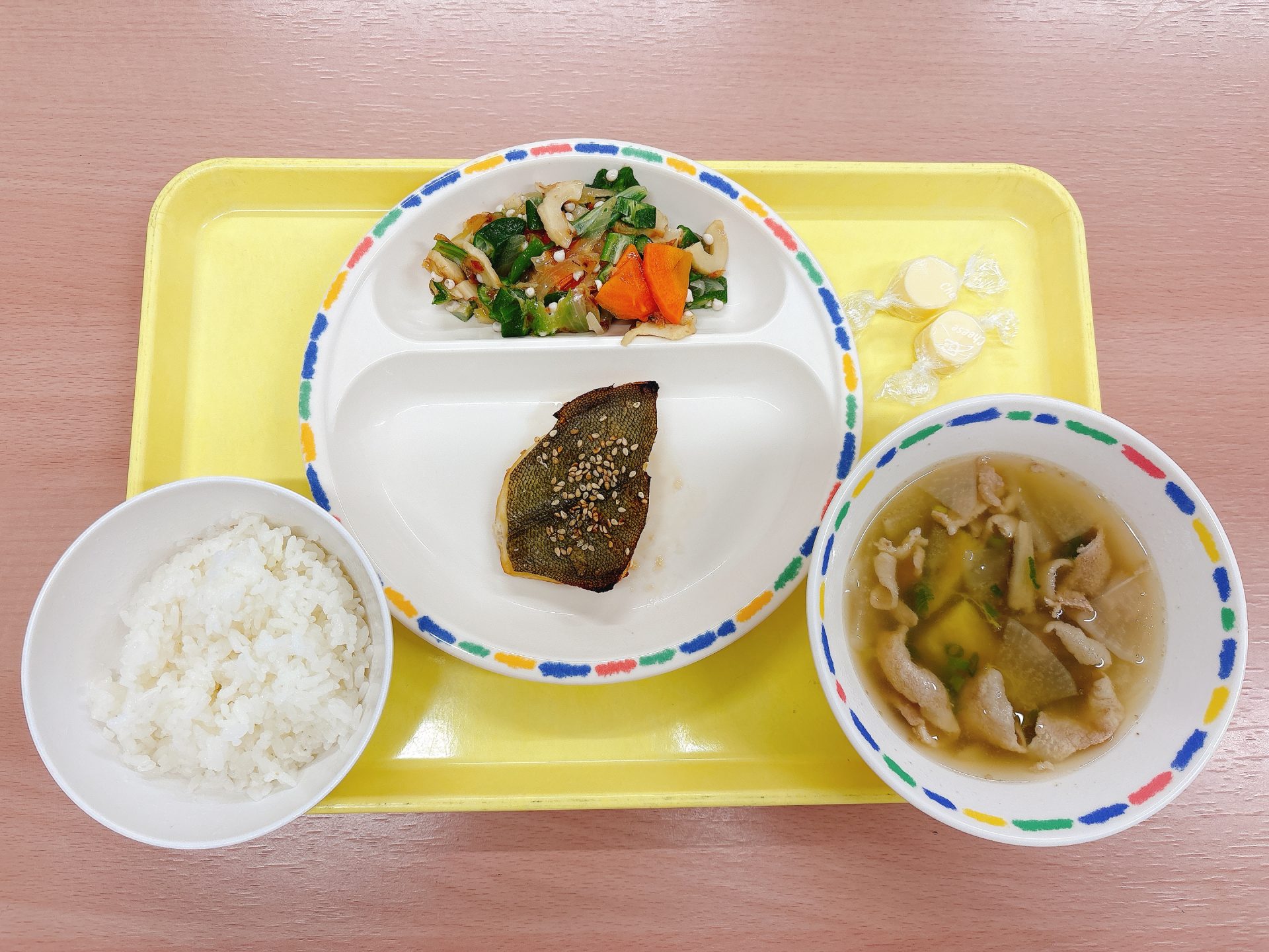 令和7年12月03日水曜日 本日の給食 ・プレーンパン・煮込みハンバーグ・みそミルクスープ・春雨サラダ・牛乳・チョコクレープ 3園リクエストメニュー:今日は3園さんリクエストのパン、煮込みハンバーグ、みそミルクスープ、春雨サラダ、クレープです🍫⭐️