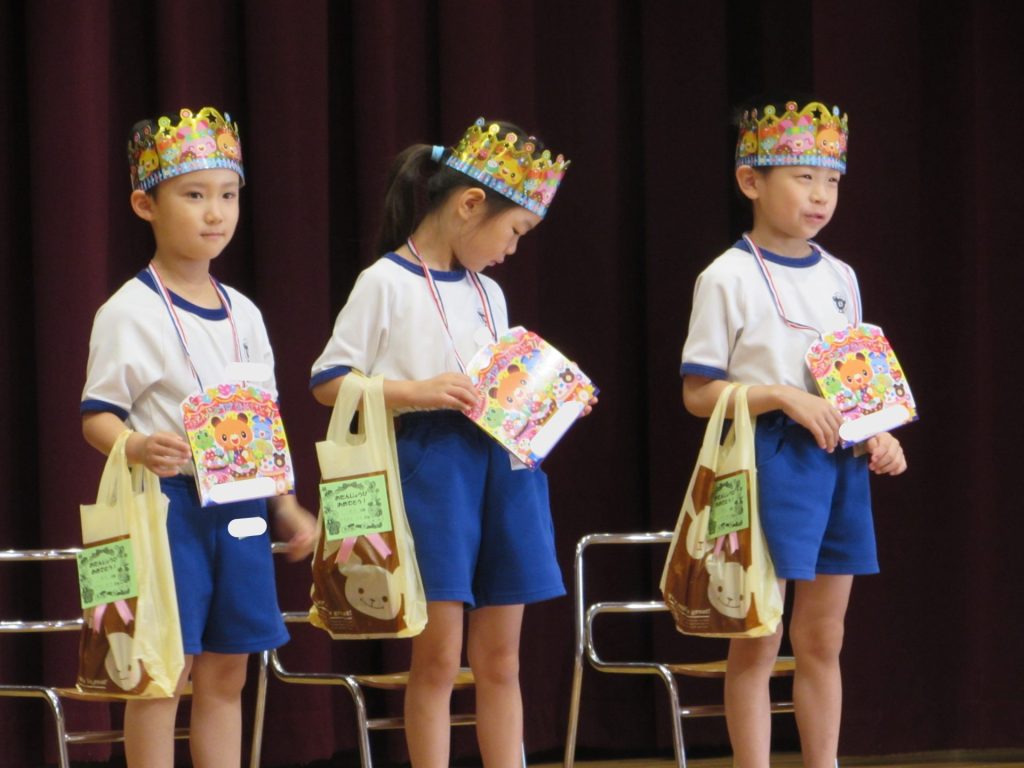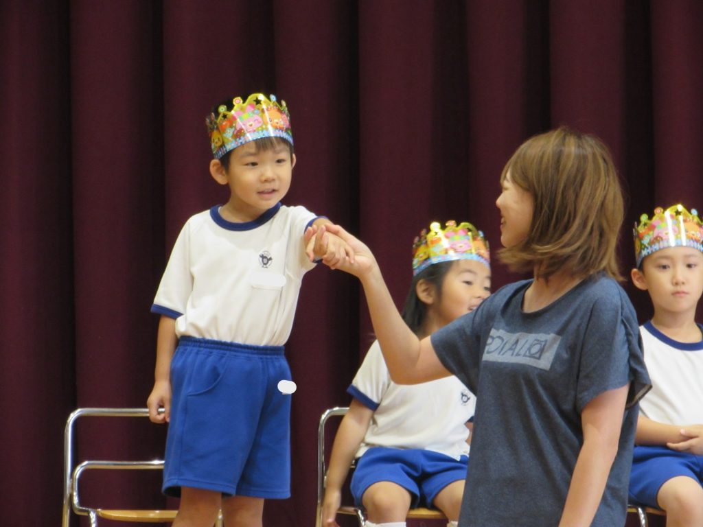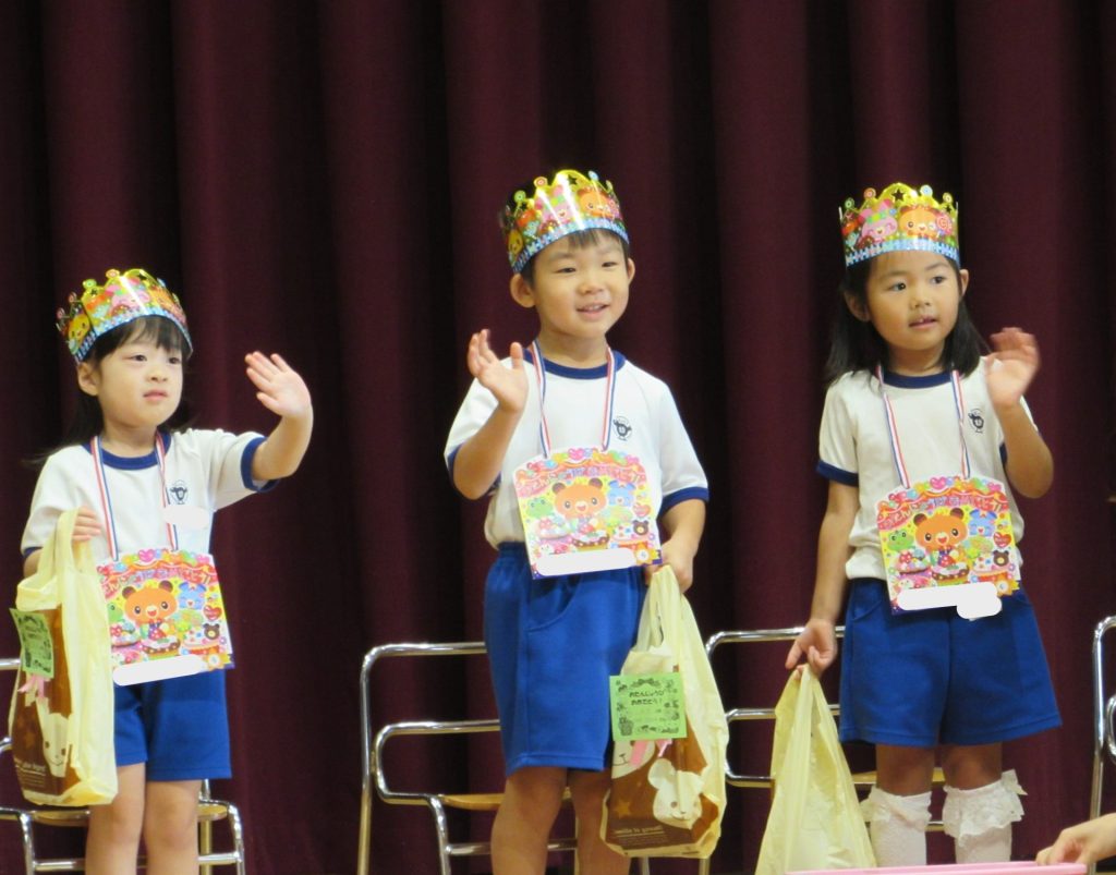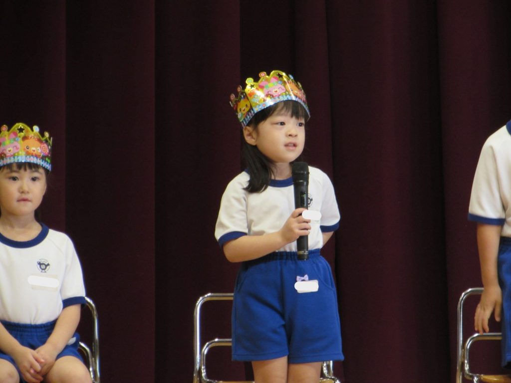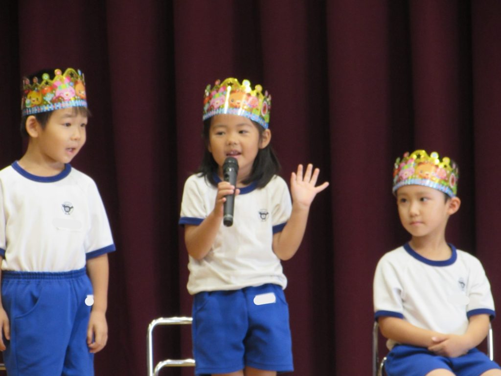 8月28日(木)に8月生まれのお友達の誕生会を行いました。夏の太陽のようにキラキラ輝く素敵なお友達の誕生日を、幼稚園のみんなでお祝いしました。しっかりと自己紹介をした後は、クラスの先生より素敵なところの紹介をしてもらいました。プレゼントを受け取った後は、幼稚園のみんなからの歌と言葉のプレゼントをもらって、楽しい嬉しいお誕生会となりました!8月生まれのお友達、おめでとうございます!