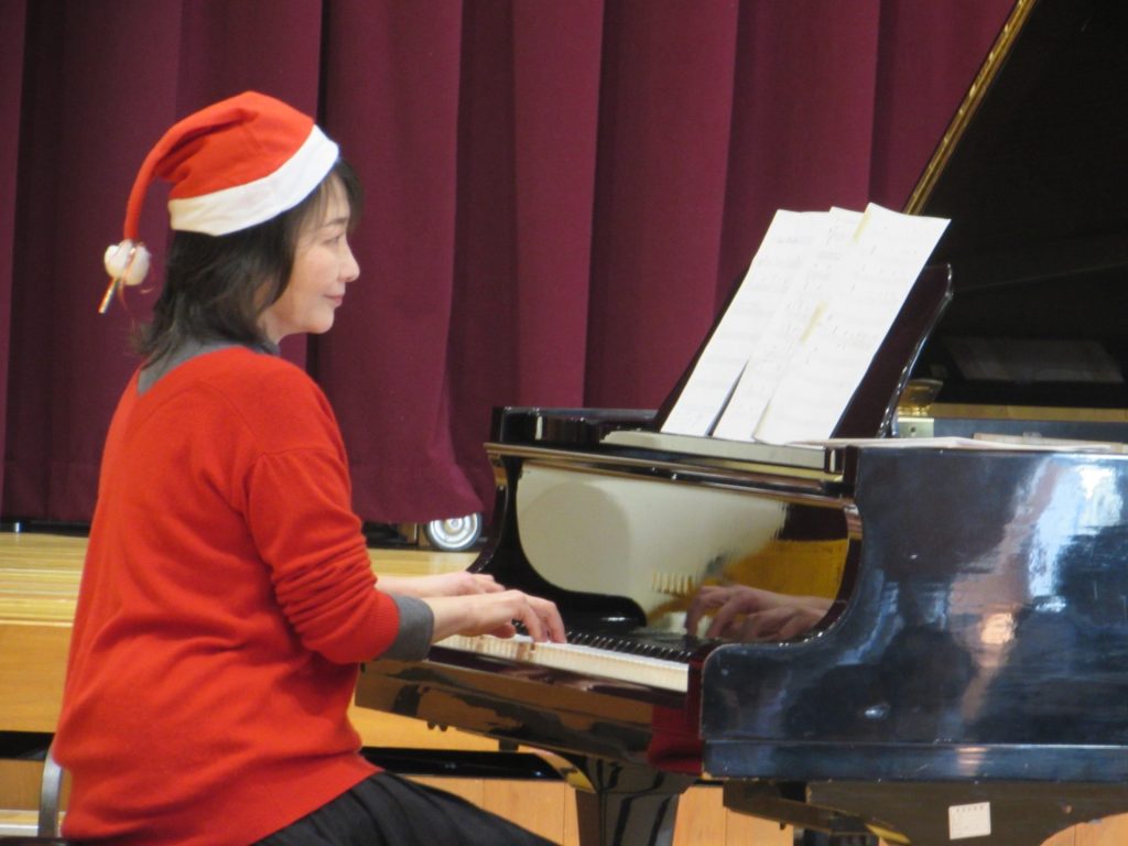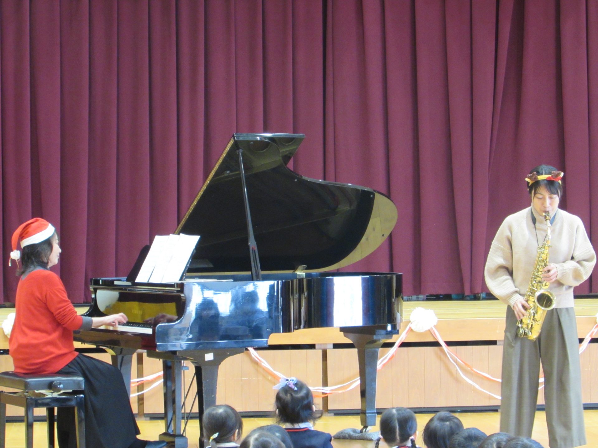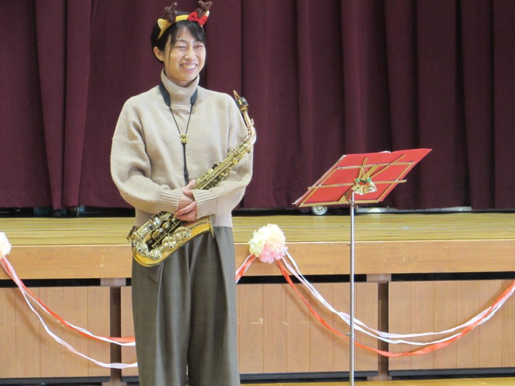 令和7年12月22日月曜日 ☆12月お誕生会・キラキラタイム☆ 18日(木)に12月うまれのお友達の誕生会を行いました。緊張しながらも、みんなが上手に自己紹介することができました!お誕生日おめでとうございます♪ 今月のきらきらタイムは、ピアノ演奏者の前田香那子先生と、アルトサックス演奏者の清末純子先生にゲストで来ていただきました!初めて間近で見るキラキラのアルトサックスに、子どもたちの目はキラキラしてました♪クリスマスの曲や、子どもたちが知っている曲がたくさんで、みんなとても楽しそうに歌ったり踊ったりしていました。