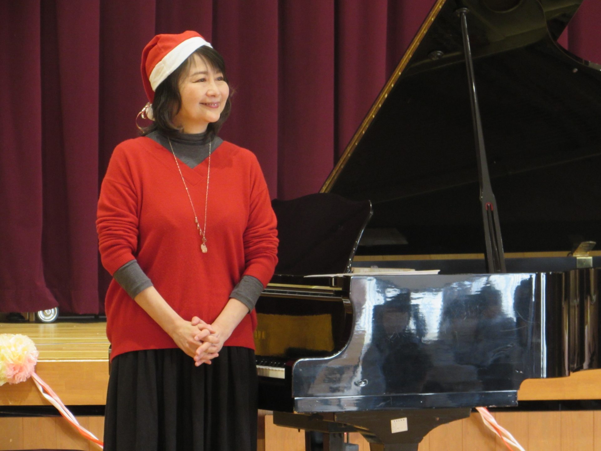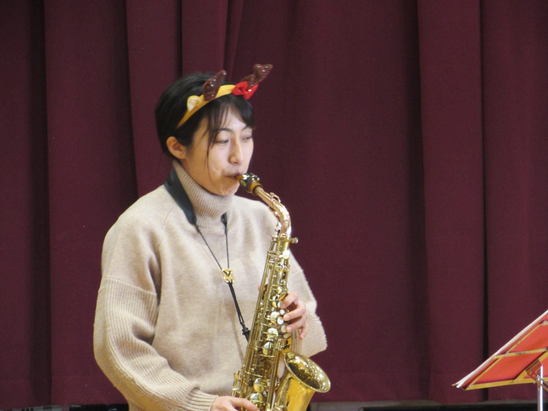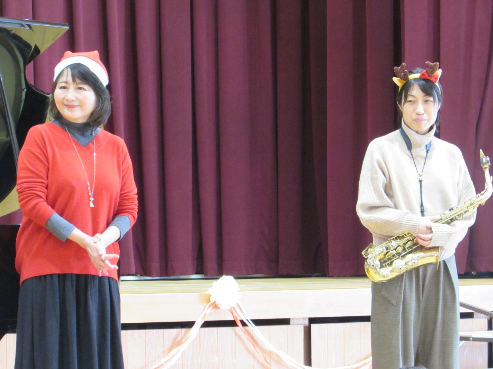 令和7年12月22日月曜日 ☆12月お誕生会・キラキラタイム☆ 18日(木)に12月うまれのお友達の誕生会を行いました。緊張しながらも、みんなが上手に自己紹介することができました!お誕生日おめでとうございます♪ 今月のきらきらタイムは、ピアノ演奏者の前田香那子先生と、アルトサックス演奏者の清末純子先生にゲストで来ていただきました!初めて間近で見るキラキラのアルトサックスに、子どもたちの目はキラキラしてました♪クリスマスの曲や、子どもたちが知っている曲がたくさんで、みんなとても楽しそうに歌ったり踊ったりしていました。