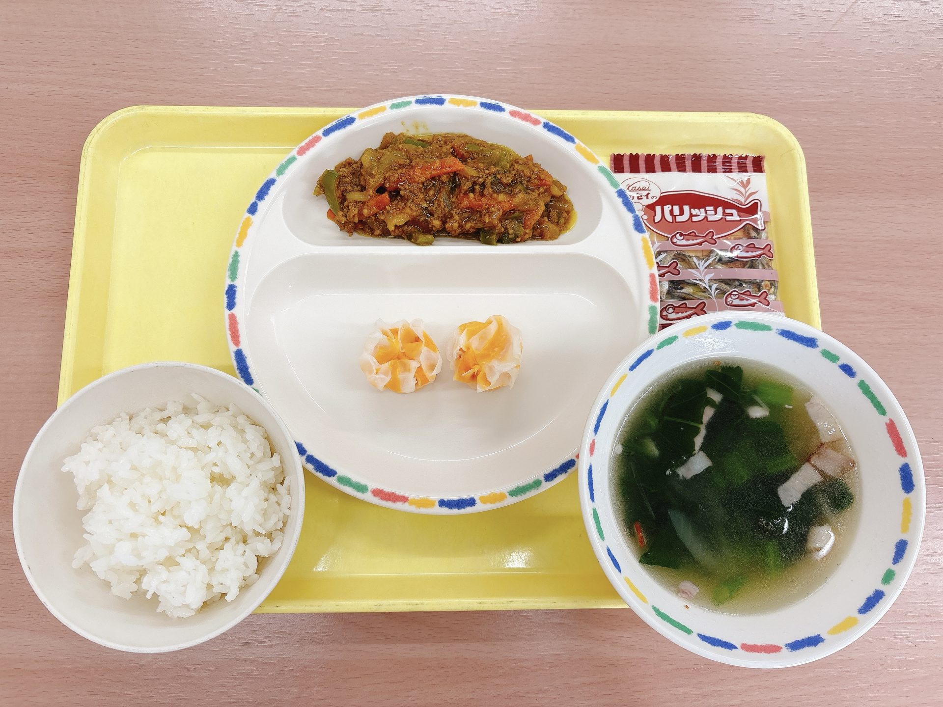 令和7年12月22日月曜日 本日の給食 ・ご飯・ぶりのしょうが煮・厚揚げのみそ汁・かぼちゃのそぼろ煮・チーズ 今日の鳥取県産食材:米、小松菜冬至メニュー:今日は冬至なので、かぼちゃを使ったメニューです🎃⛄️