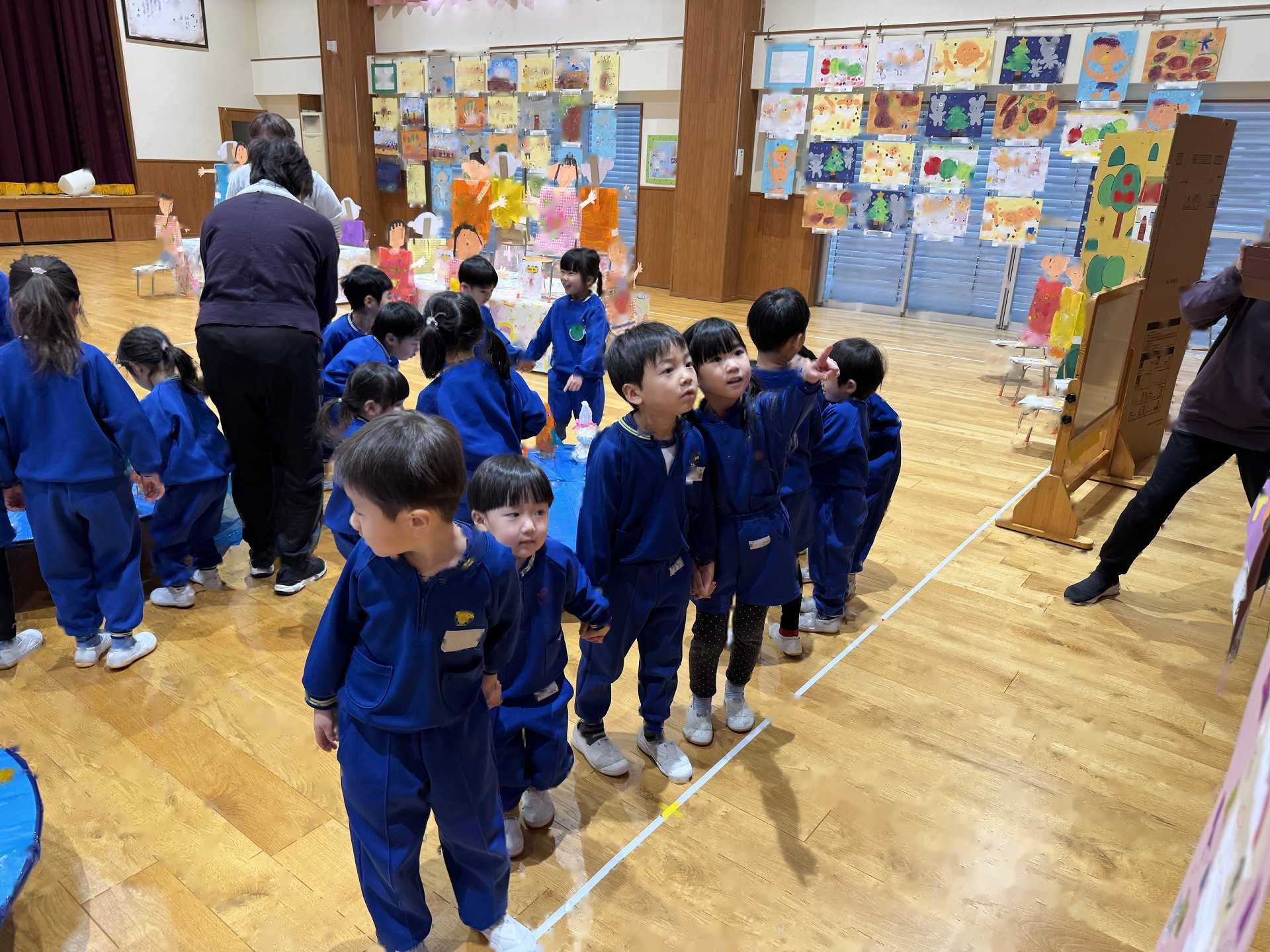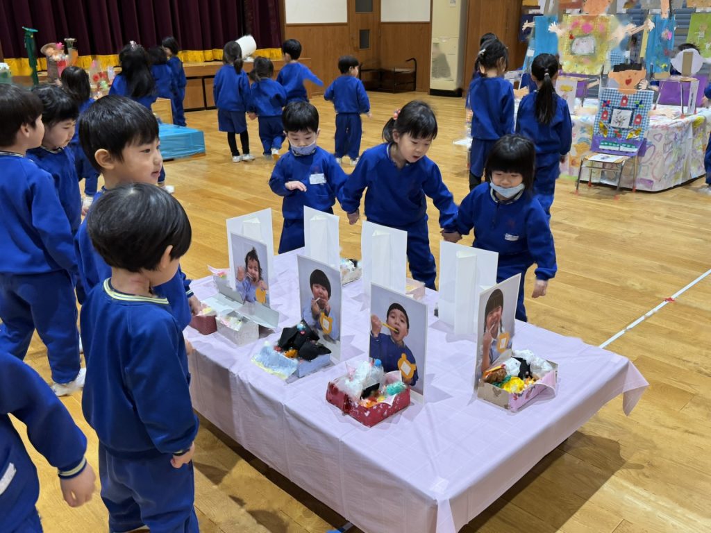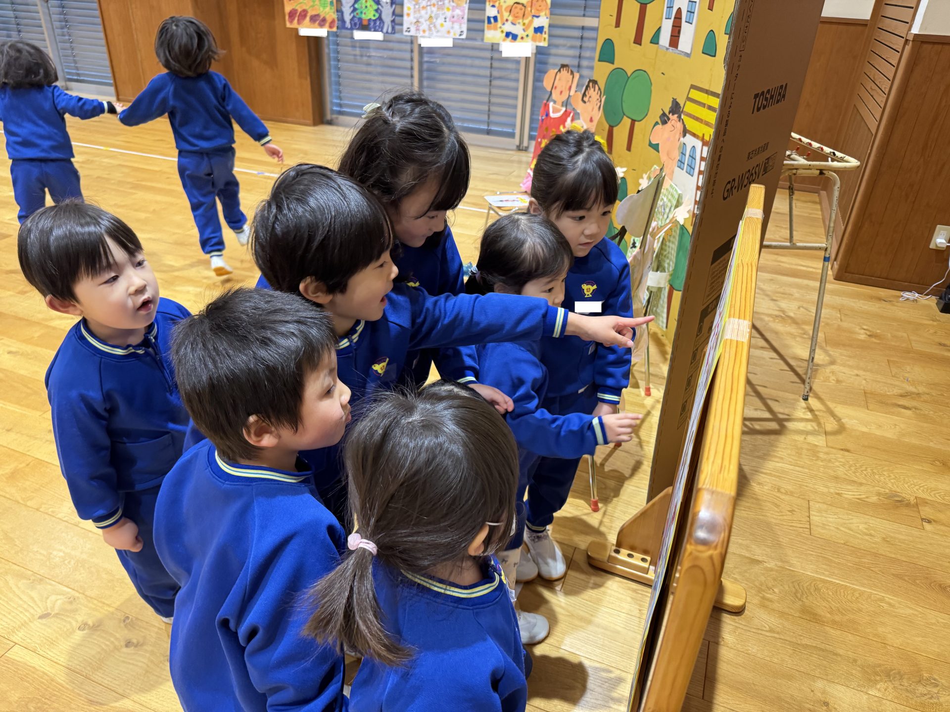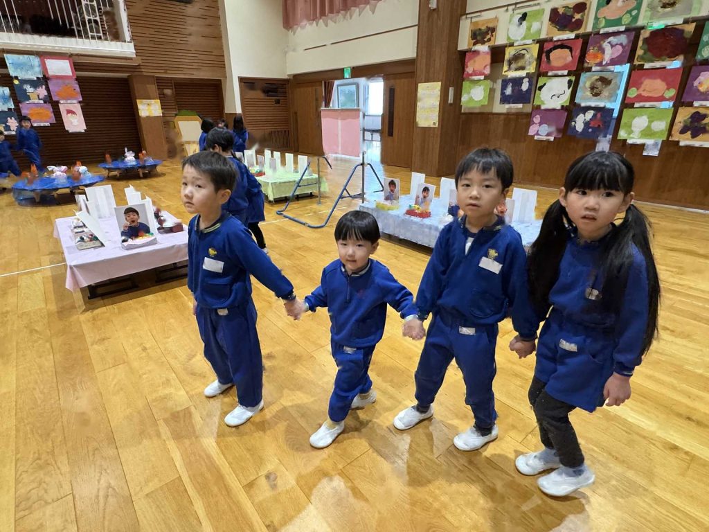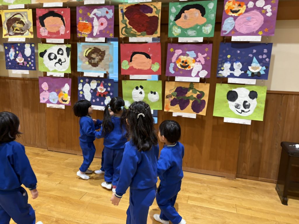 ☆絵画展☆ 今年も子ども達の可愛い作品や絵を飾り、絵画展を行いました!たくさんの方々が園へ見に来てくださり、子ども達にとっても喜びや励みになったことと思います。幼稚園ではフレンドデーを兼ねて、異年齢の友達と一緒に絵画展を見に行きました!【年長&2歳】【年中&年少】ペアでホールを回りました♪ ☆異年齢の友達と一緒に見学することで、幼稚園のいろんな友達の頑張っているとこや素敵なところを見合うことができる機会となりました!みんなの作品、素晴らしかったよ☆