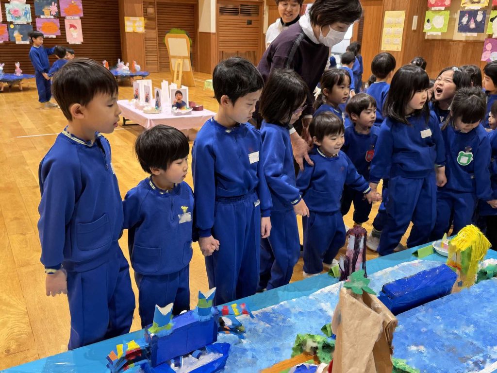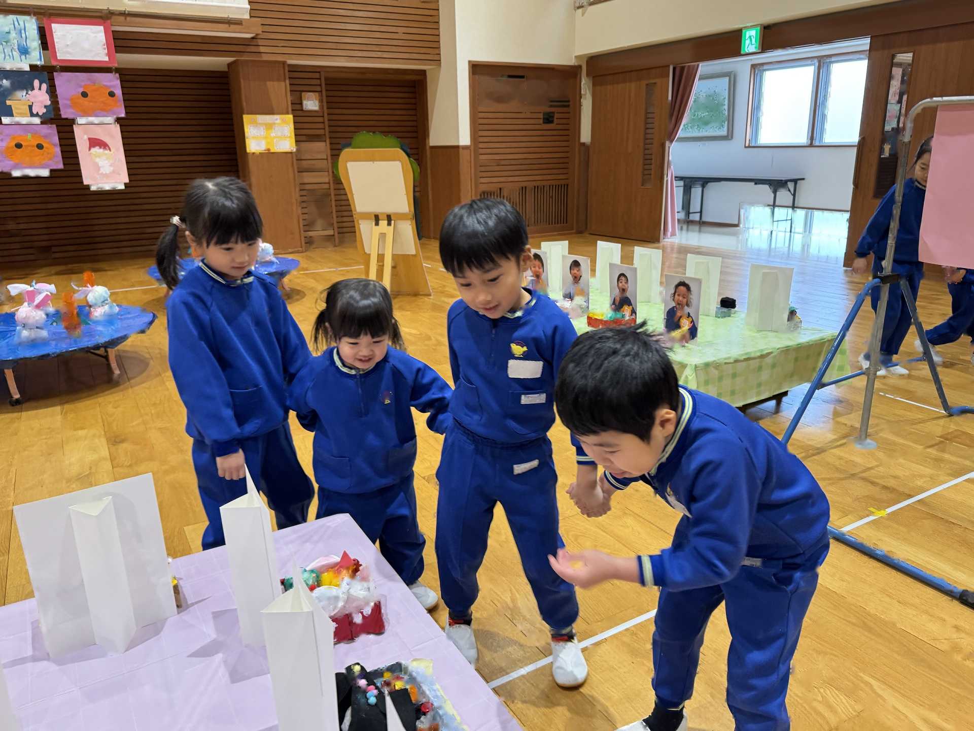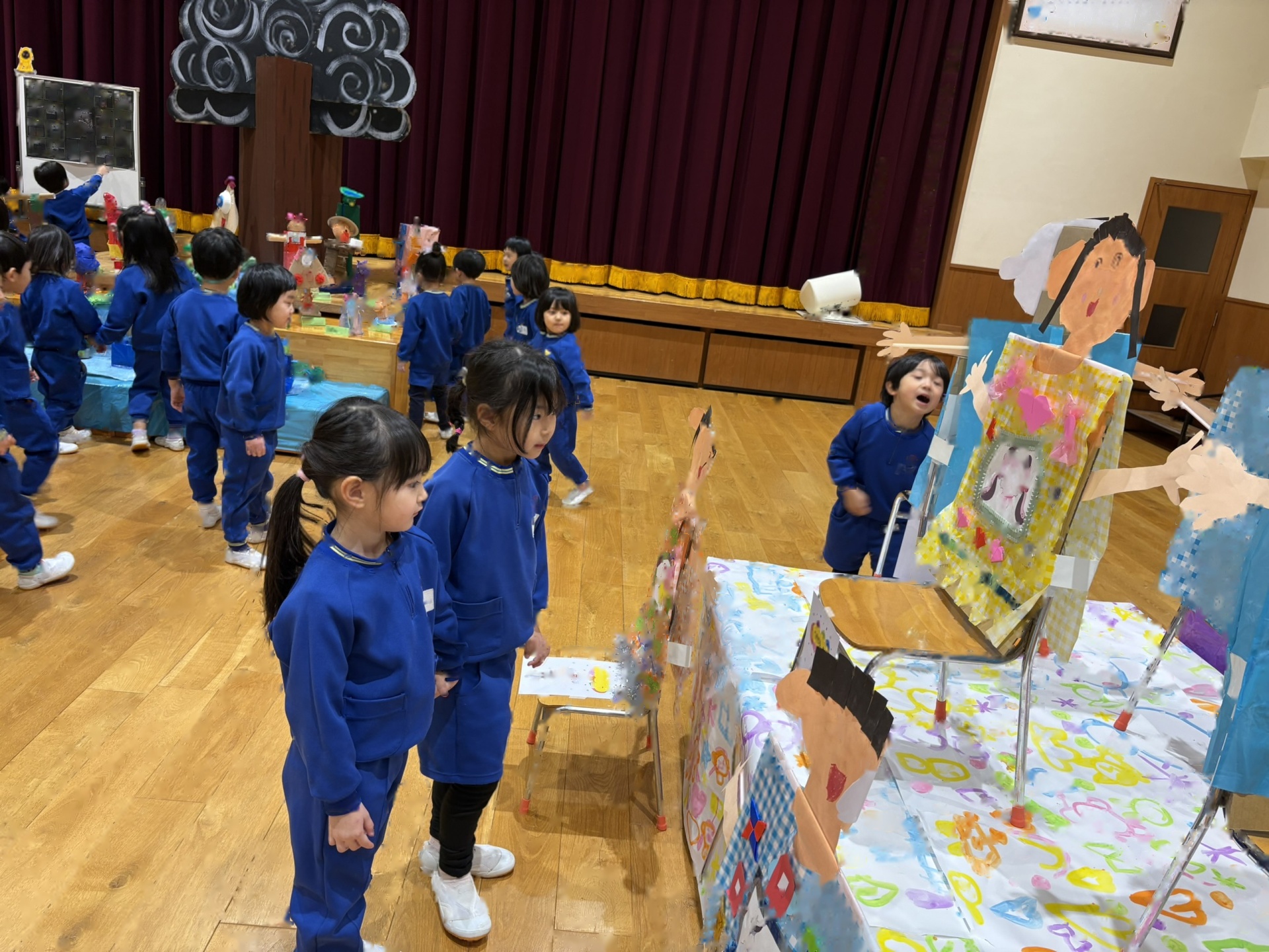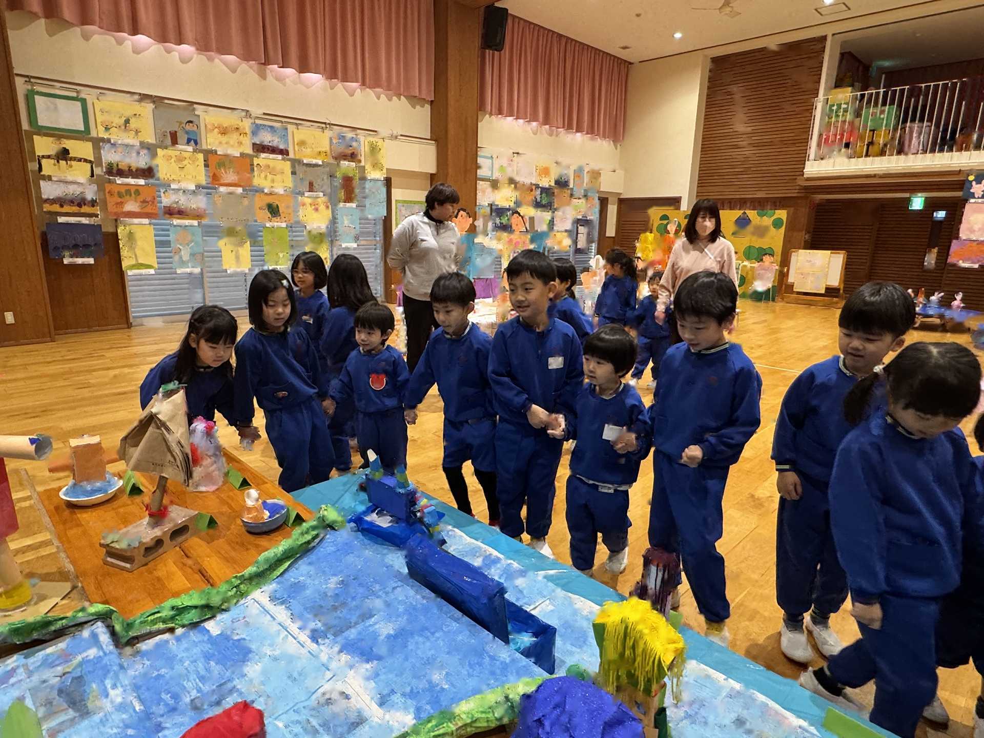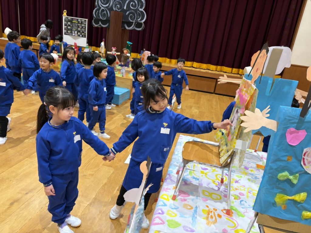 ☆絵画展☆ 今年も子ども達の可愛い作品や絵を飾り、絵画展を行いました!たくさんの方々が園へ見に来てくださり、子ども達にとっても喜びや励みになったことと思います。幼稚園ではフレンドデーを兼ねて、異年齢の友達と一緒に絵画展を見に行きました!【年長&2歳】【年中&年少】ペアでホールを回りました♪ ☆異年齢の友達と一緒に見学することで、幼稚園のいろんな友達の頑張っているとこや素敵なところを見合うことができる機会となりました!みんなの作品、素晴らしかったよ☆