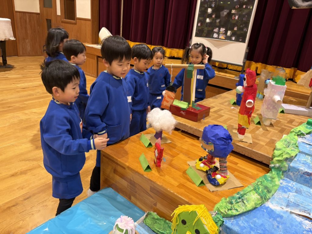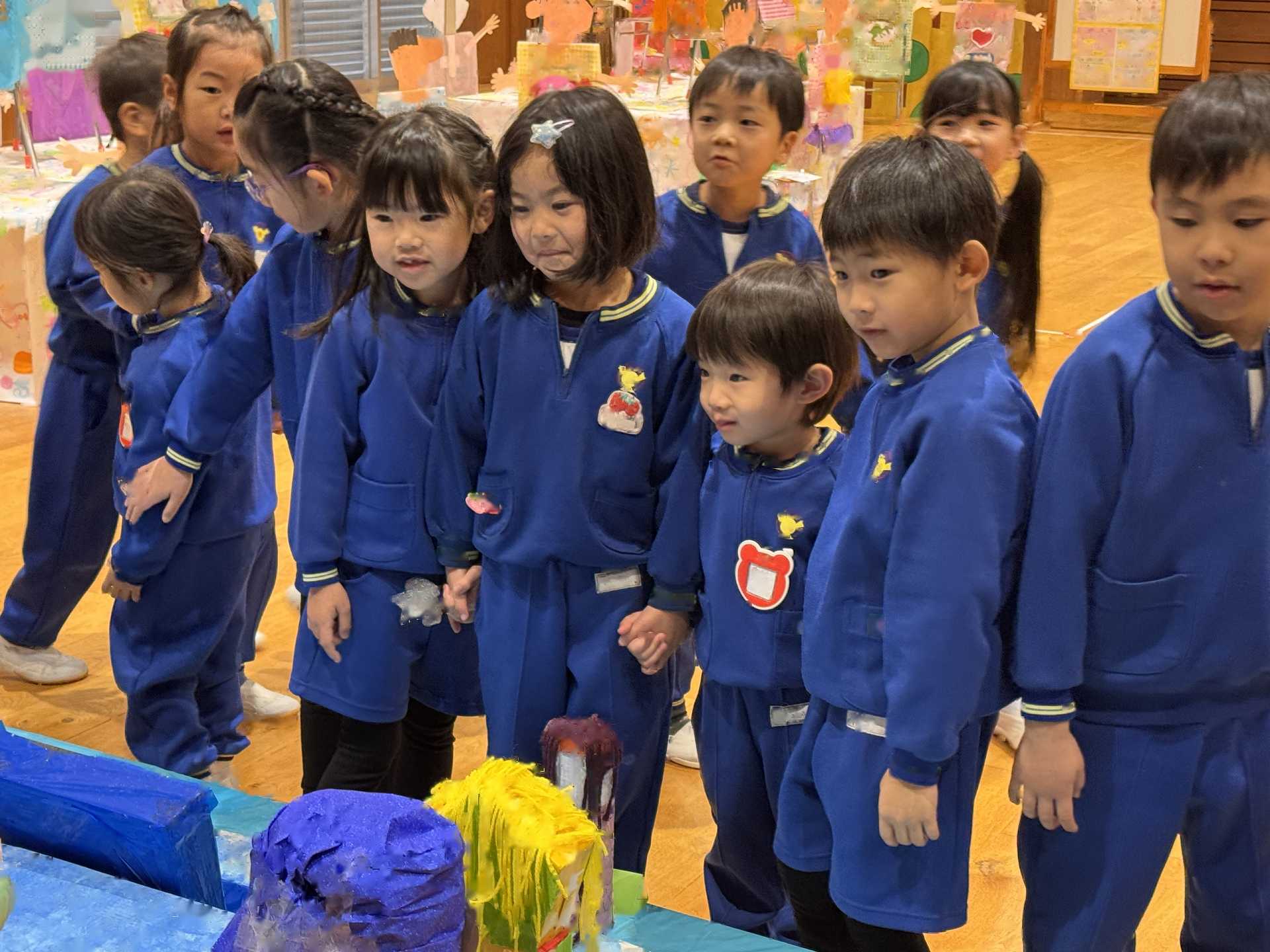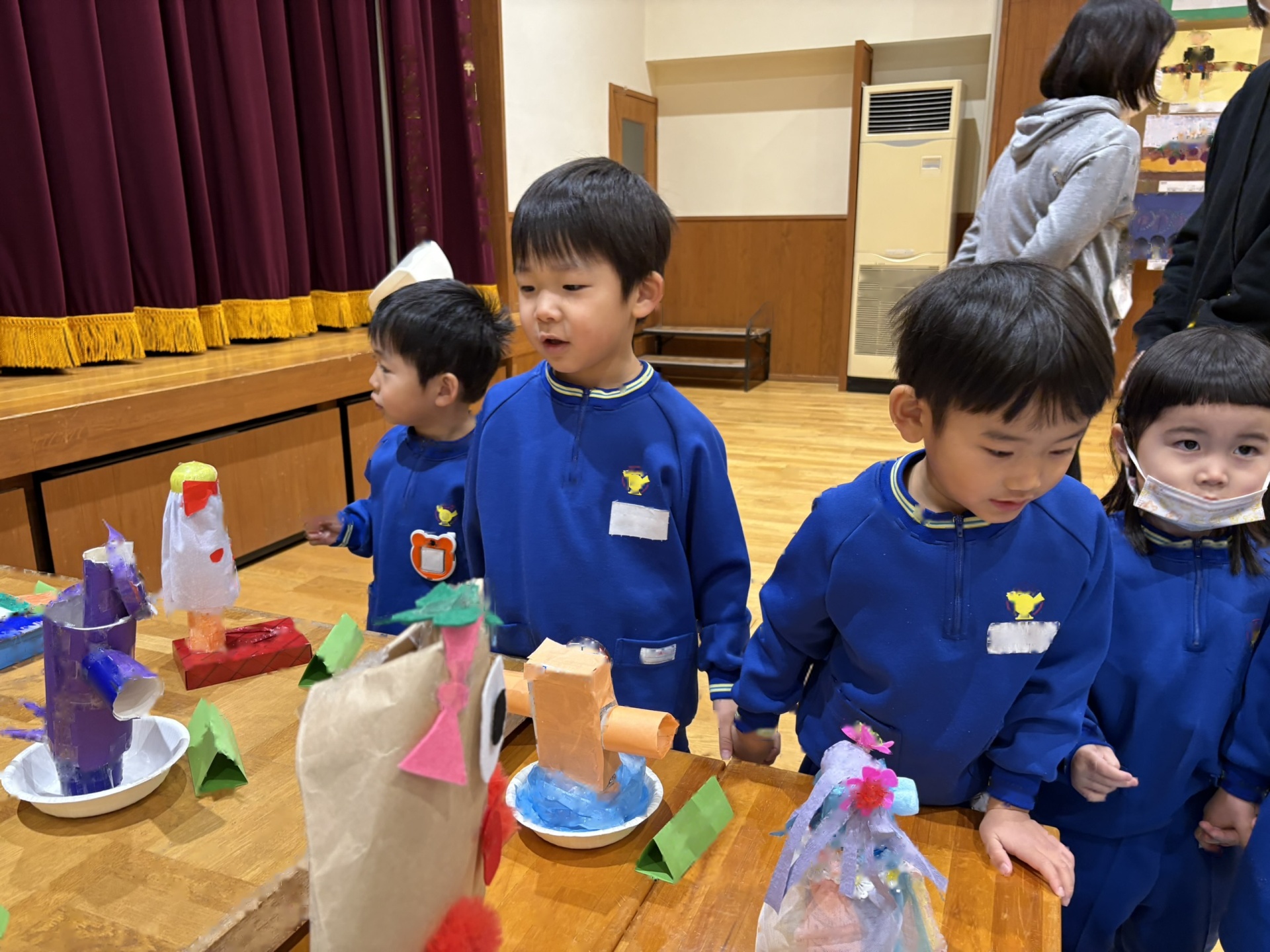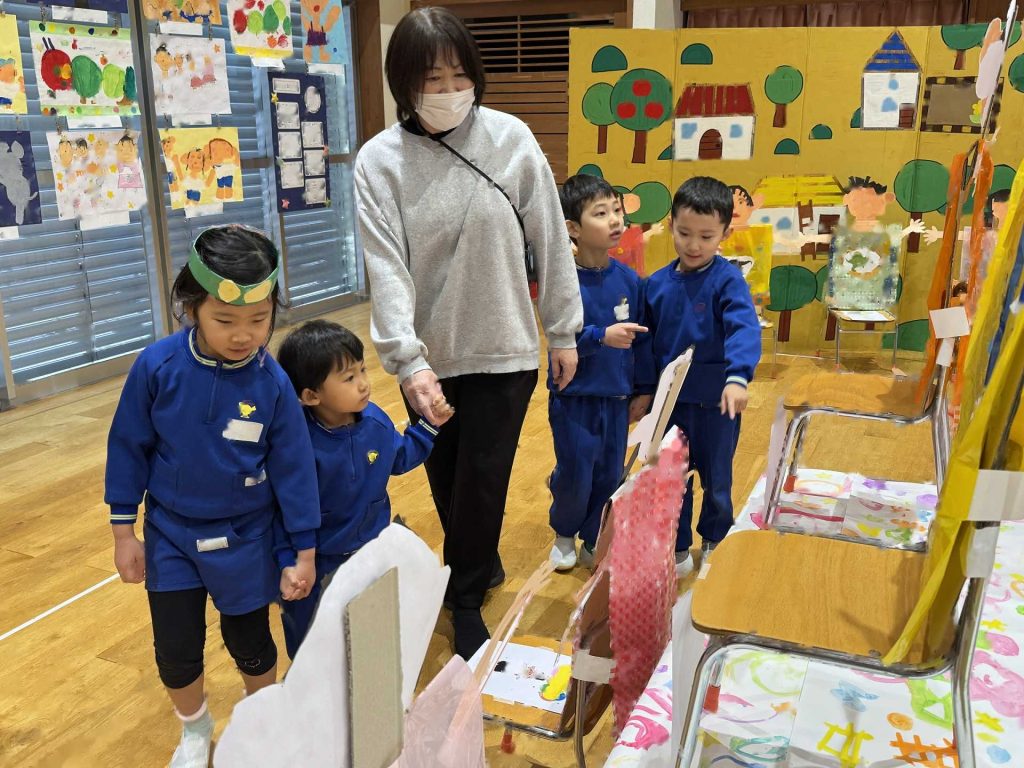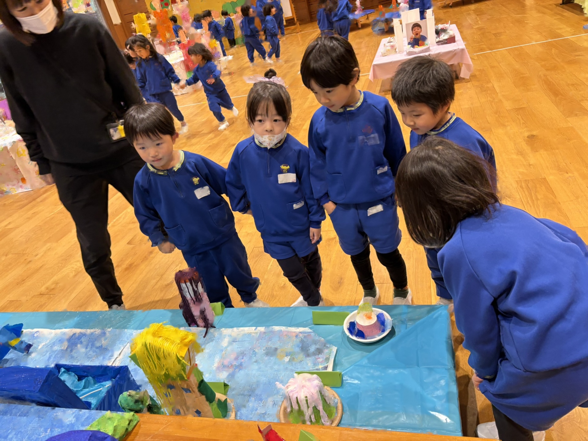 ☆絵画展☆ 今年も子ども達の可愛い作品や絵を飾り、絵画展を行いました!たくさんの方々が園へ見に来てくださり、子ども達にとっても喜びや励みになったことと思います。幼稚園ではフレンドデーを兼ねて、異年齢の友達と一緒に絵画展を見に行きました!【年長&2歳】【年中&年少】ペアでホールを回りました♪ ☆異年齢の友達と一緒に見学することで、幼稚園のいろんな友達の頑張っているとこや素敵なところを見合うことができる機会となりました!みんなの作品、素晴らしかったよ☆