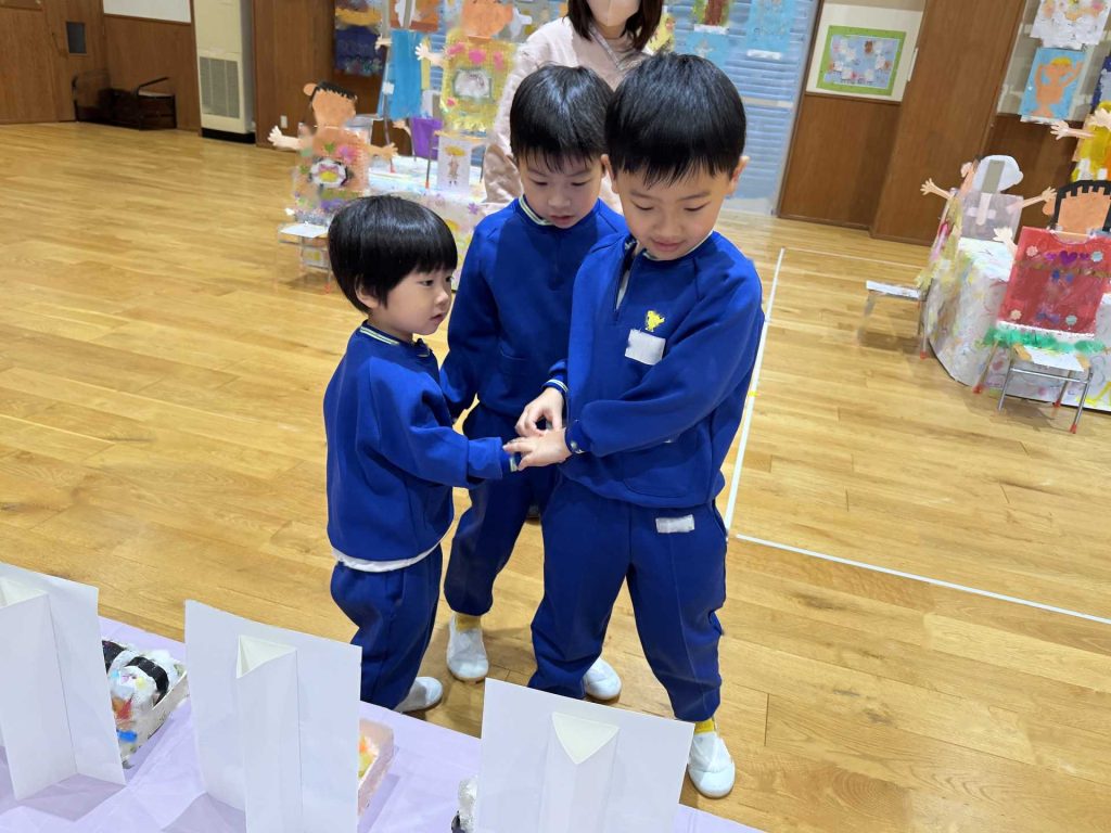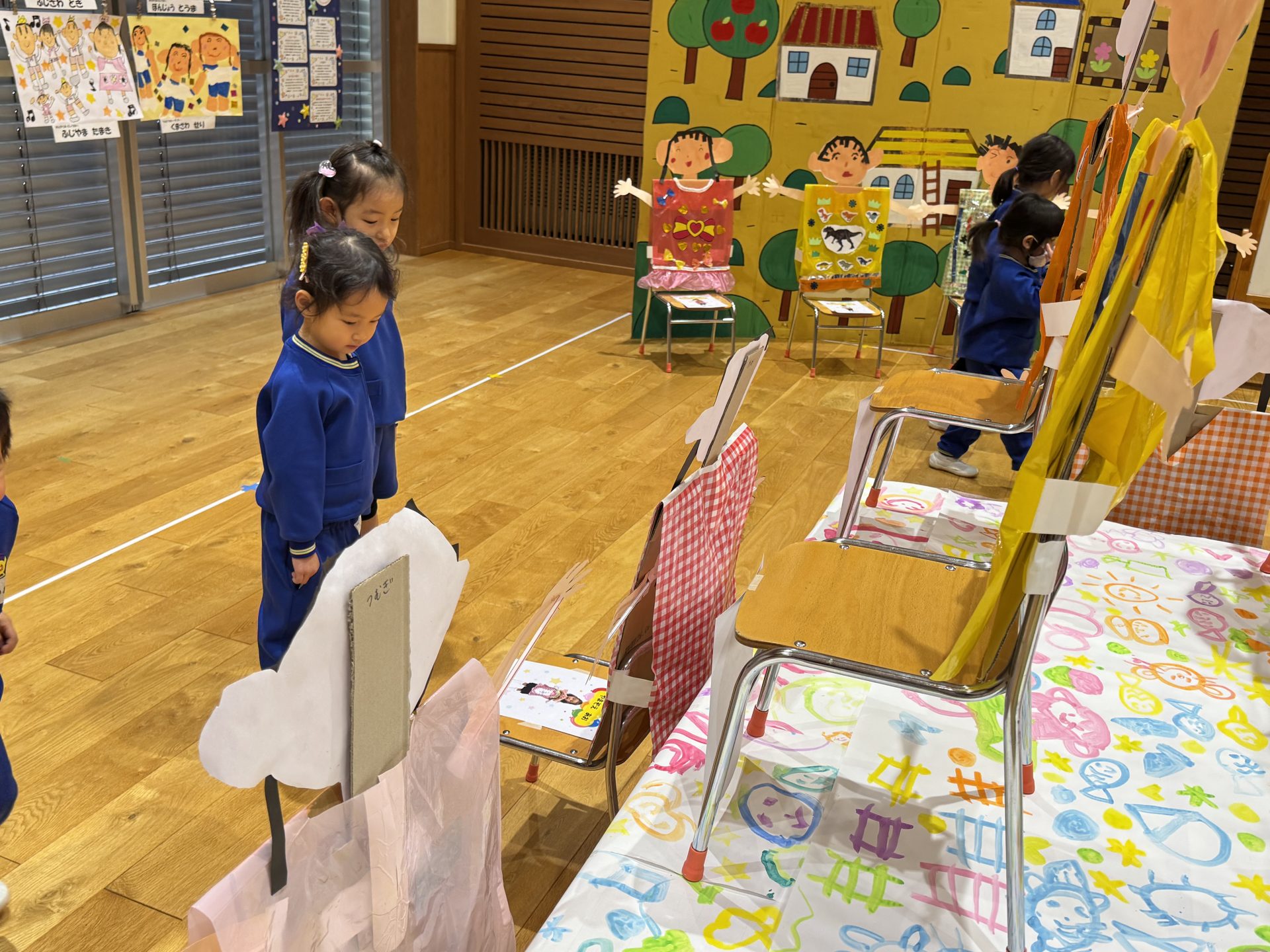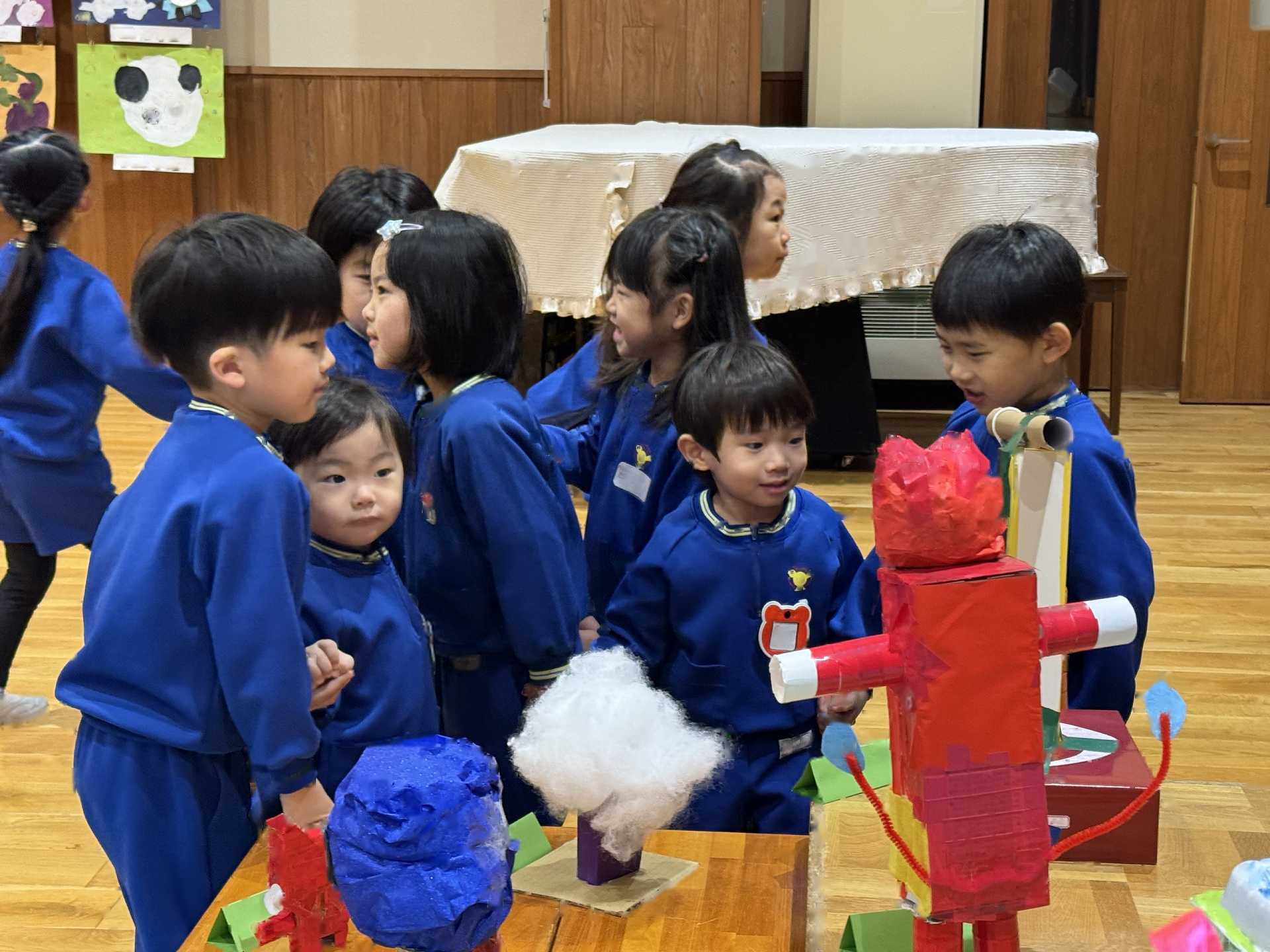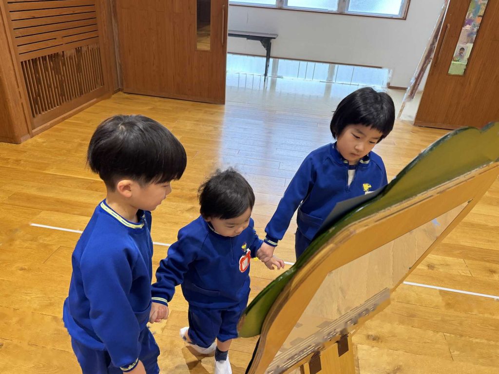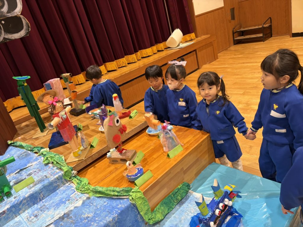 ☆絵画展☆ 今年も子ども達の可愛い作品や絵を飾り、絵画展を行いました!たくさんの方々が園へ見に来てくださり、子ども達にとっても喜びや励みになったことと思います。幼稚園ではフレンドデーを兼ねて、異年齢の友達と一緒に絵画展を見に行きました!【年長&2歳】【年中&年少】ペアでホールを回りました♪ ☆異年齢の友達と一緒に見学することで、幼稚園のいろんな友達の頑張っているとこや素敵なところを見合うことができる機会となりました!みんなの作品、素晴らしかったよ☆