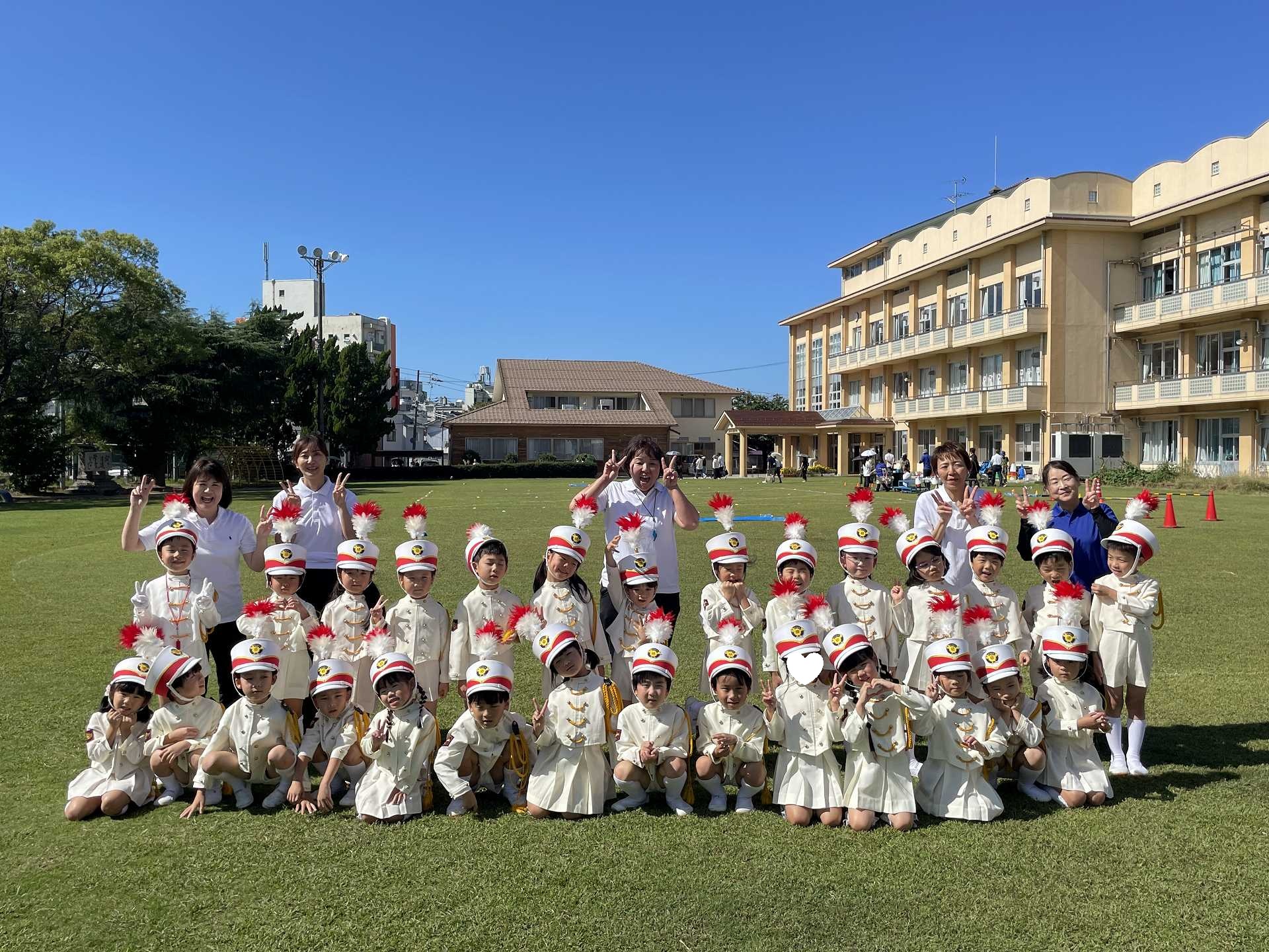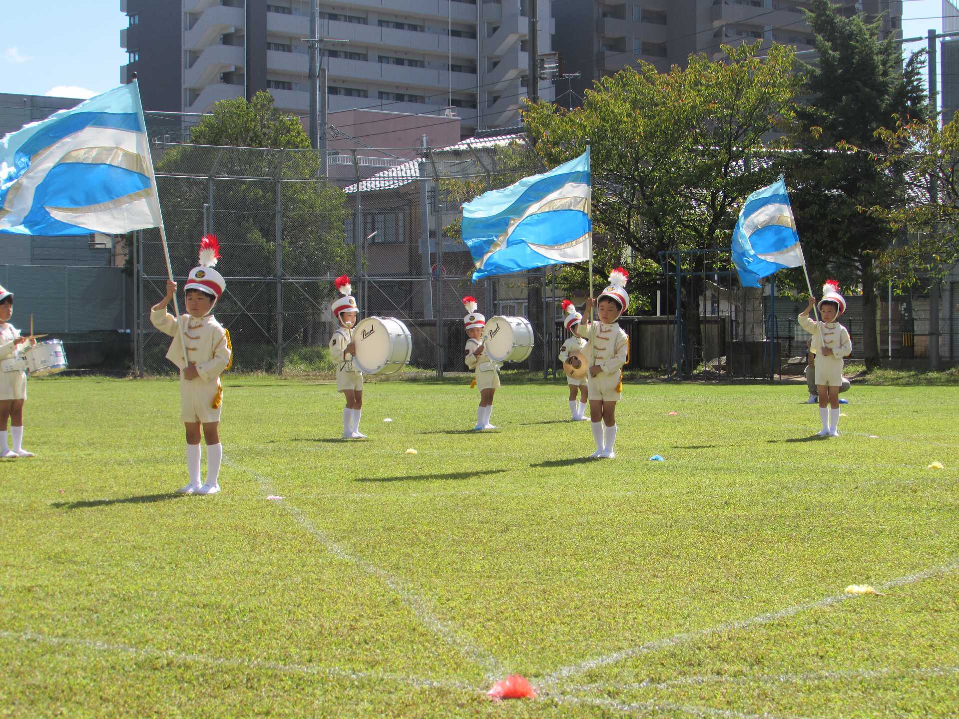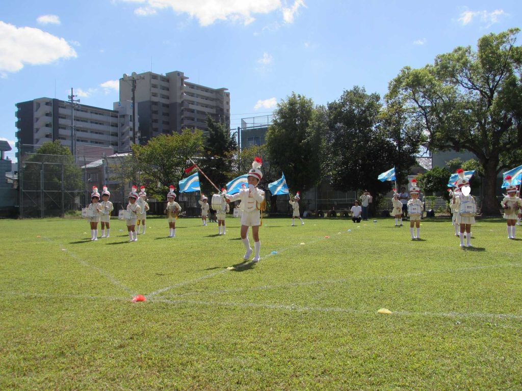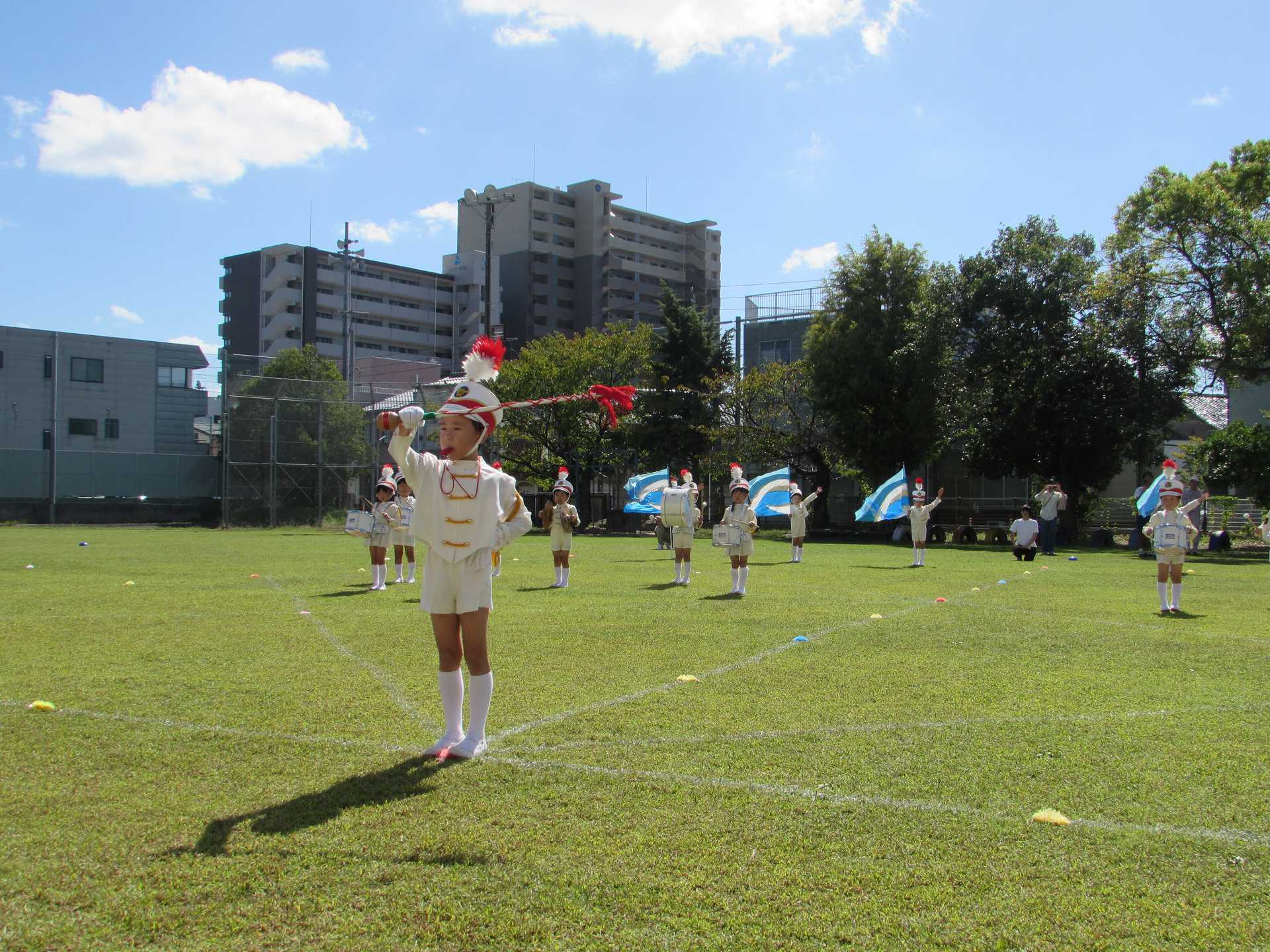 【年長組】マーチング披露会 秋晴れの青空の下で、年長児最後のマーチングを披露することができました! これまで小さな「できた!」の積み重ねを大切にしながら取り組んできたマーチング。 一人一人が「どんなマーチングをしたいのか」を考えながら、最後のマーチングに臨みました。 ご来場の皆様に、みんなの一生懸命な姿と、心を一つにした演奏をお届けできたのではないかと思います! 温かい拍手をたくさんいただき、ありがとうございました!