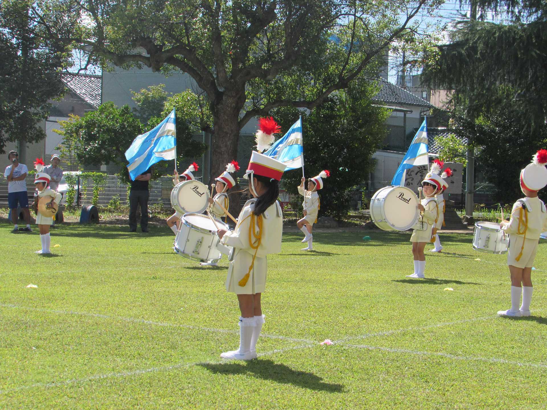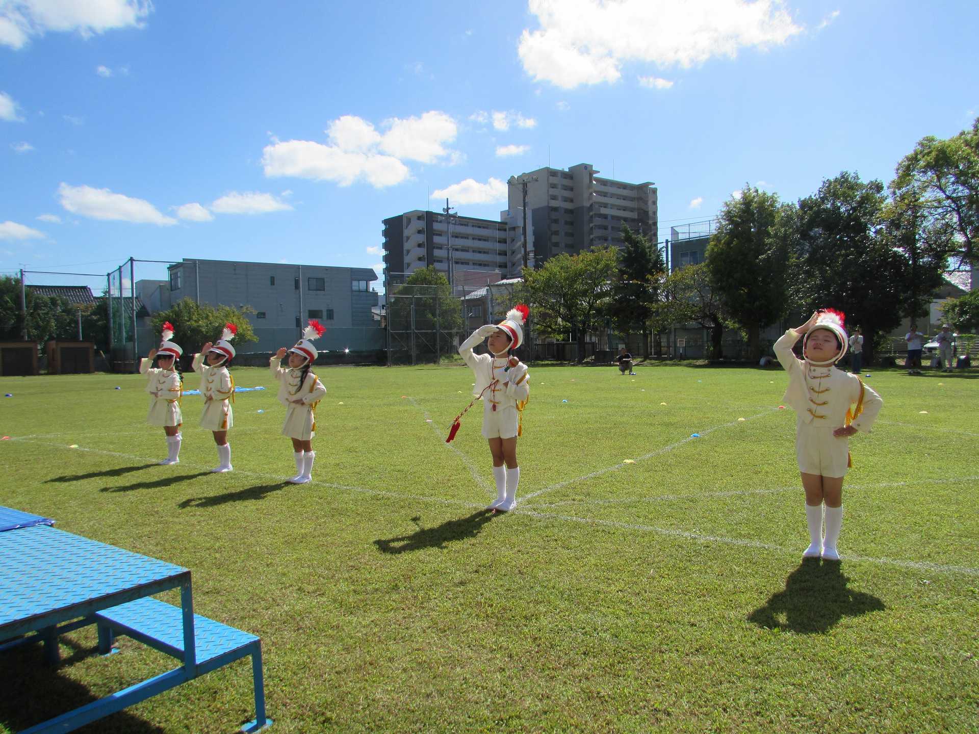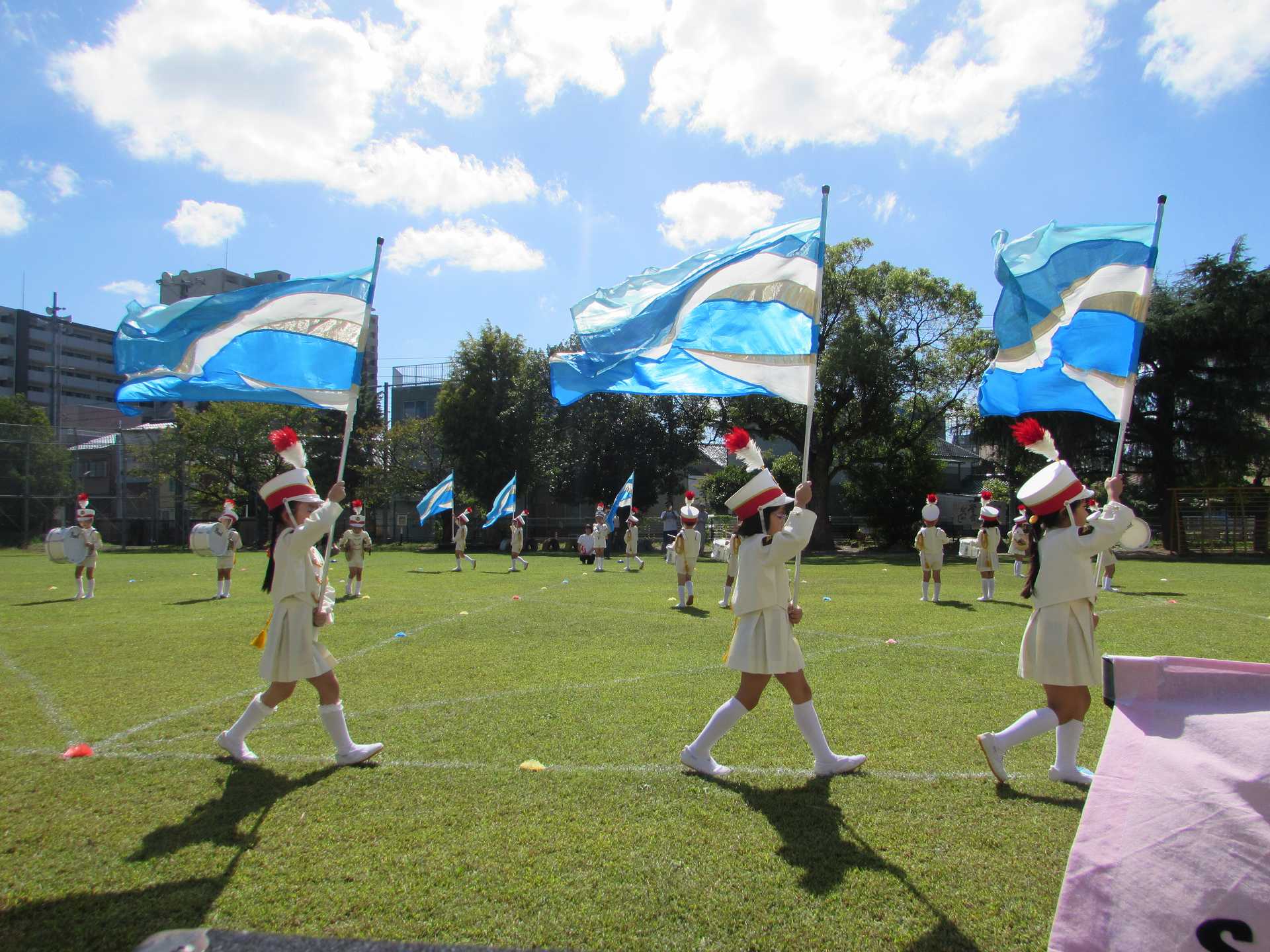 【年長組】マーチング披露会 秋晴れの青空の下で、年長児最後のマーチングを披露することができました! これまで小さな「できた!」の積み重ねを大切にしながら取り組んできたマーチング。 一人一人が「どんなマーチングをしたいのか」を考えながら、最後のマーチングに臨みました。 ご来場の皆様に、みんなの一生懸命な姿と、心を一つにした演奏をお届けできたのではないかと思います! 温かい拍手をたくさんいただき、ありがとうございました!