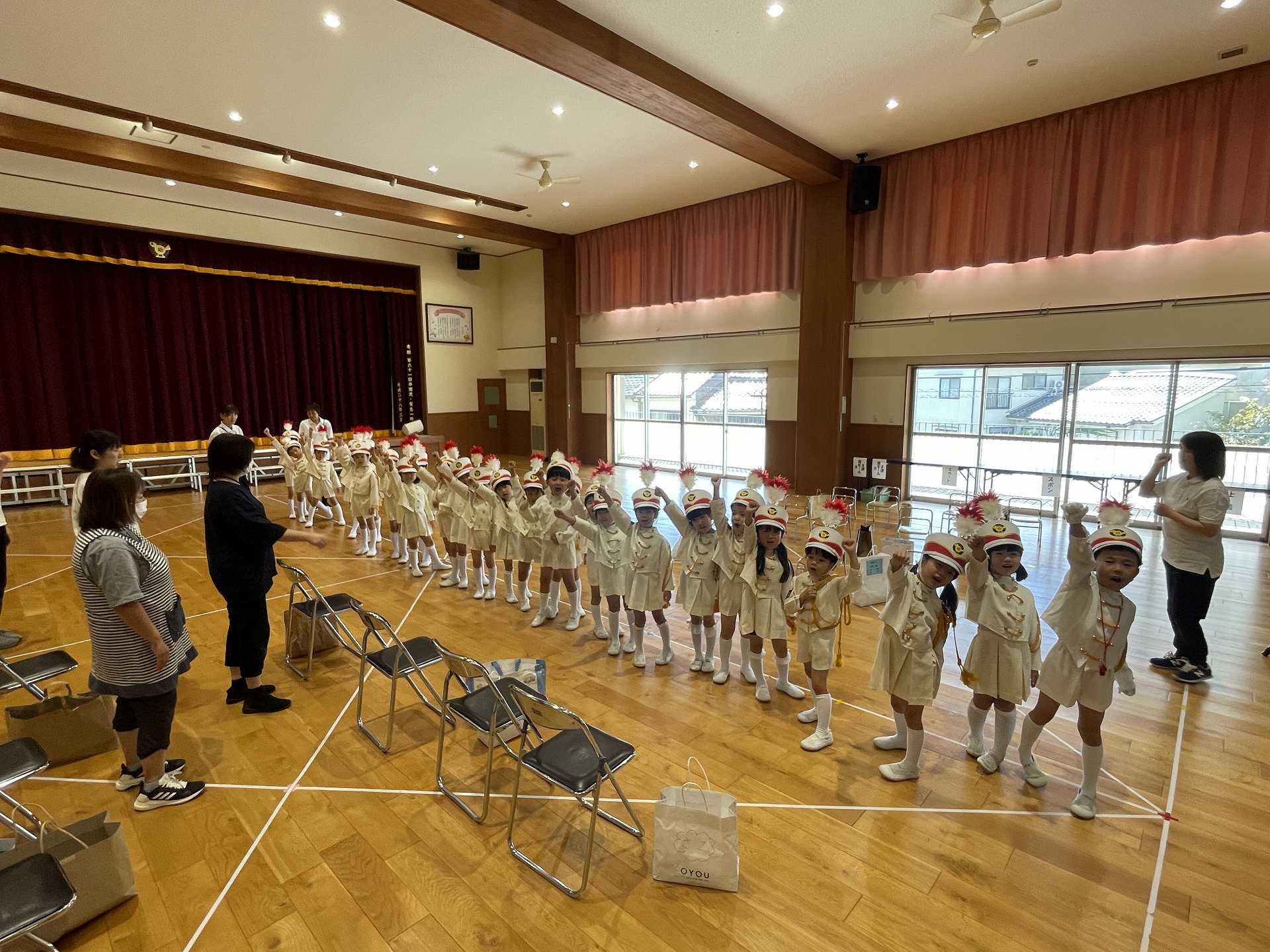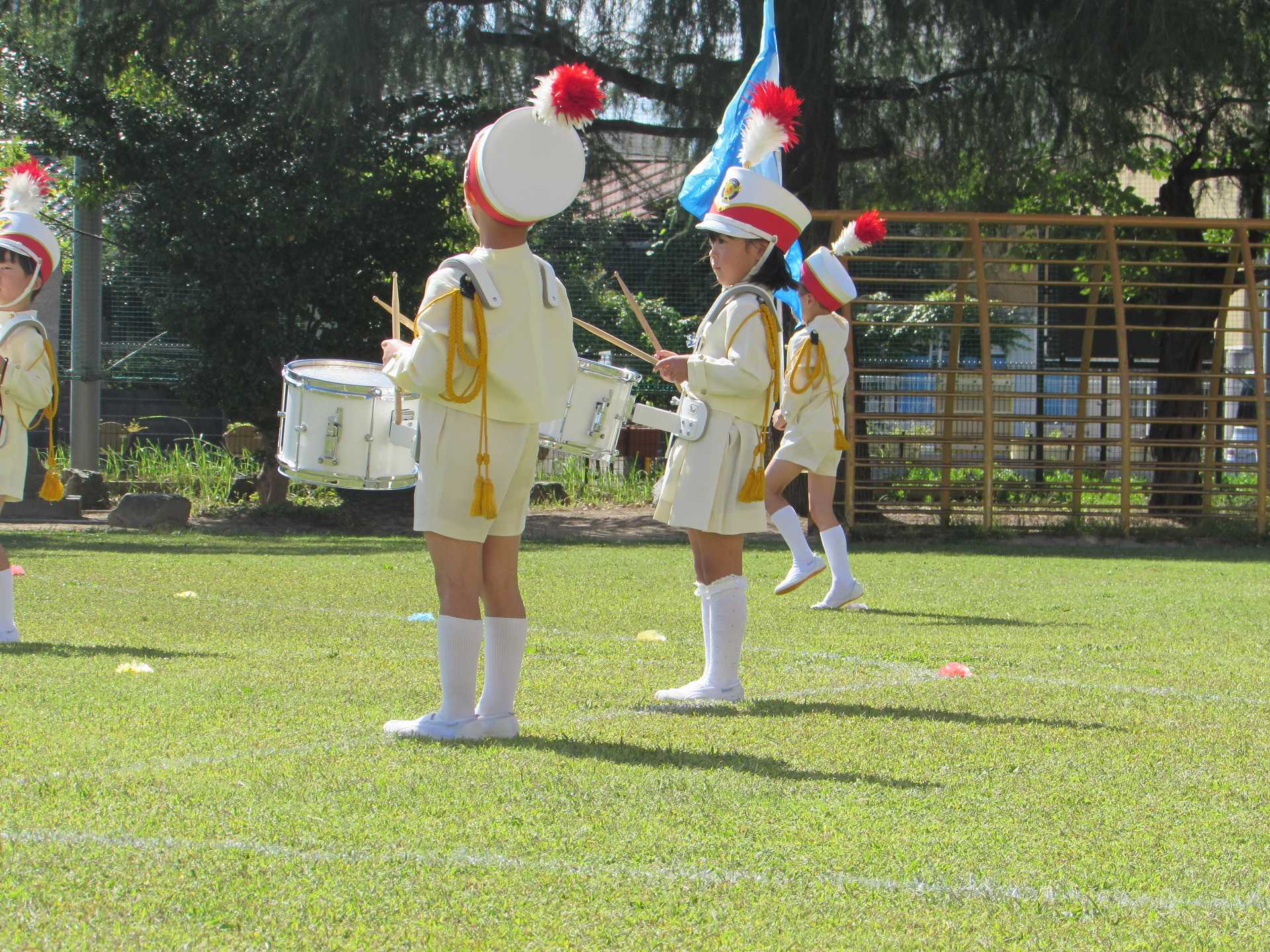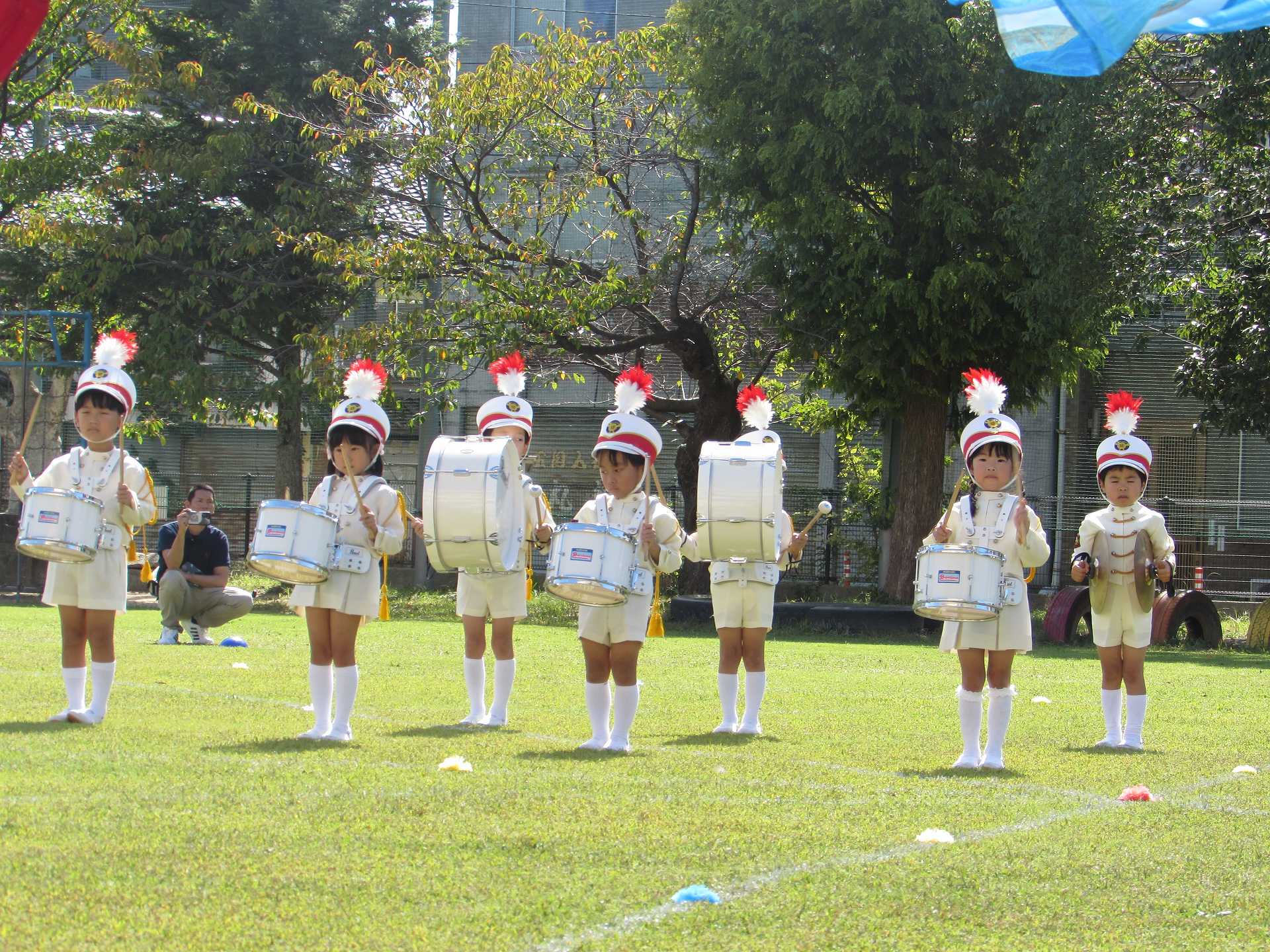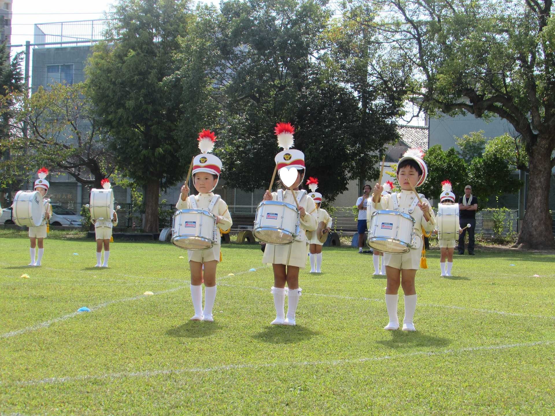 【年長組】マーチング披露会 秋晴れの青空の下で、年長児最後のマーチングを披露することができました! これまで小さな「できた!」の積み重ねを大切にしながら取り組んできたマーチング。 一人一人が「どんなマーチングをしたいのか」を考えながら、最後のマーチングに臨みました。 ご来場の皆様に、みんなの一生懸命な姿と、心を一つにした演奏をお届けできたのではないかと思います! 温かい拍手をたくさんいただき、ありがとうございました!