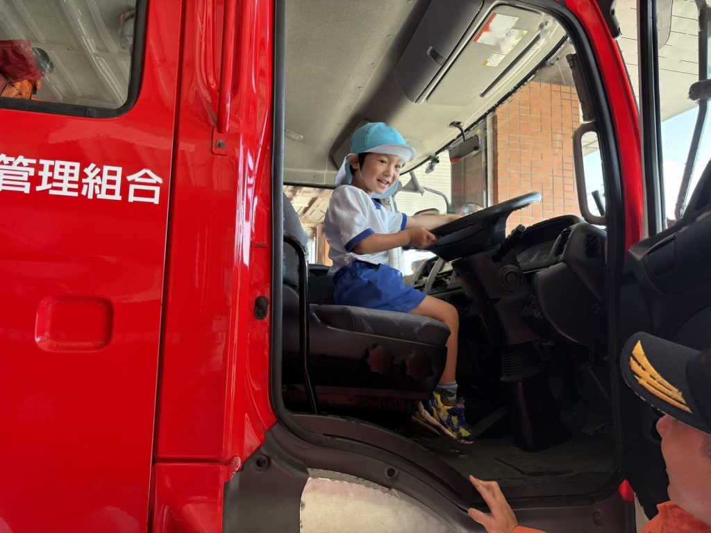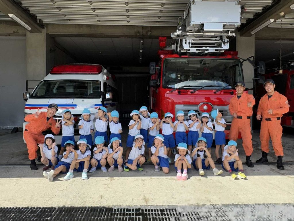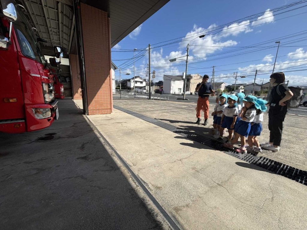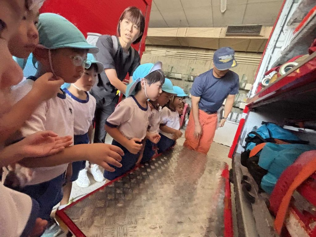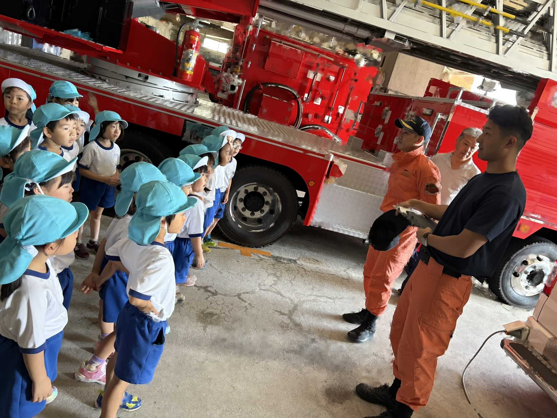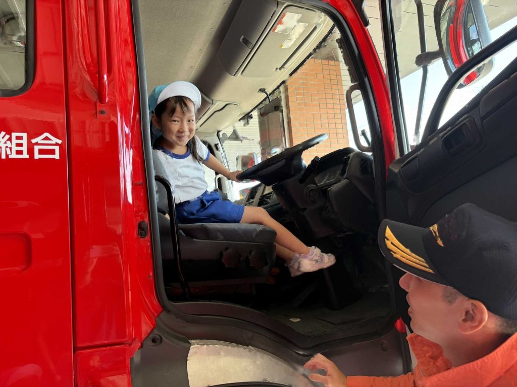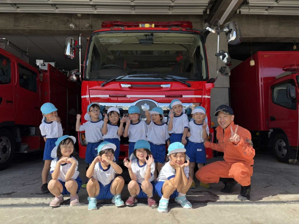 年中組★園外活動「消防署見学」 園外活動で”消防署”へ見学に行ってきました。消防士さんのお仕事について教えてもらったり、消防車両に実際に乗らせてもらったりしながら、消防のお仕事について関心を高めていた子ども達でした♪