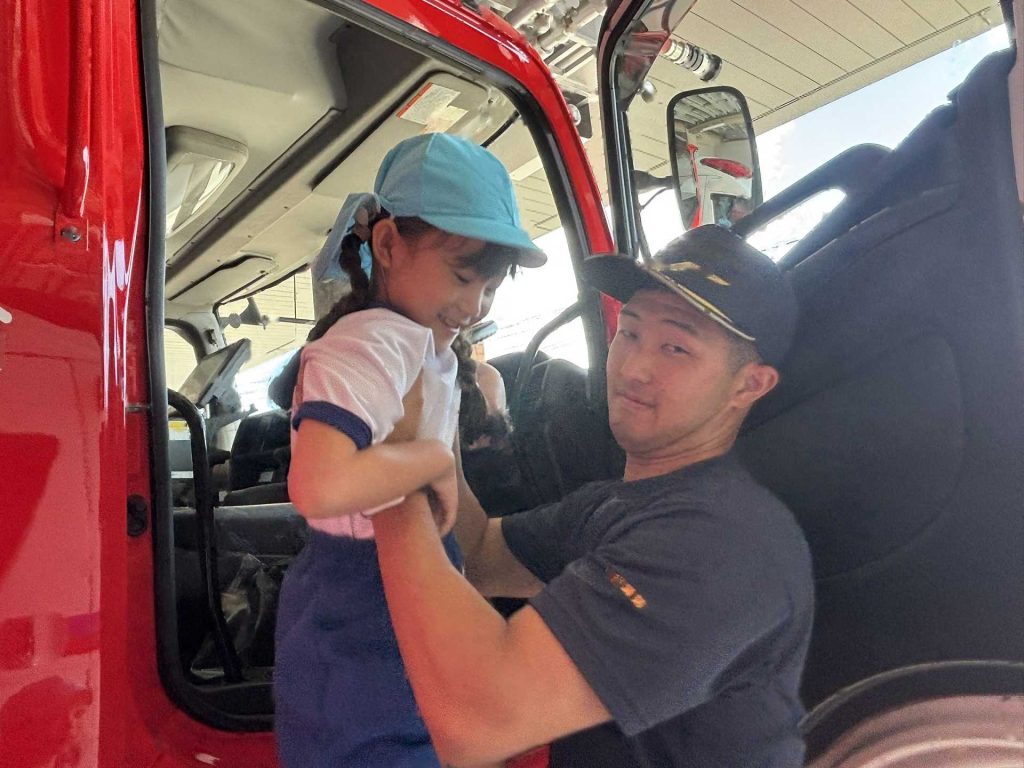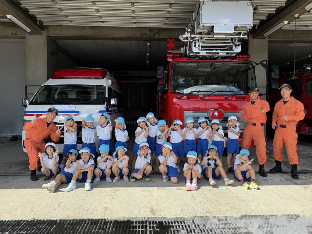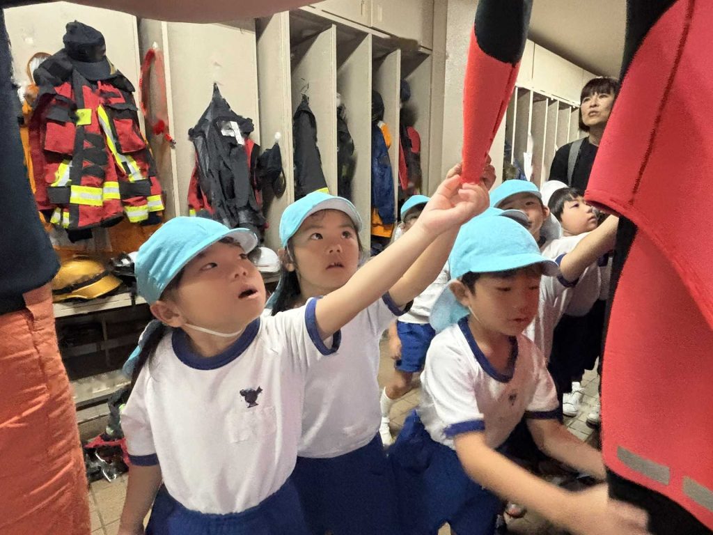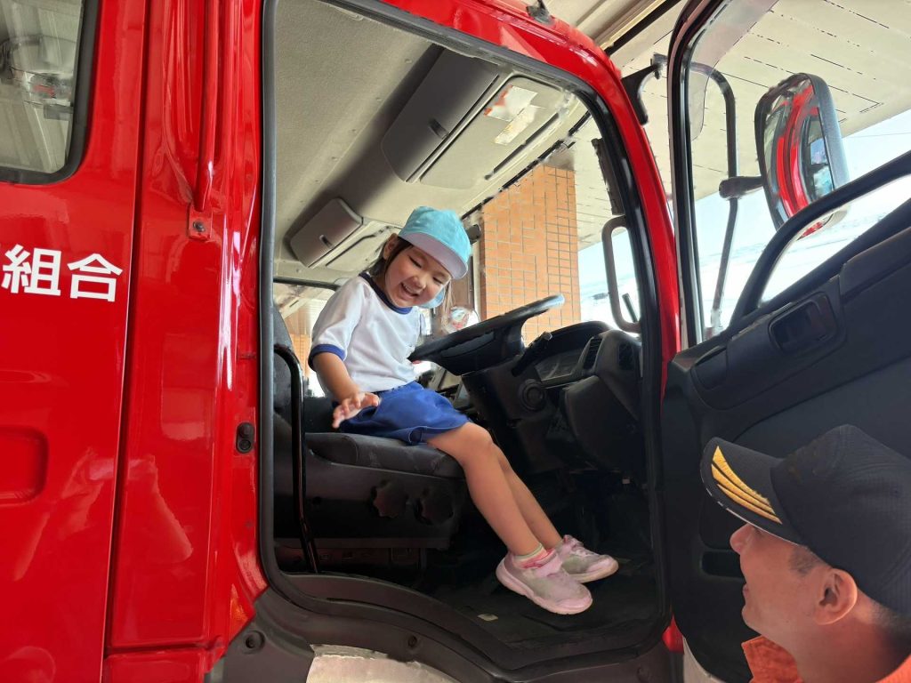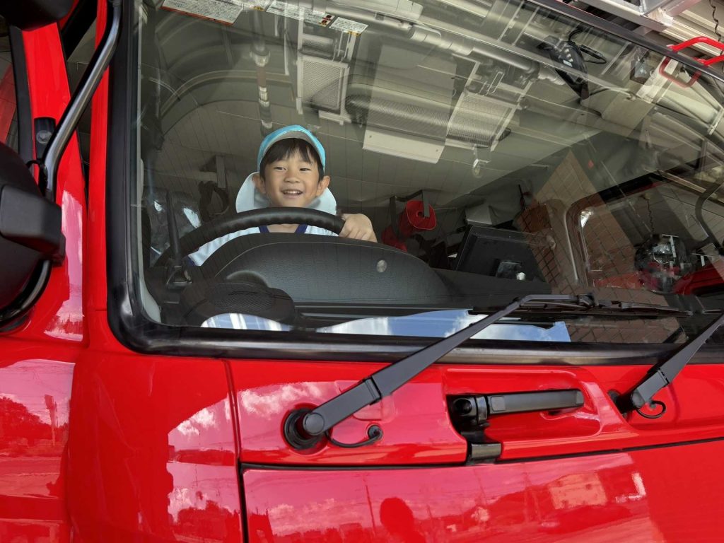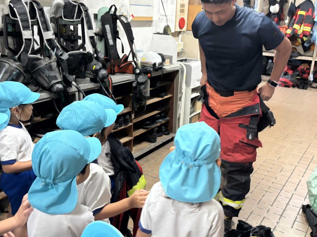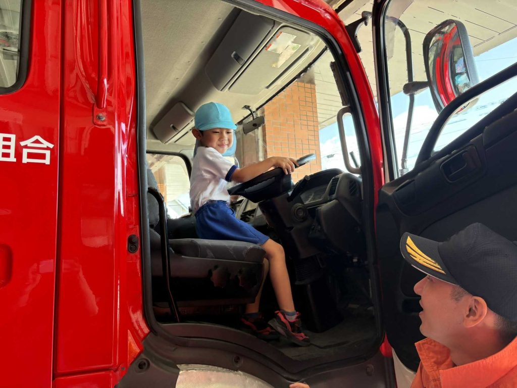 年中組★園外活動「消防署見学」 園外活動で”消防署”へ見学に行ってきました。消防士さんのお仕事について教えてもらったり、消防車両に実際に乗らせてもらったりしながら、消防のお仕事について関心を高めていた子ども達でした♪