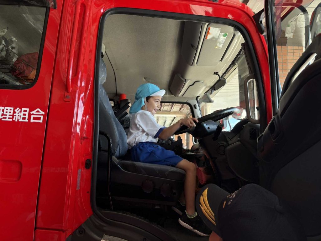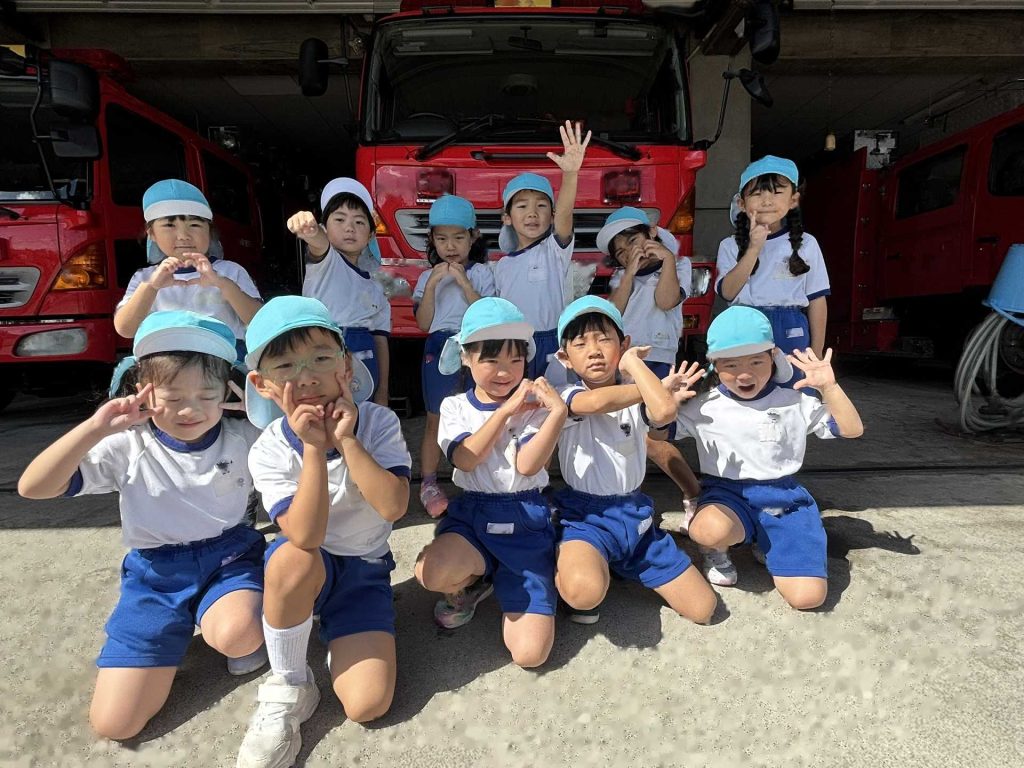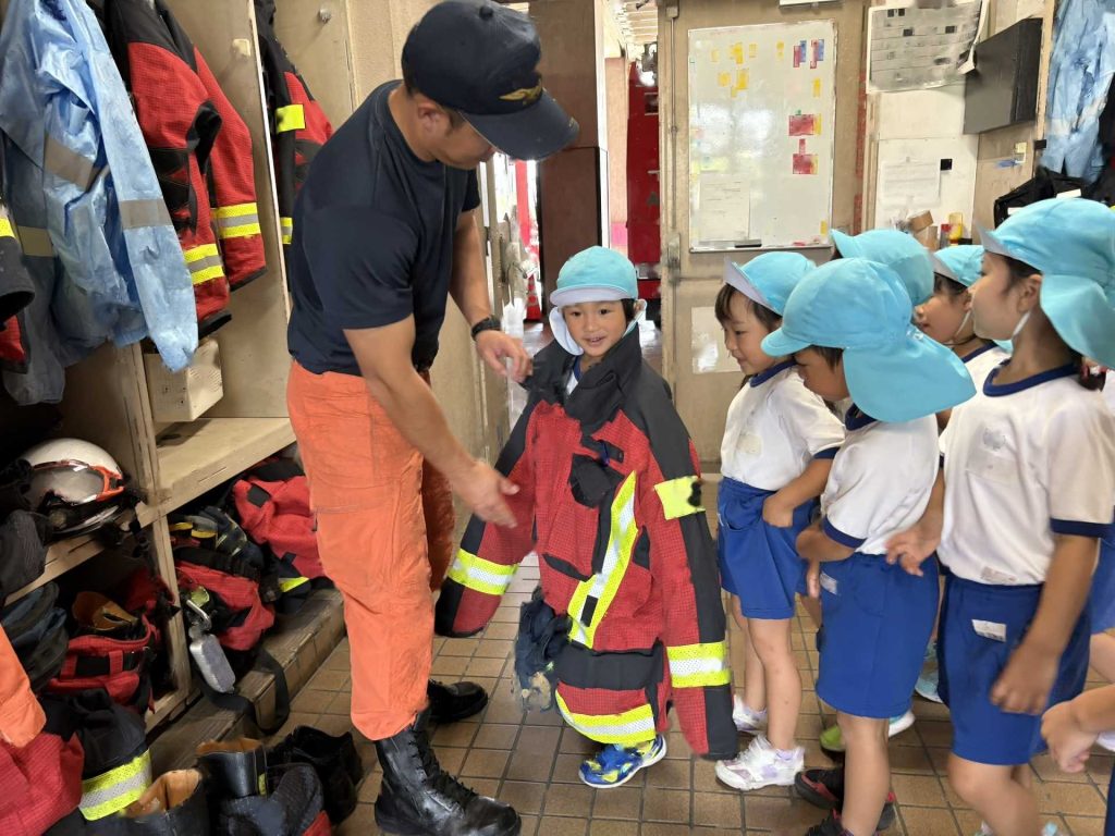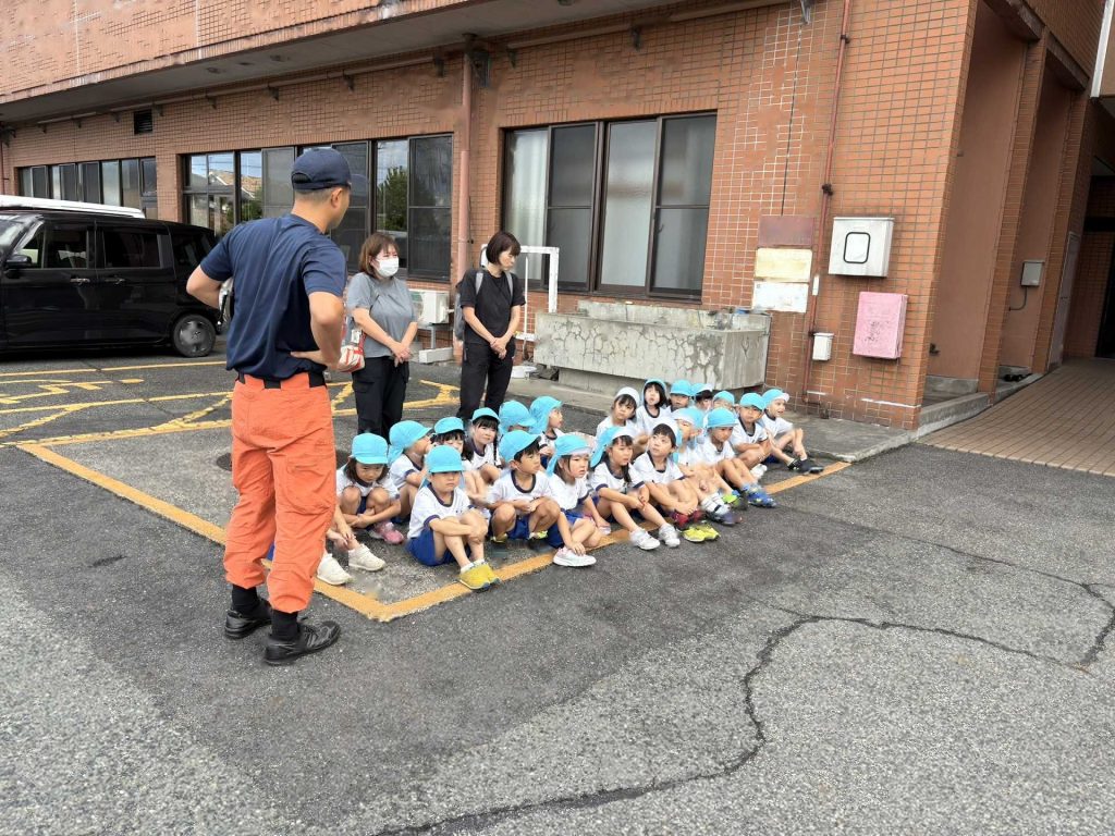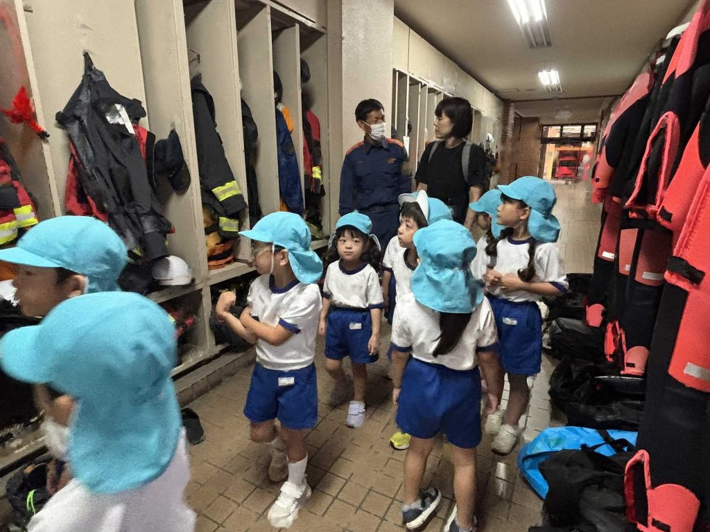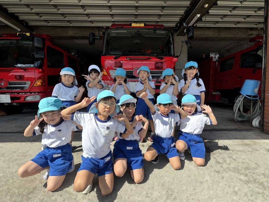 年中組★園外活動「消防署見学」 園外活動で”消防署”へ見学に行ってきました。消防士さんのお仕事について教えてもらったり、消防車両に実際に乗らせてもらったりしながら、消防のお仕事について関心を高めていた子ども達でした♪
