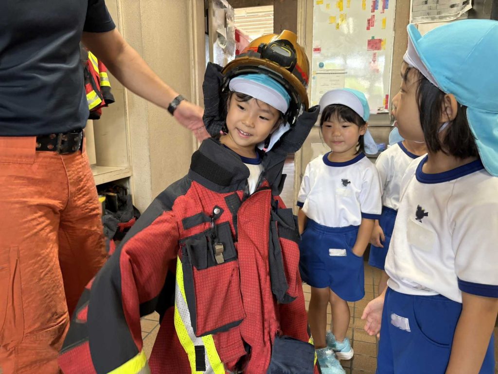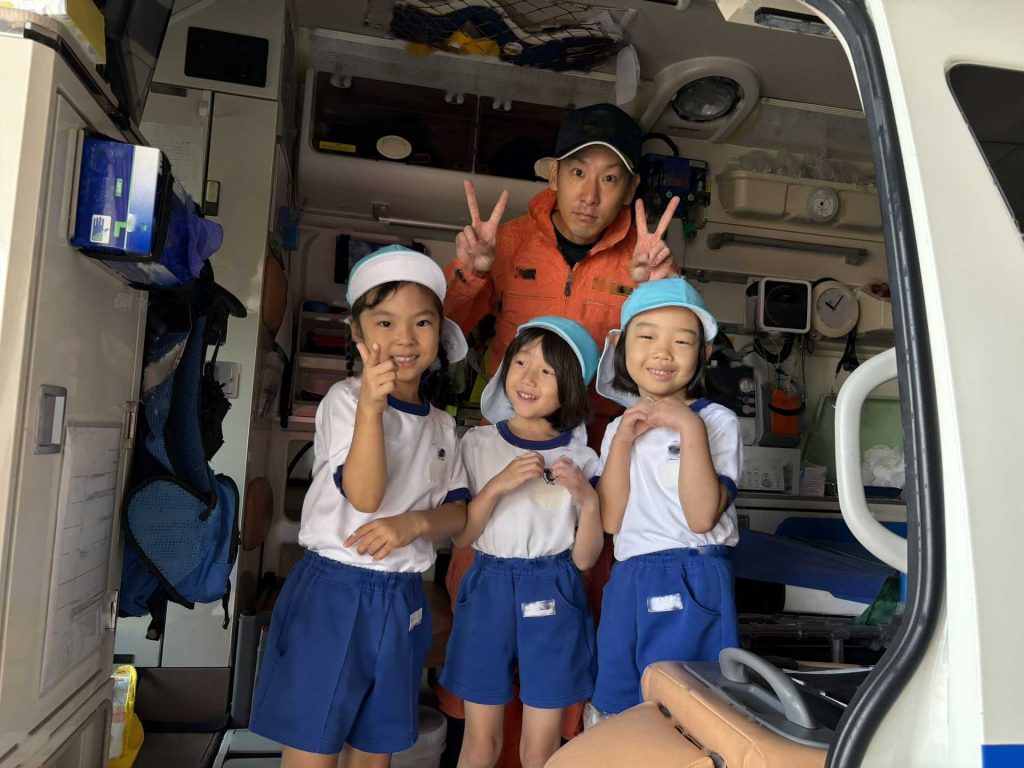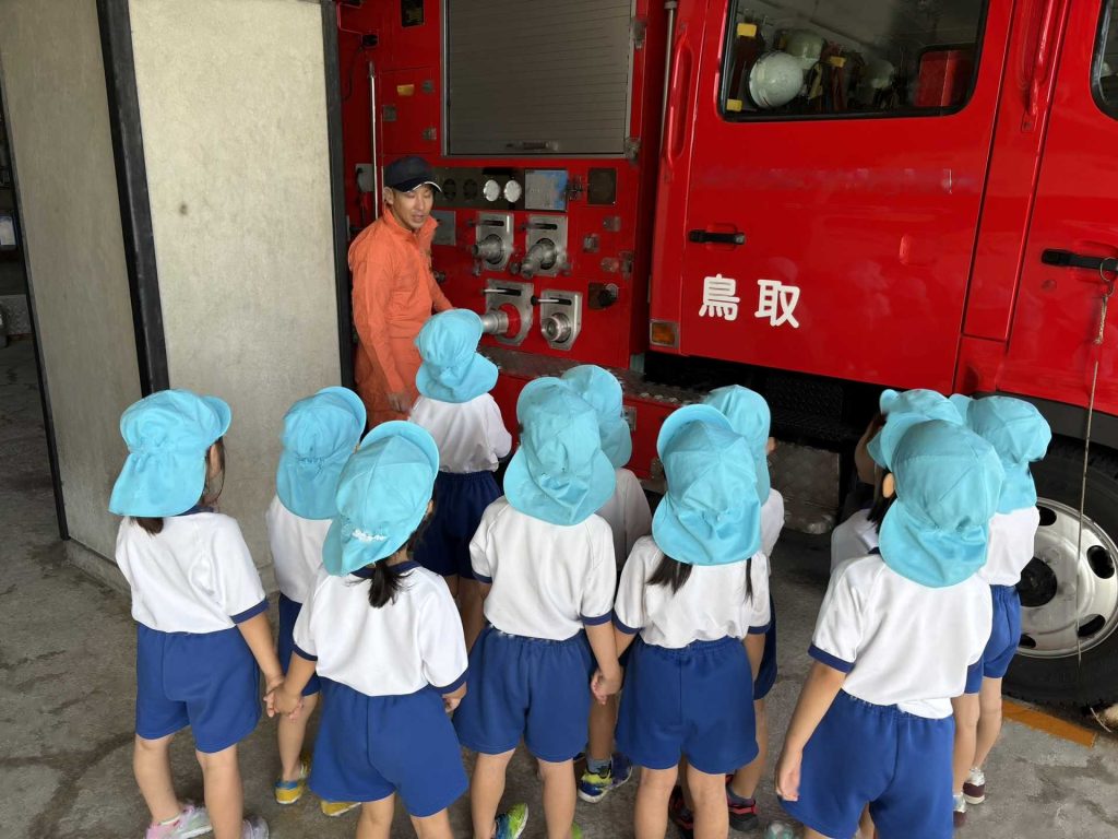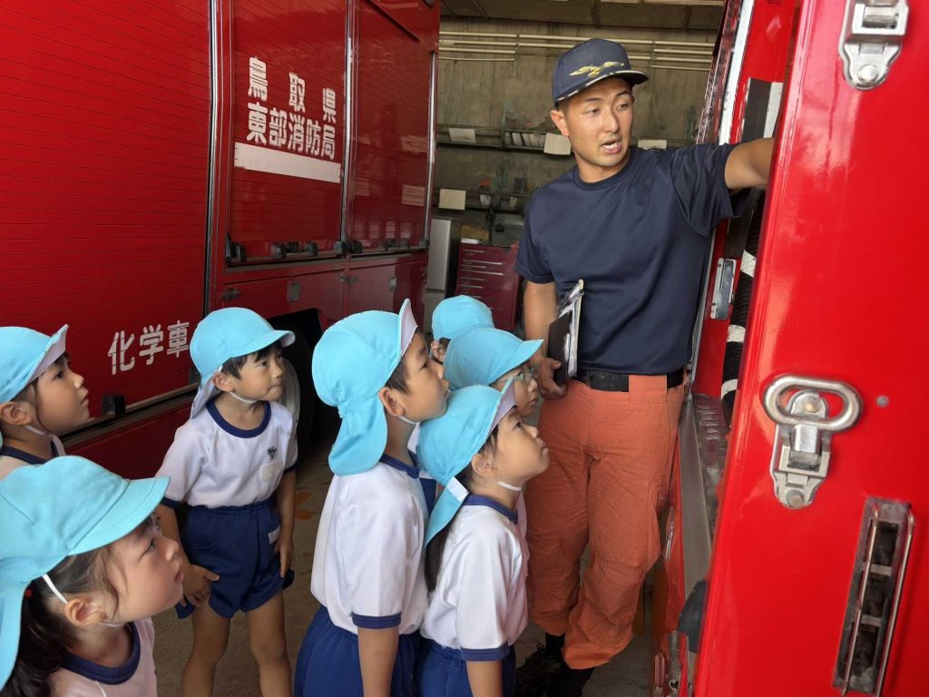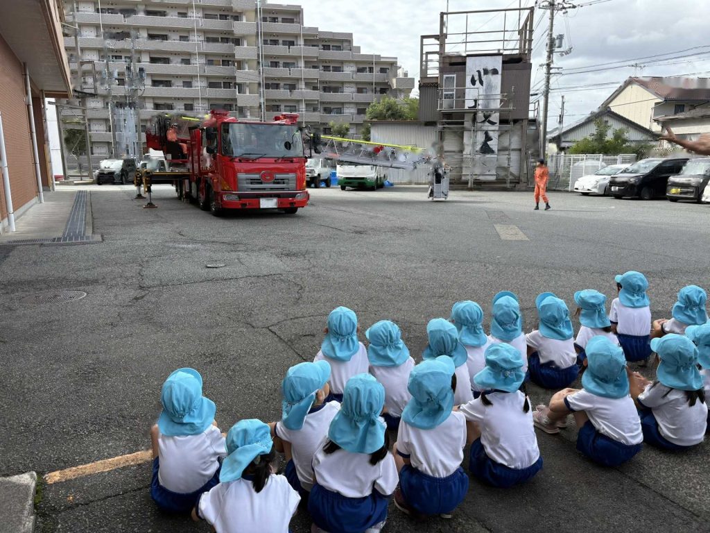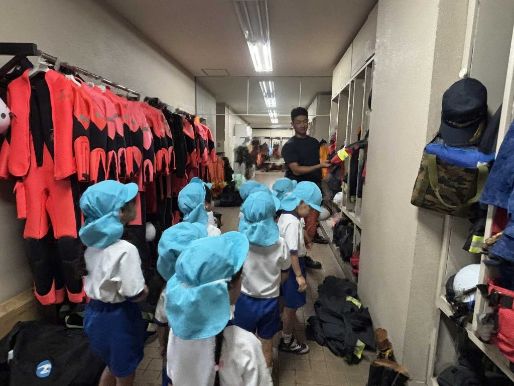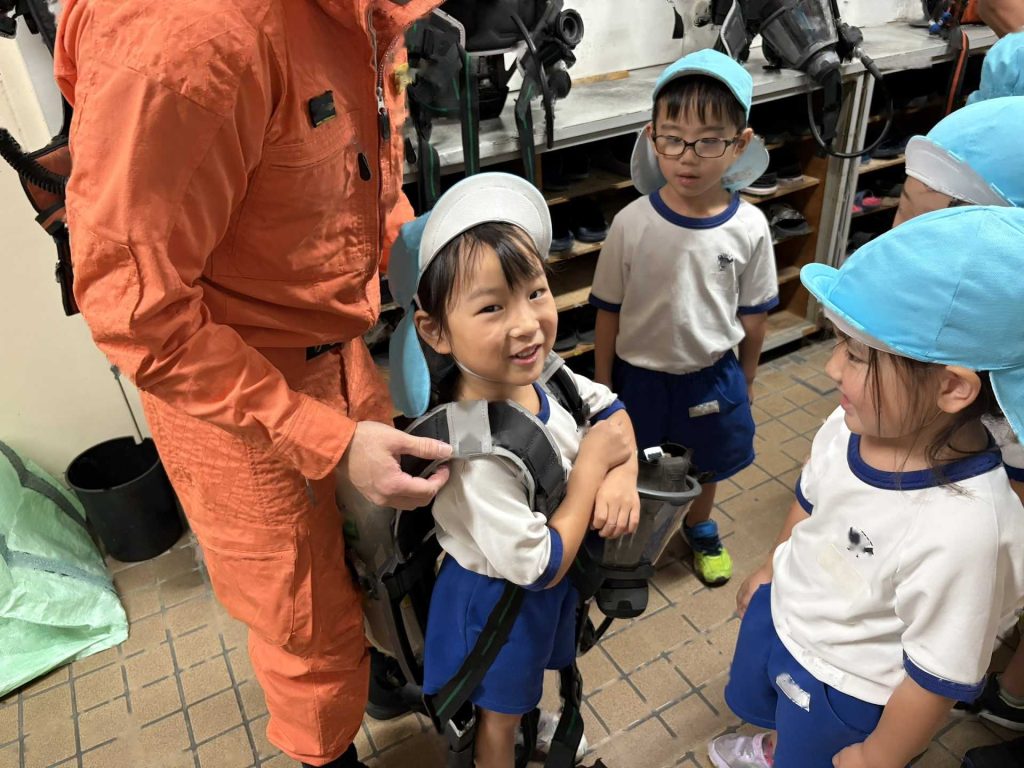 年中組★園外活動「消防署見学」 園外活動で”消防署”へ見学に行ってきました。消防士さんのお仕事について教えてもらったり、消防車両に実際に乗らせてもらったりしながら、消防のお仕事について関心を高めていた子ども達でした♪