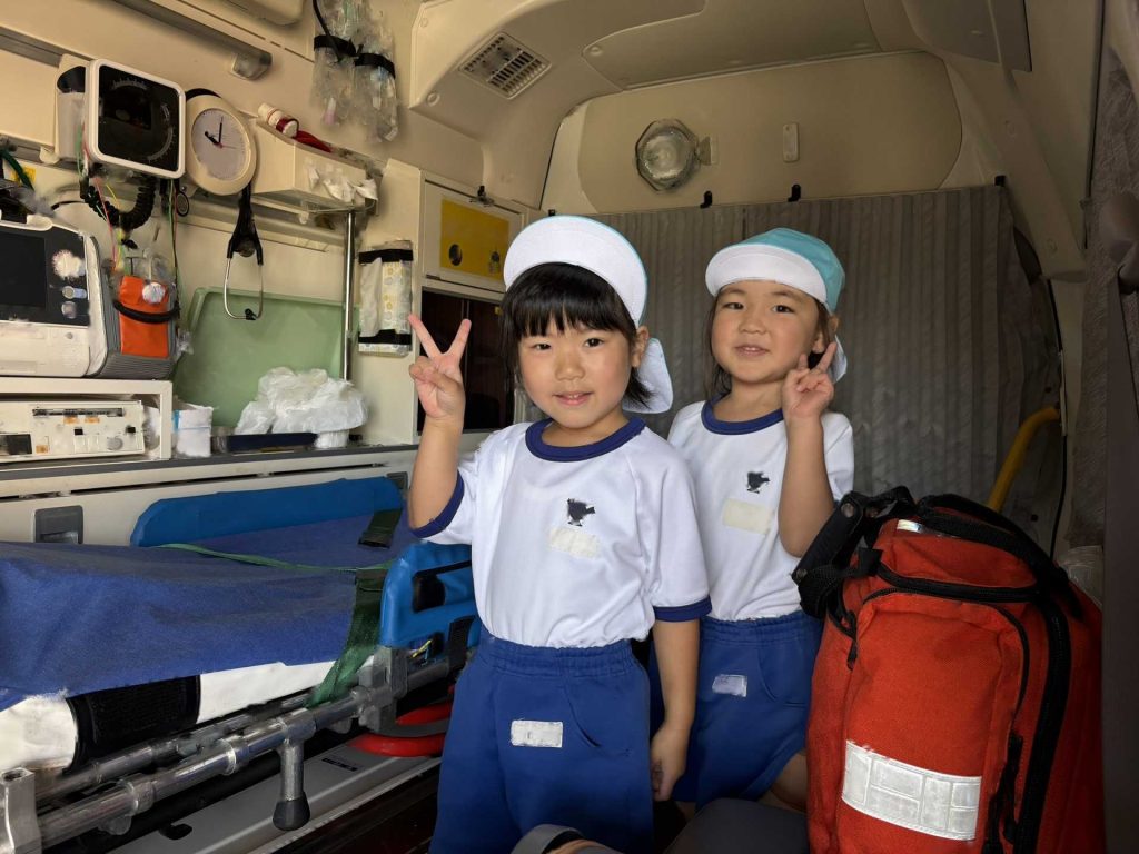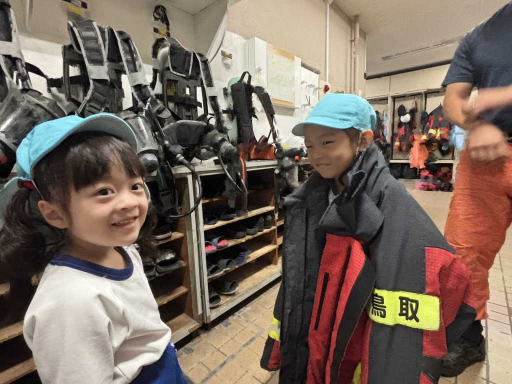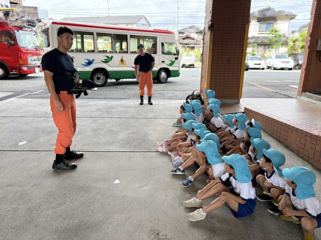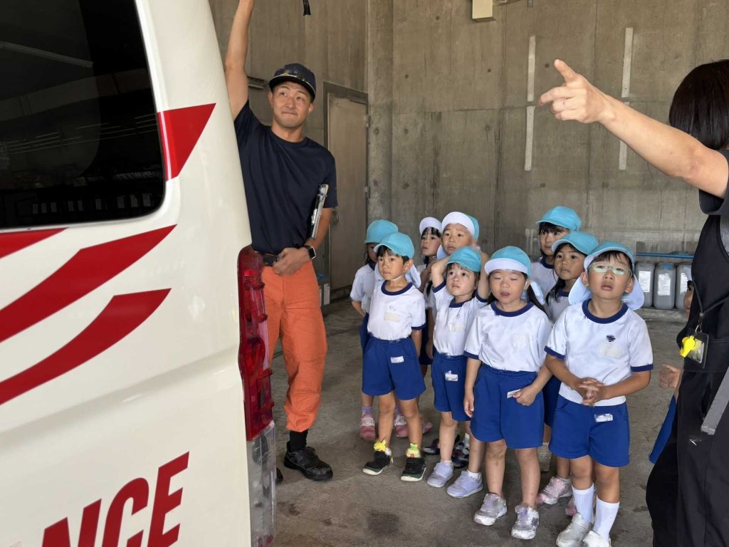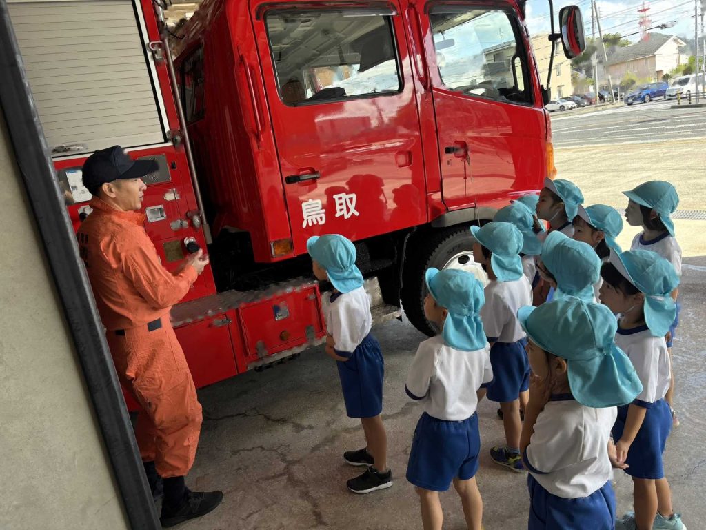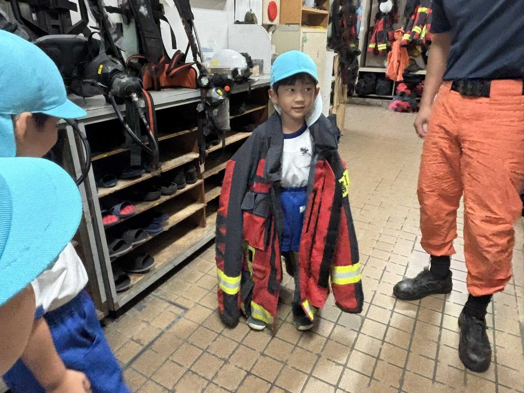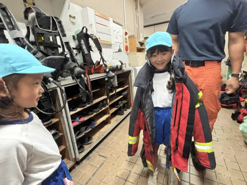年中組★園外活動「消防署見学」 園外活動で”消防署”へ見学に行ってきました。消防士さんのお仕事について教えてもらったり、消防車両に実際に乗らせてもらったりしながら、消防のお仕事について関心を高めていた子ども達でした♪