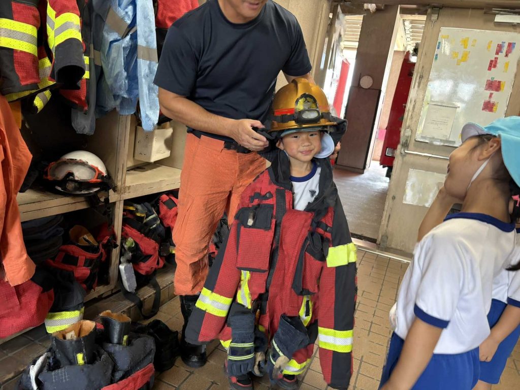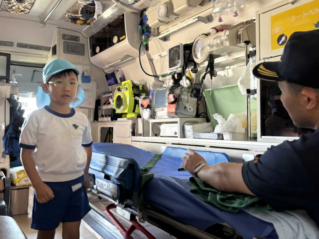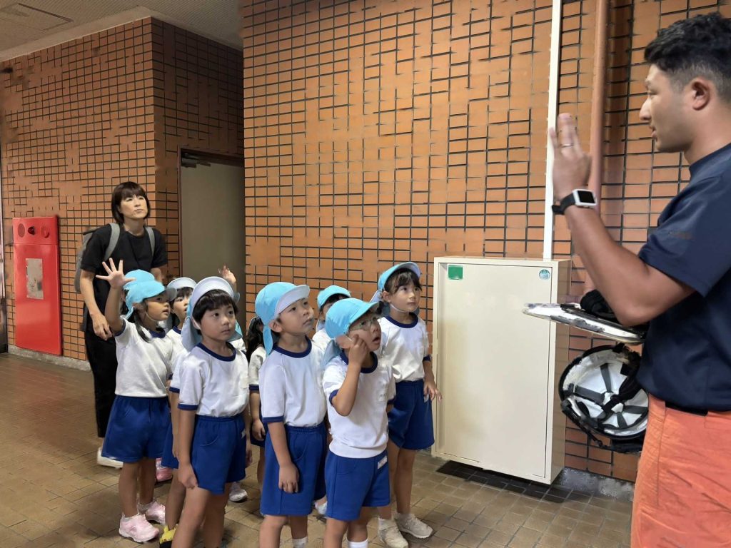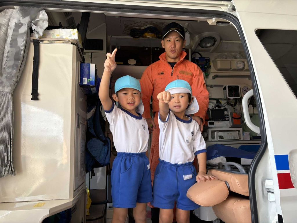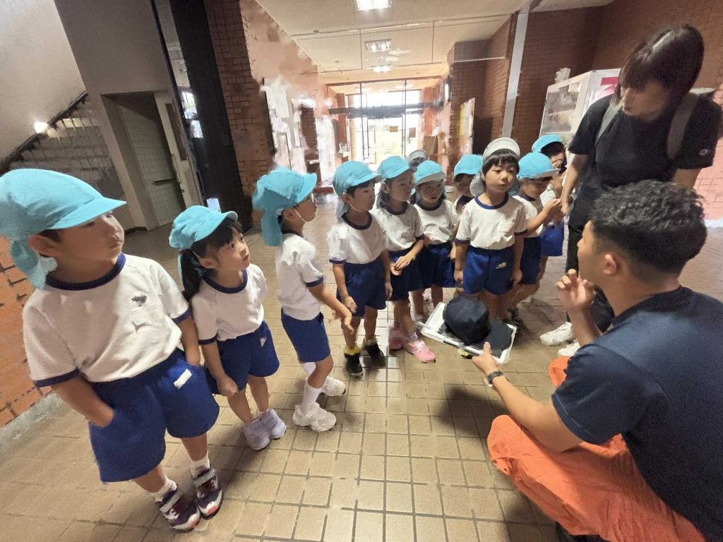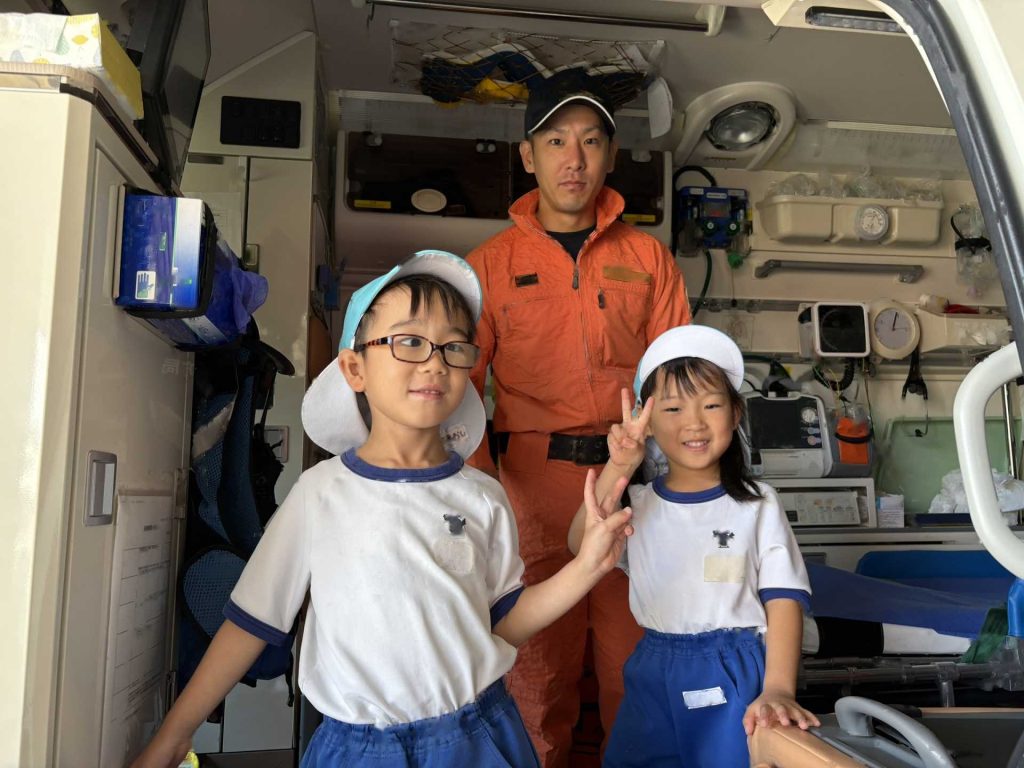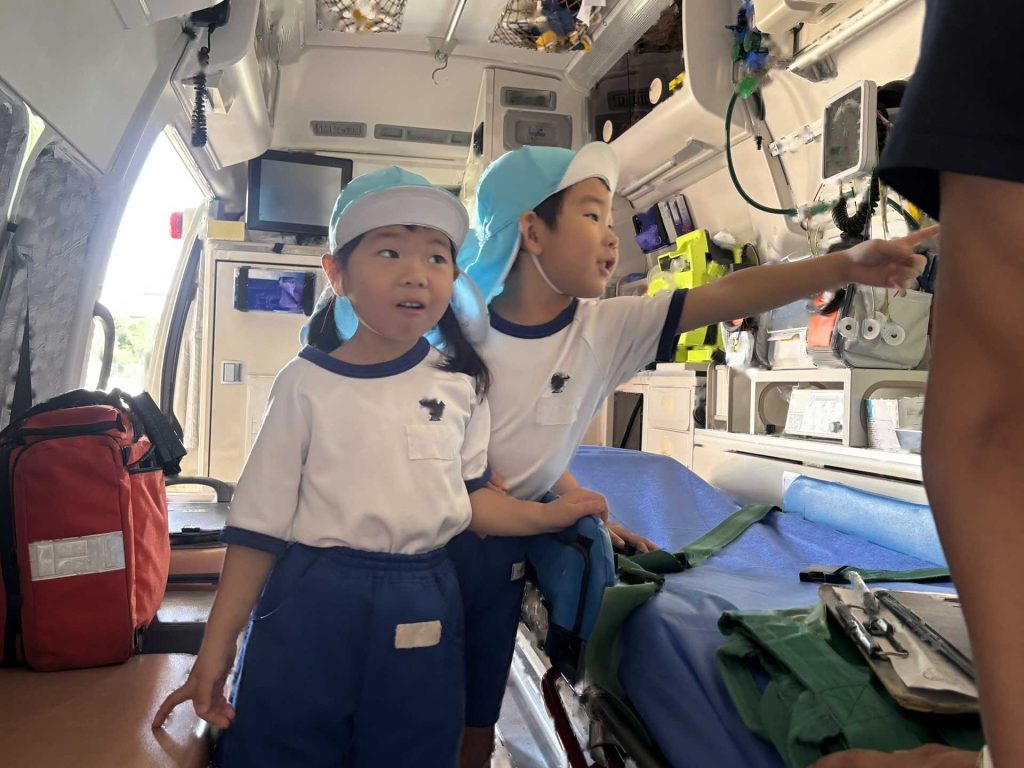 年中組★園外活動「消防署見学」 園外活動で”消防署”へ見学に行ってきました。消防士さんのお仕事について教えてもらったり、消防車両に実際に乗らせてもらったりしながら、消防のお仕事について関心を高めていた子ども達でした♪