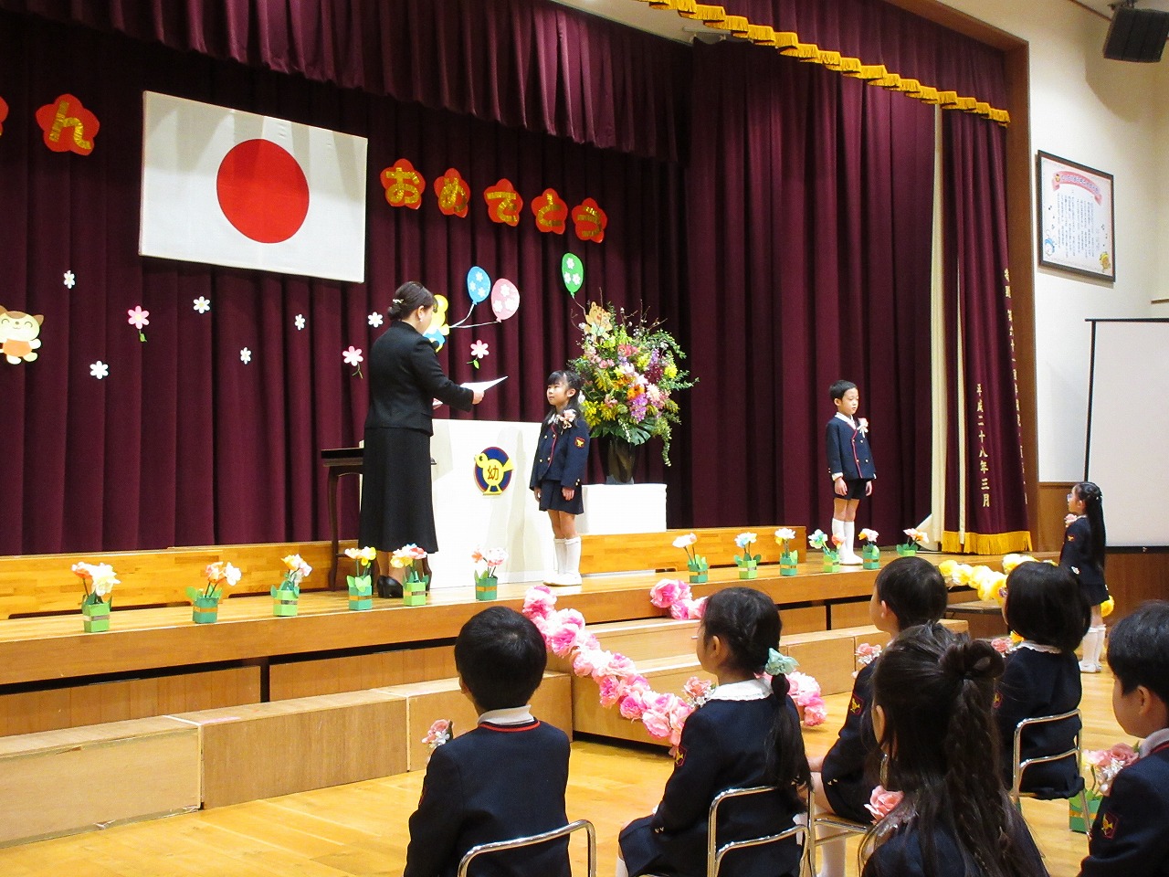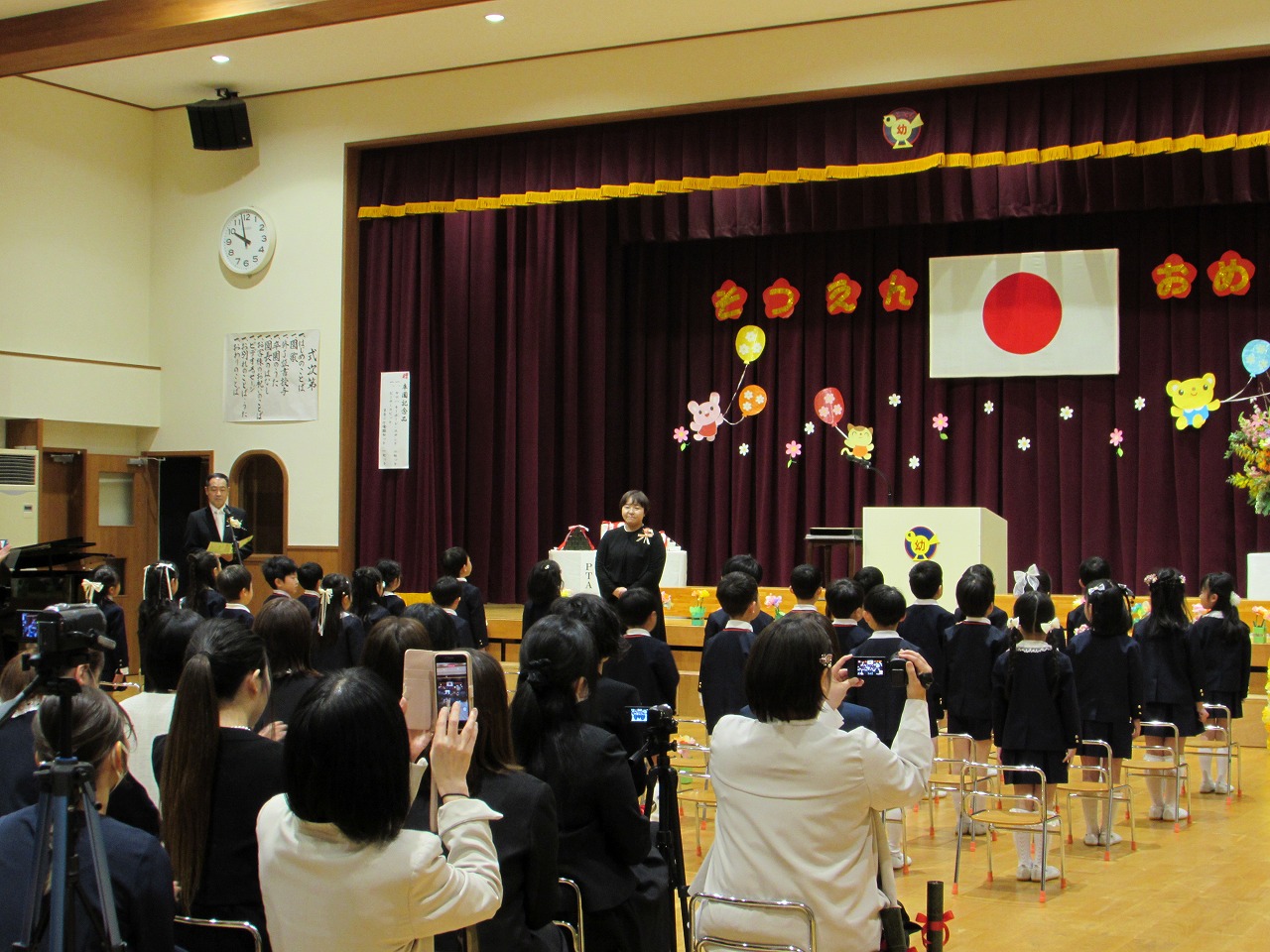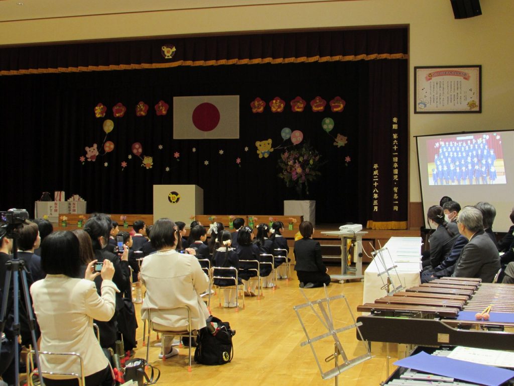朝は雨模様でしたが、式が始まる頃には空に晴れ間も見え、子どもたちの新しい旅立ちを祝福してくれているようでした。