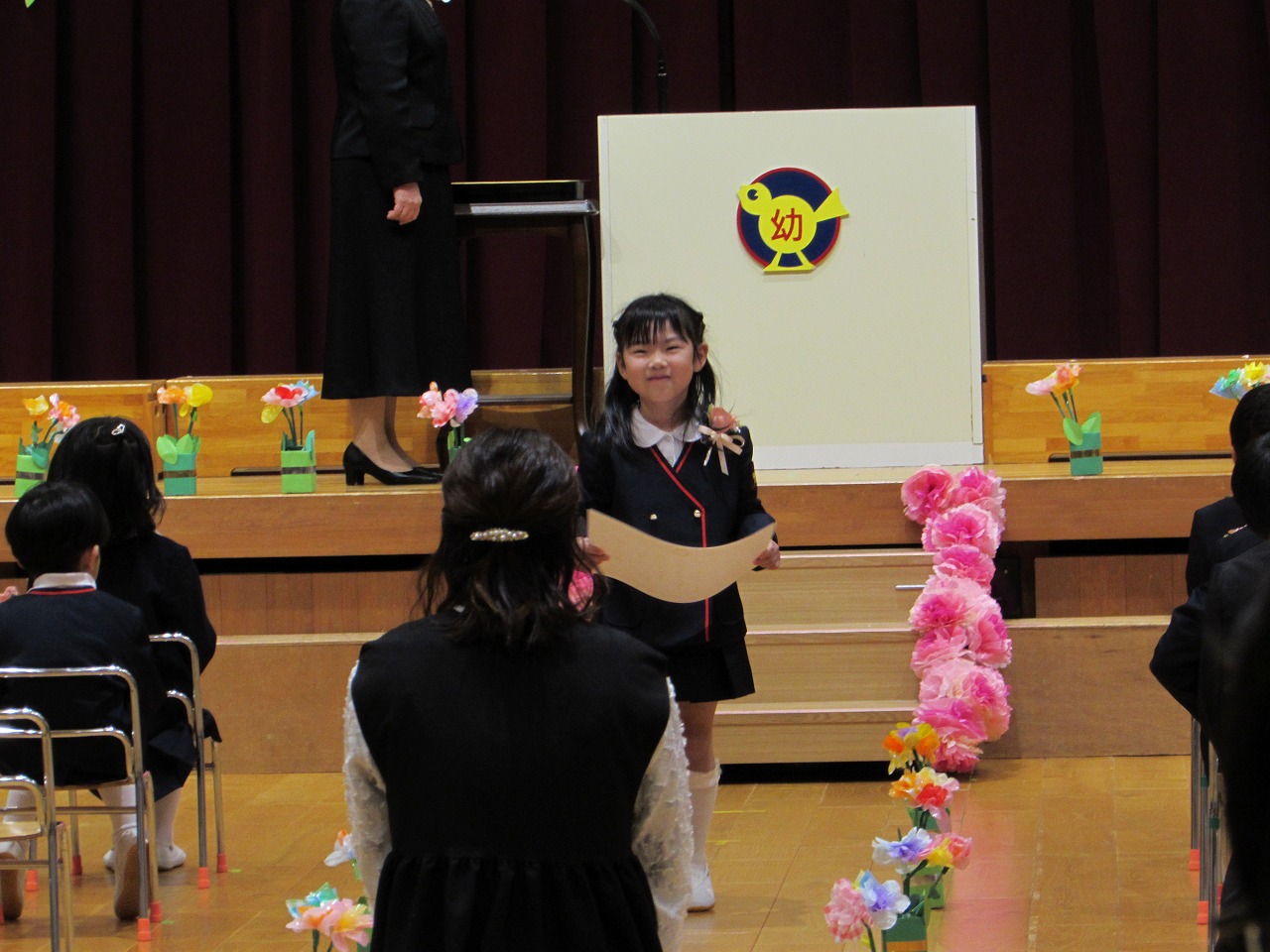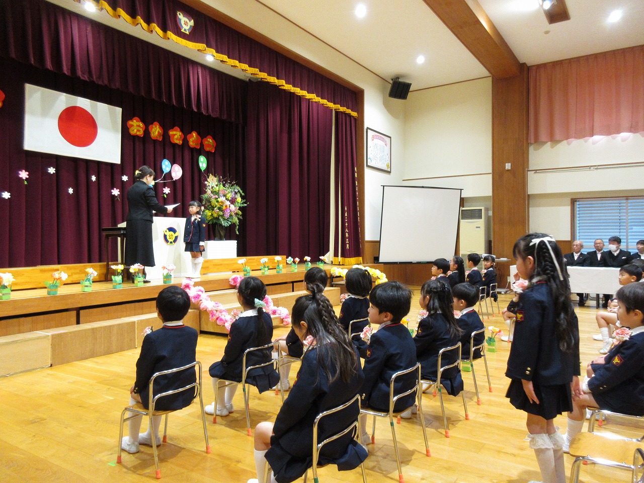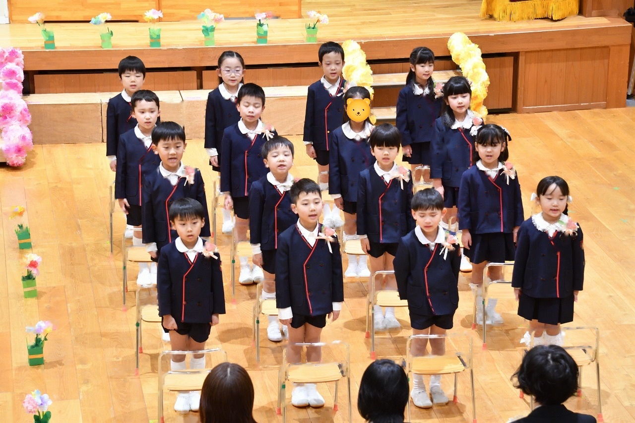 新しくなった園舎の玄関から入場し、園生活の思い出を胸に巣立っていく子どもたち。式の最中には、思いがあふれ涙を流す姿もあり、成長を感じる心温まる時間となりました。