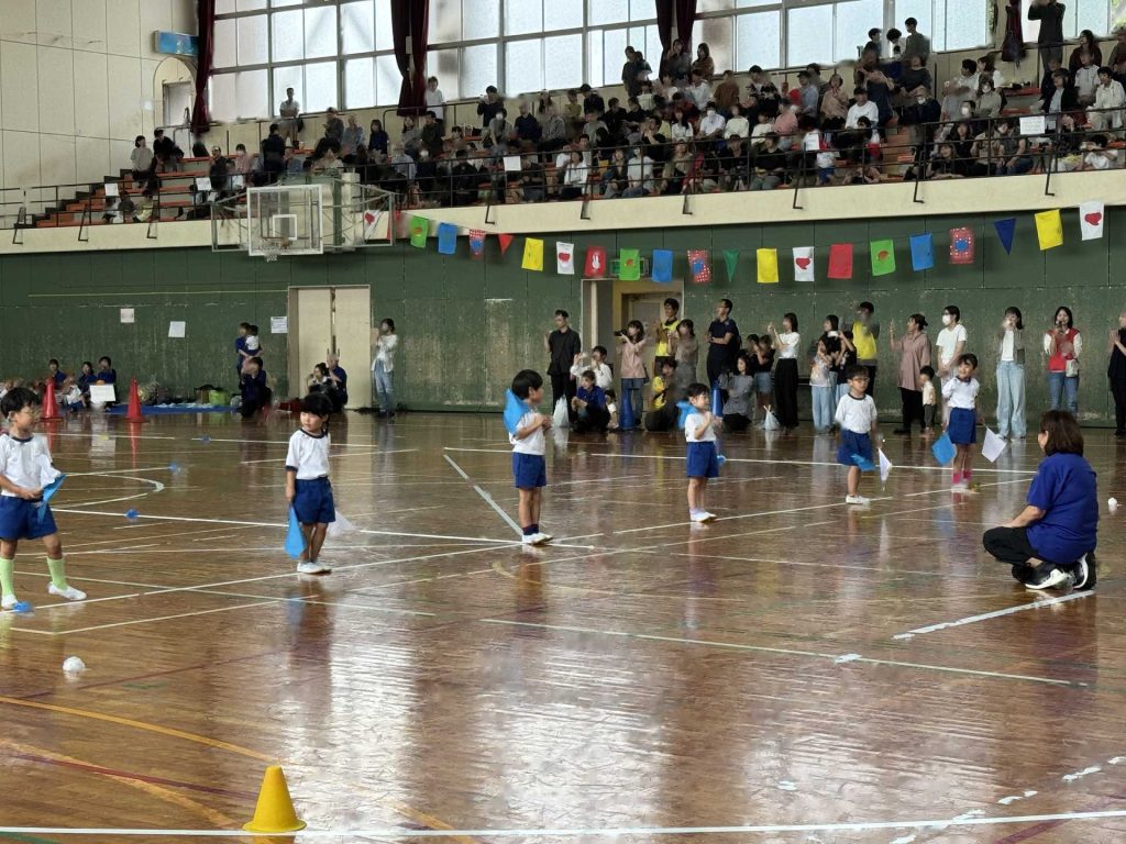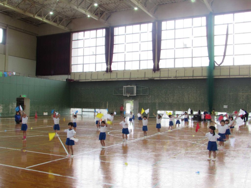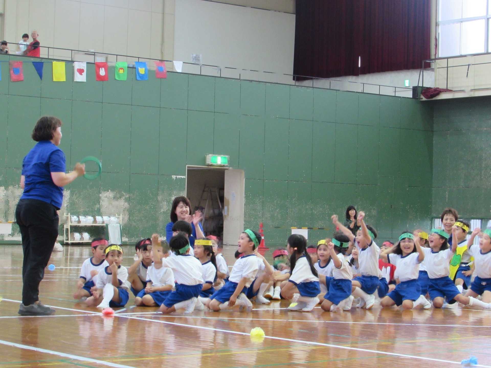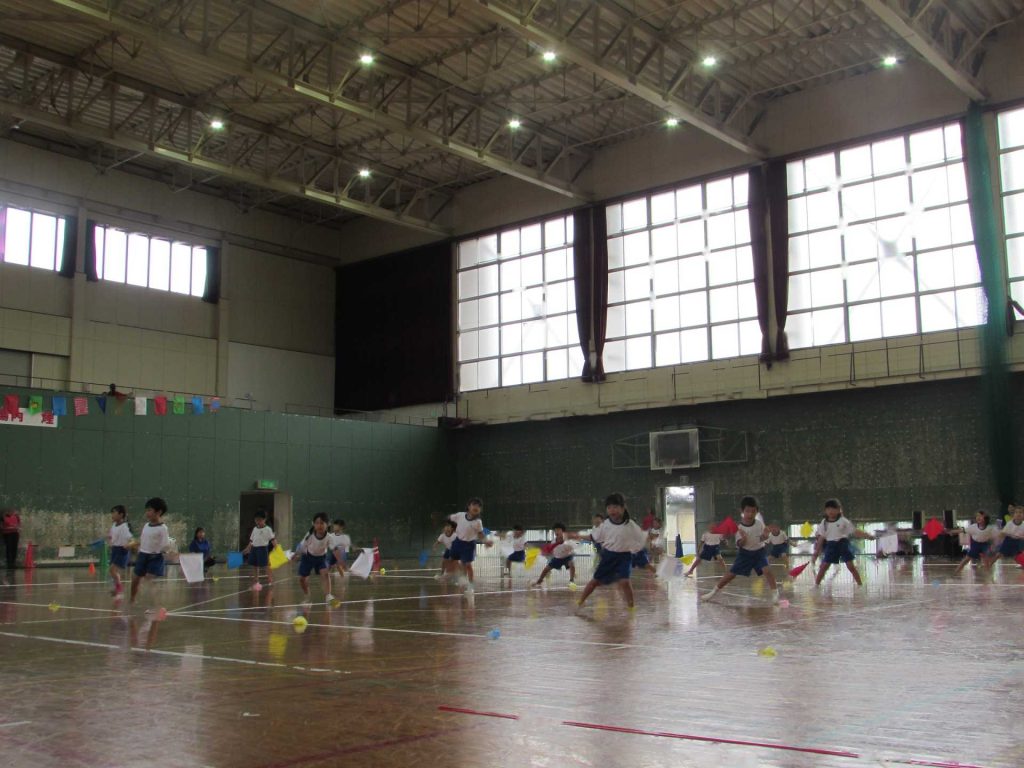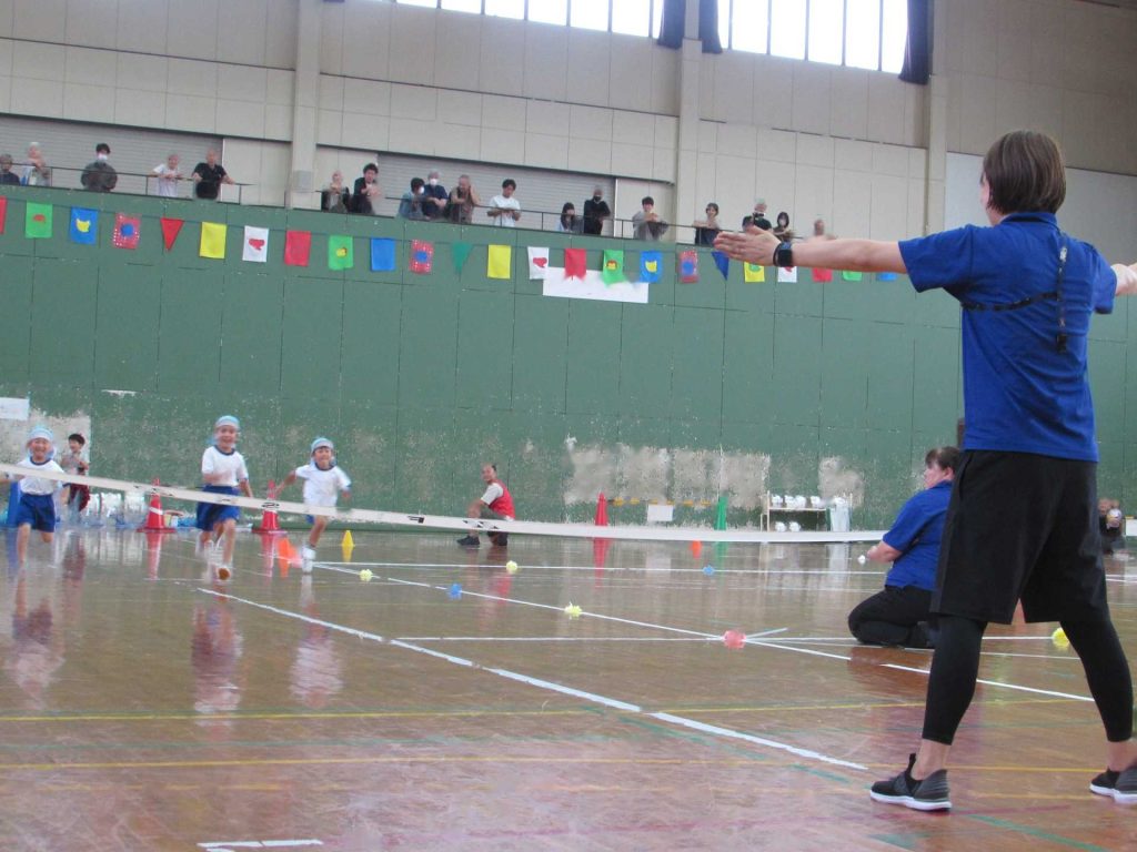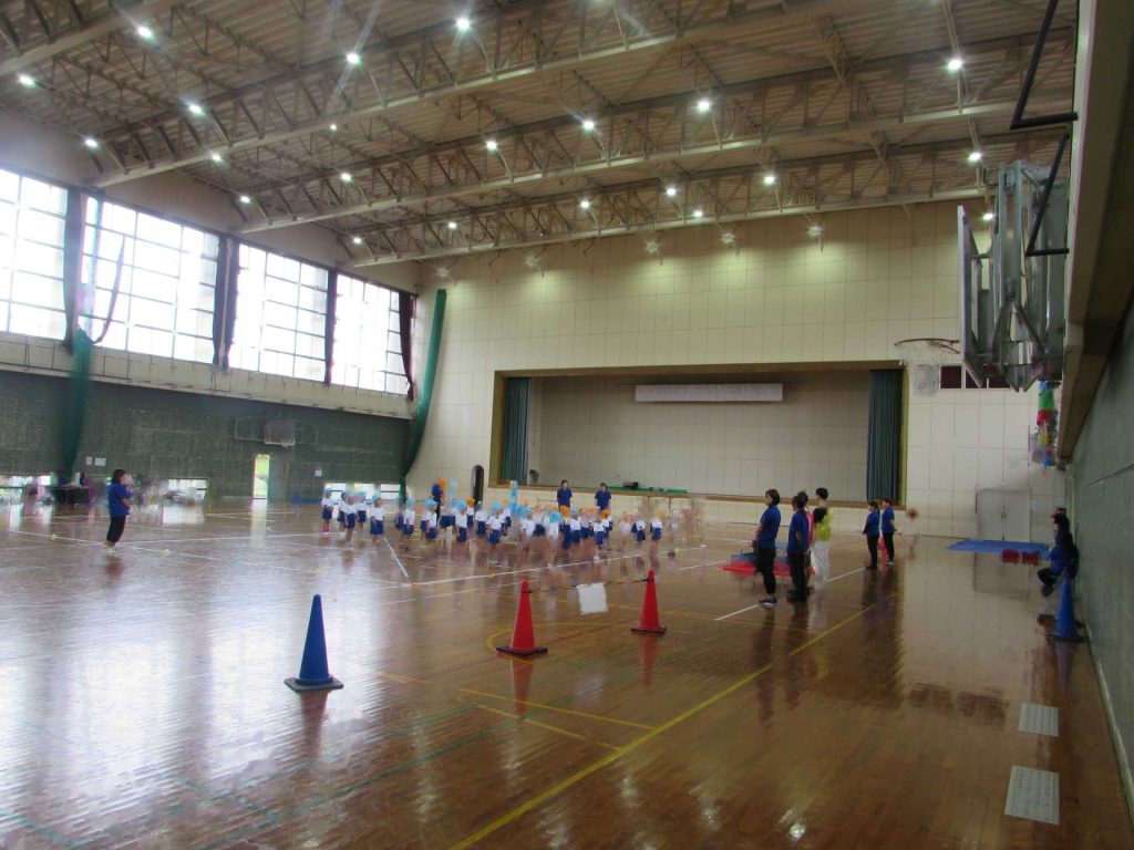10月4日 今年度は、体育館で秋季大運動会を開催しました。どの競技・演技でも、子ども達が力を出し切って楽しみながら取り組むことができました。