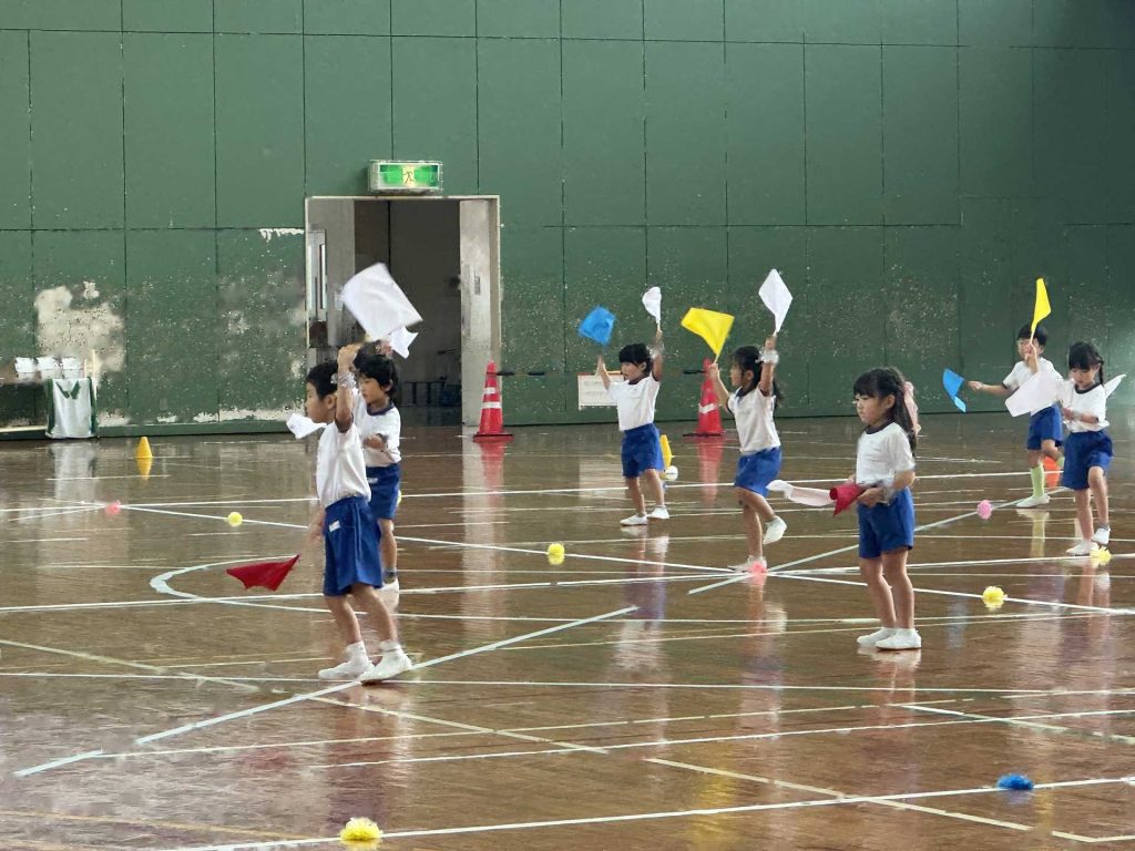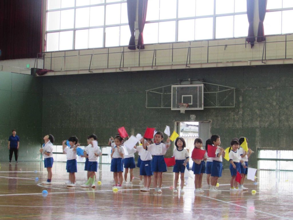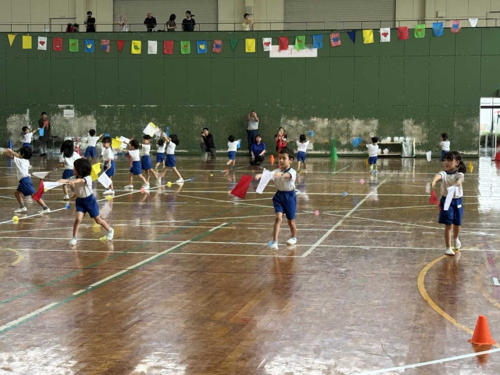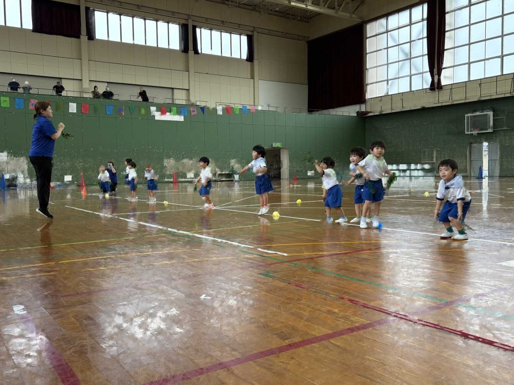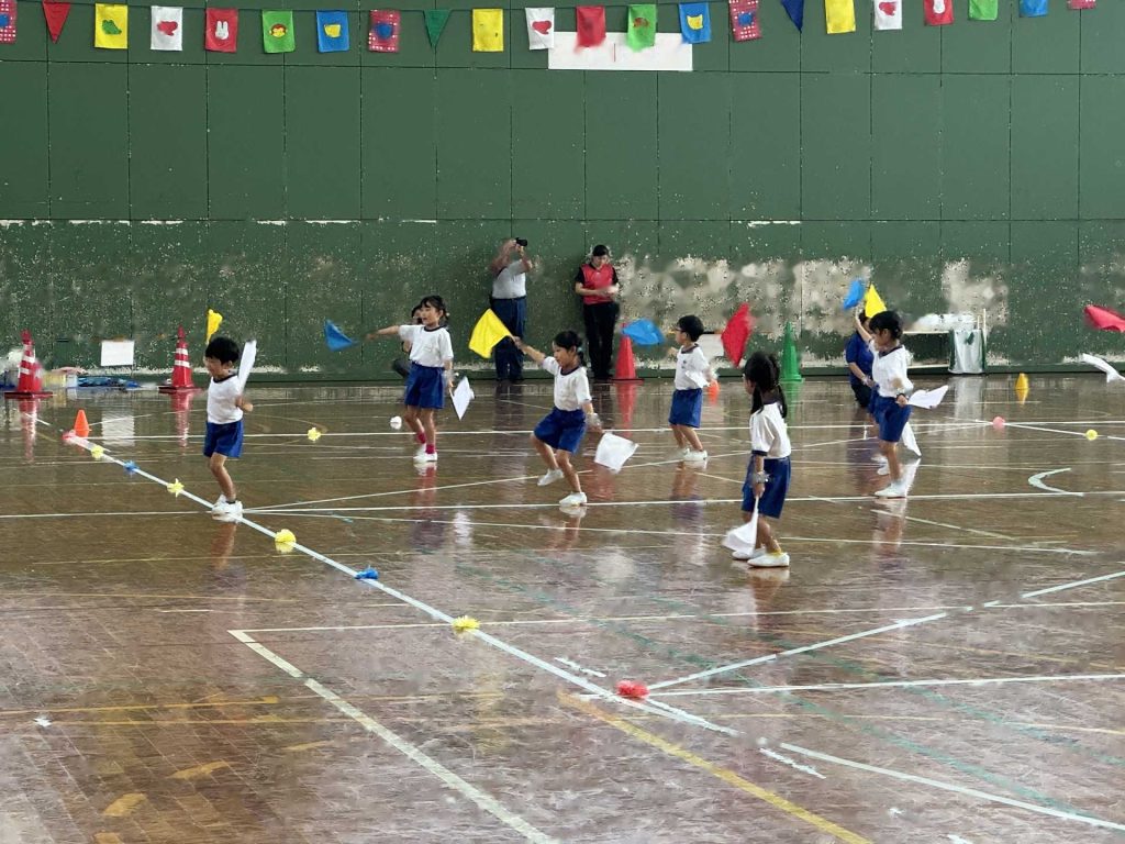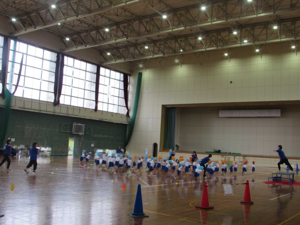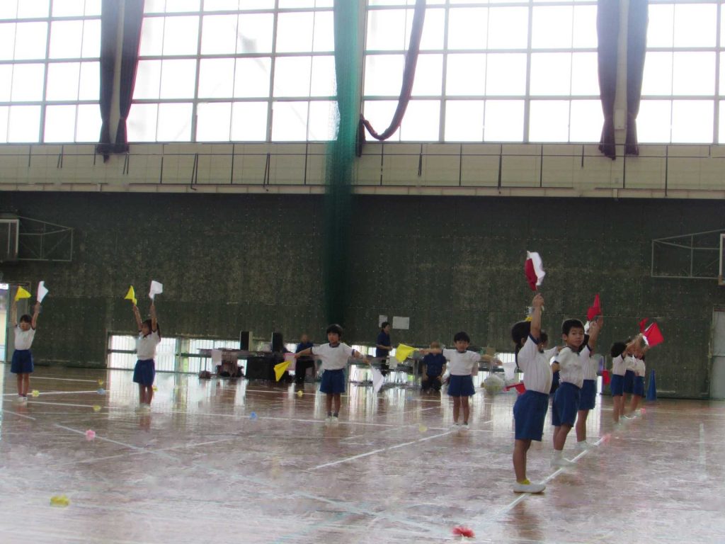 10月4日 今年度は、体育館で秋季大運動会を開催しました。どの競技・演技でも、子ども達が力を出し切って楽しみながら取り組むことができました。